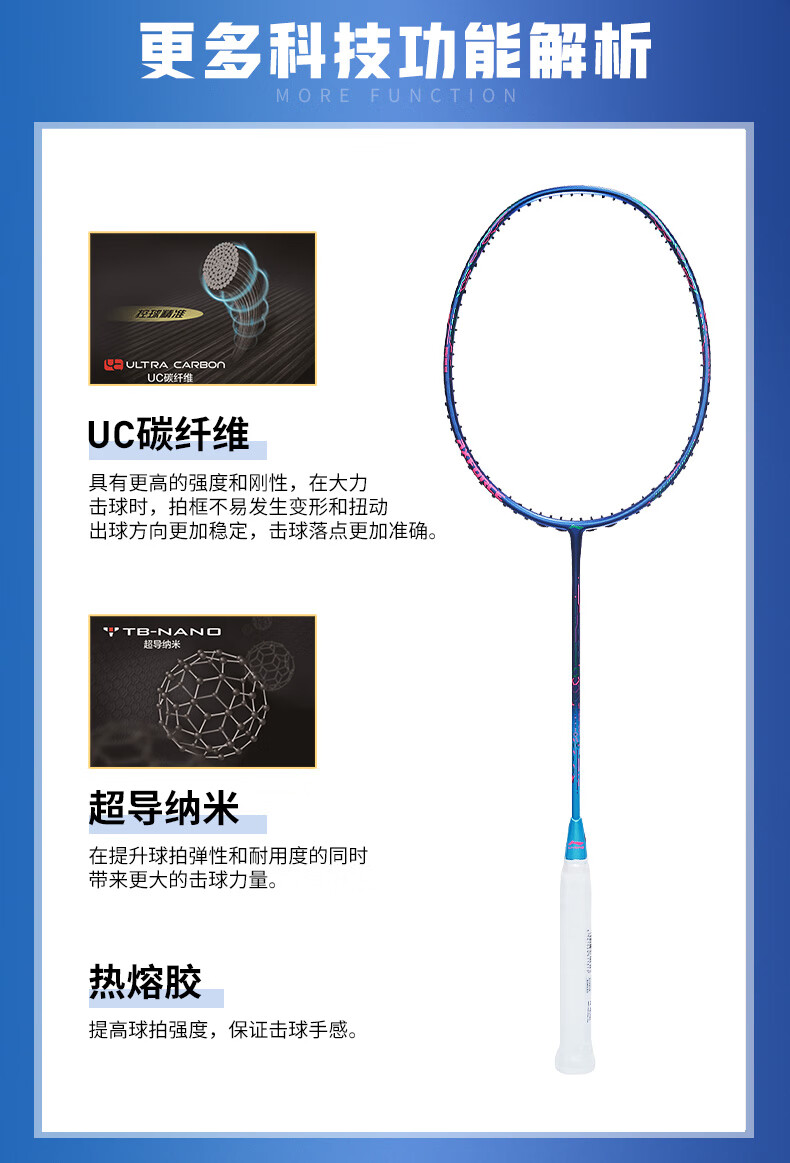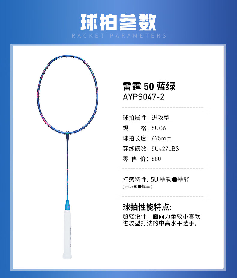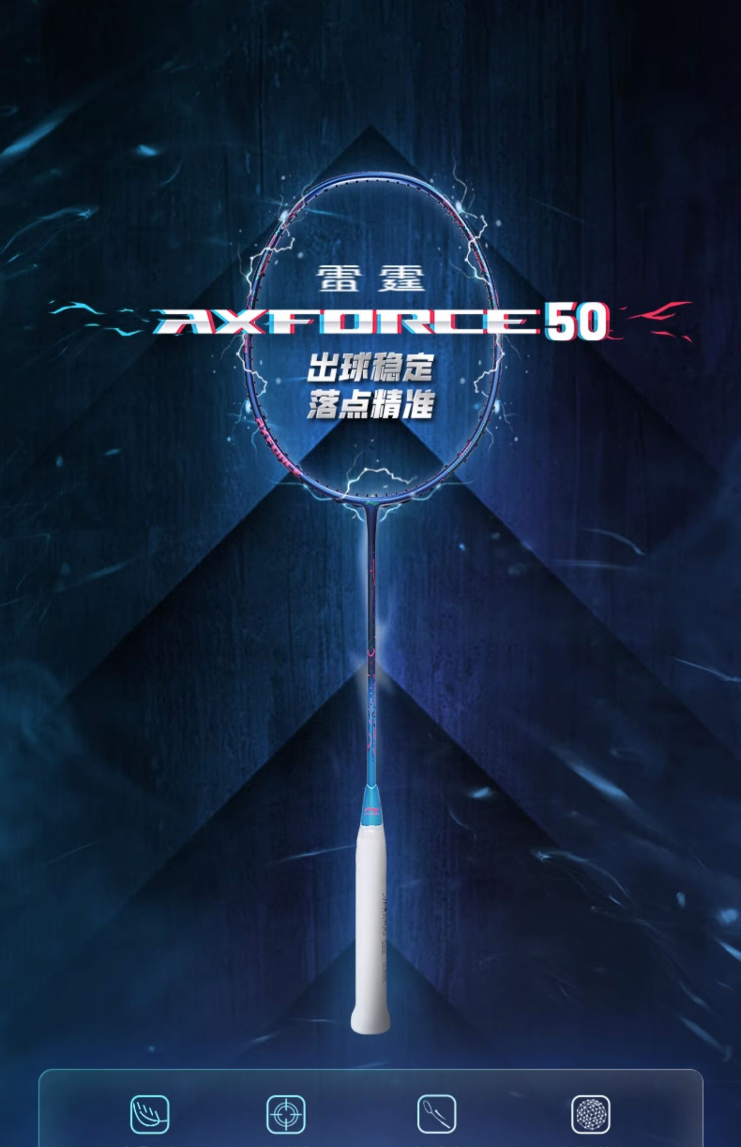 李宁羽毛球拍 雷霆50 进攻型AXFORCE全碳素单拍4U专业级比赛 雷霆50(4UG5)暗紫蓝/蓝绿 李宁羽线任选 27磅