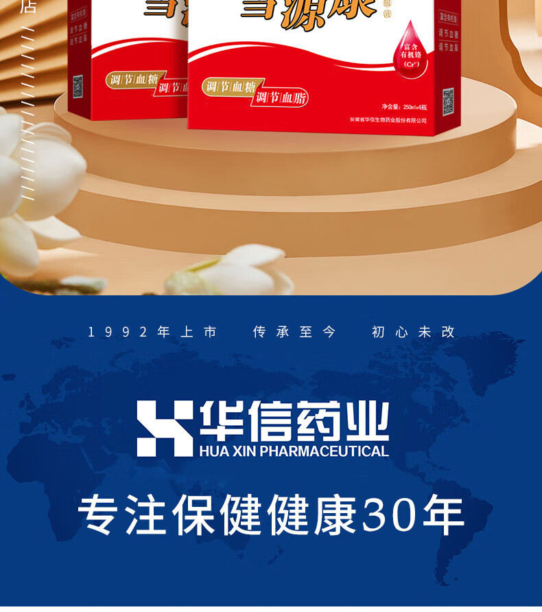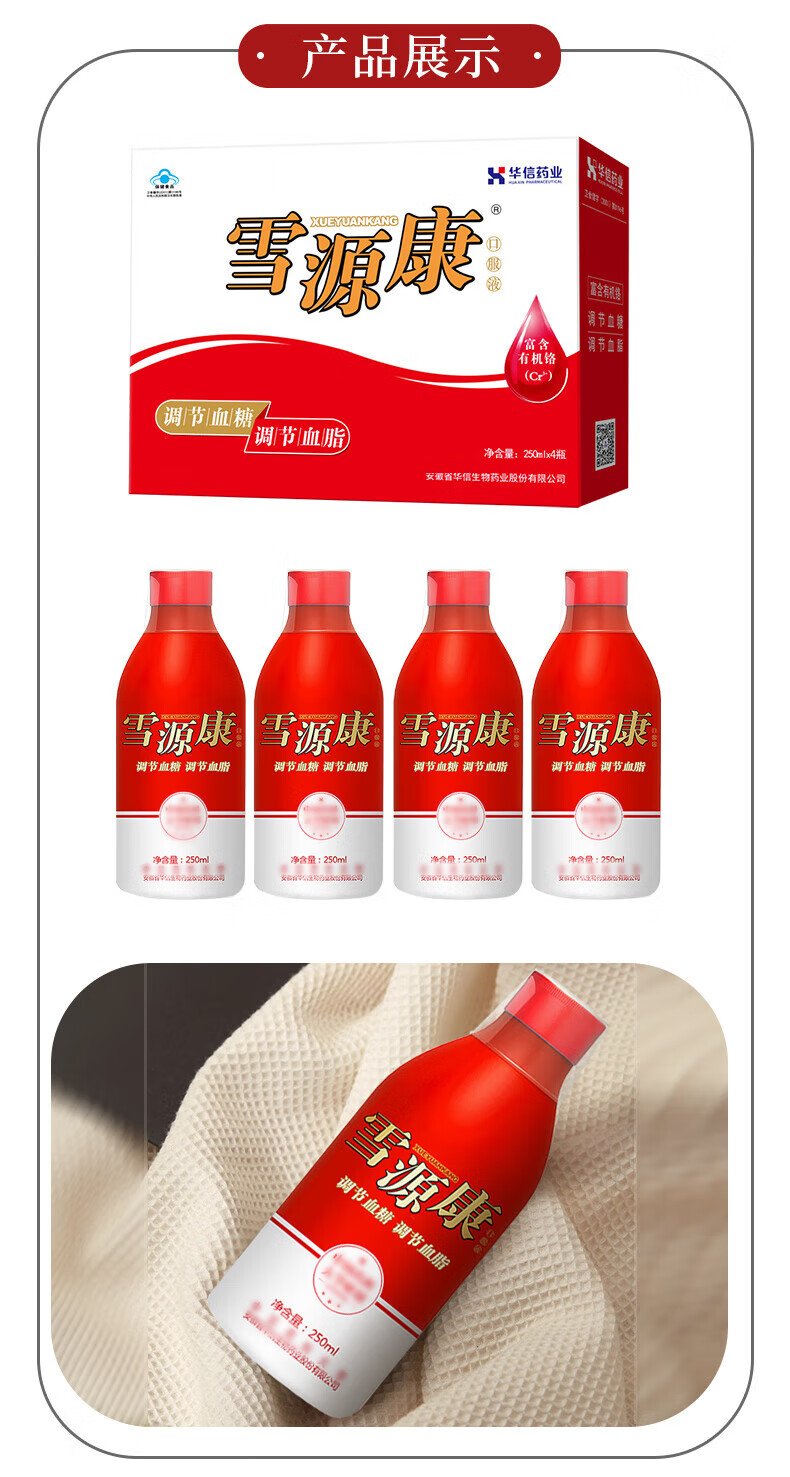 华信雪源康口服液250ml*4瓶礼盒过年送礼送长辈【调节辅助血糖血脂】