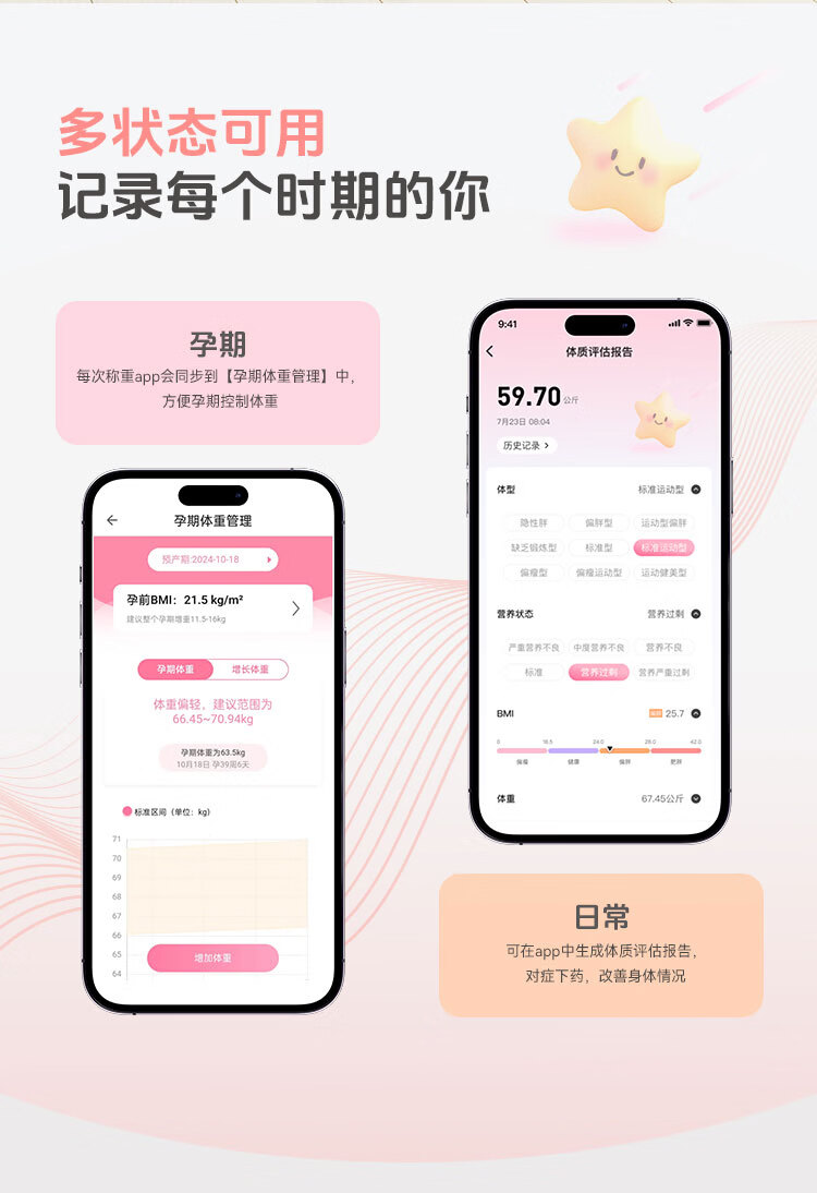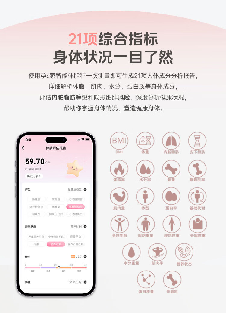 孕E家智能体脂秤家用新款高精准体重秤体重管理孕期称重电子秤 智能体脂秤【赠送健康管理服务周套餐】