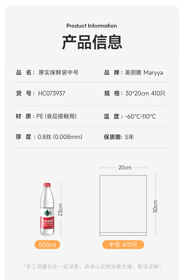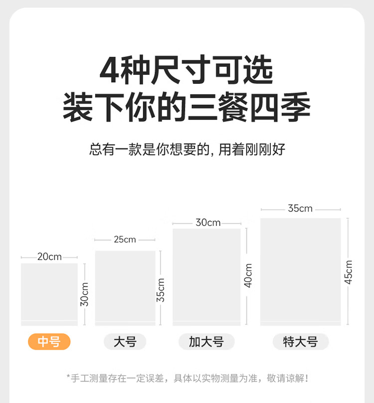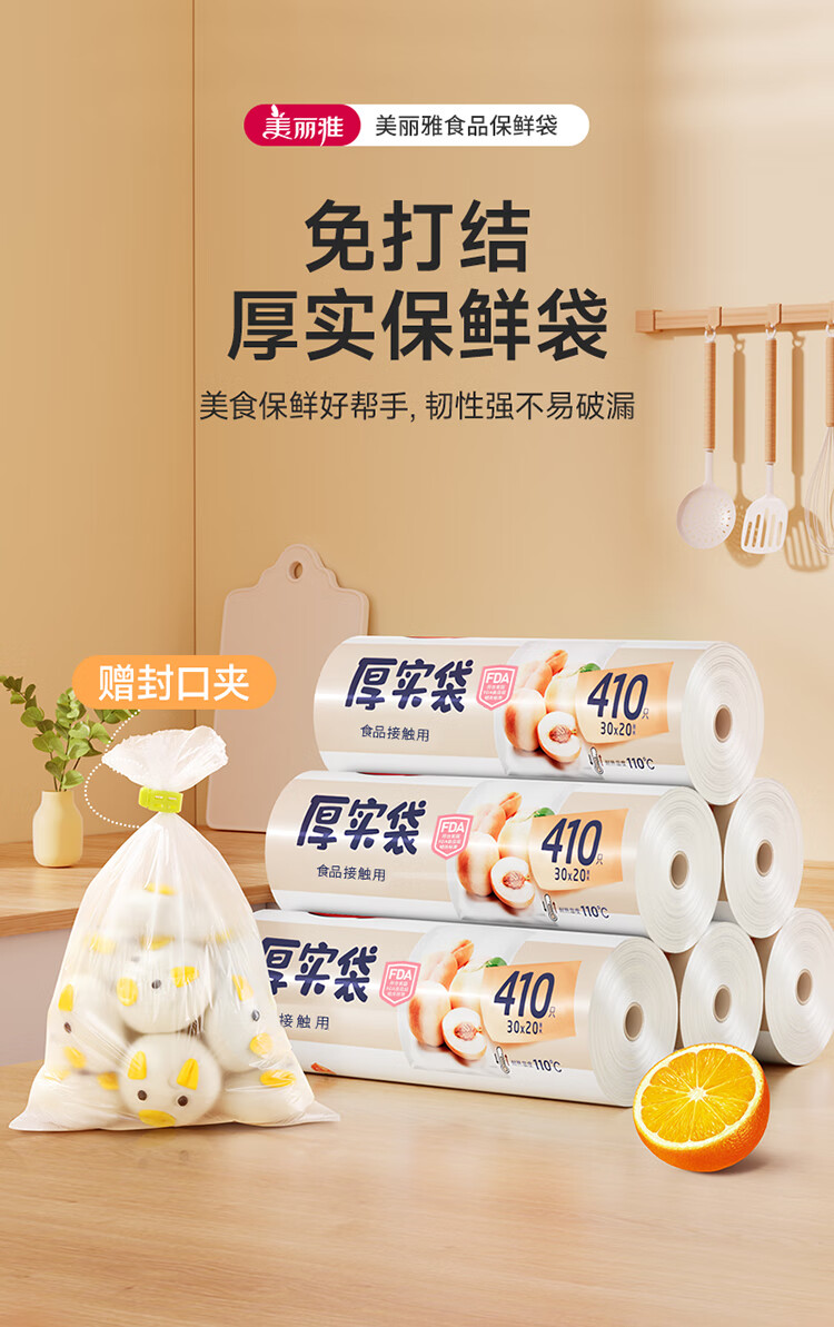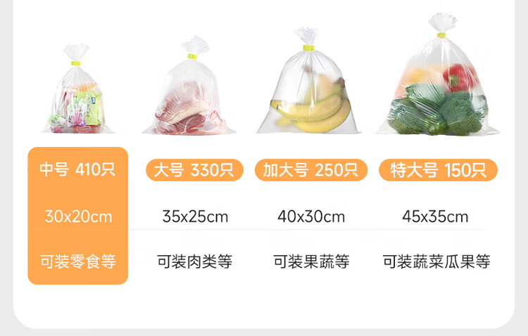 美丽雅 食品级保鲜袋中号 点断式塑料家用加厚袋子 410只30*20cm
