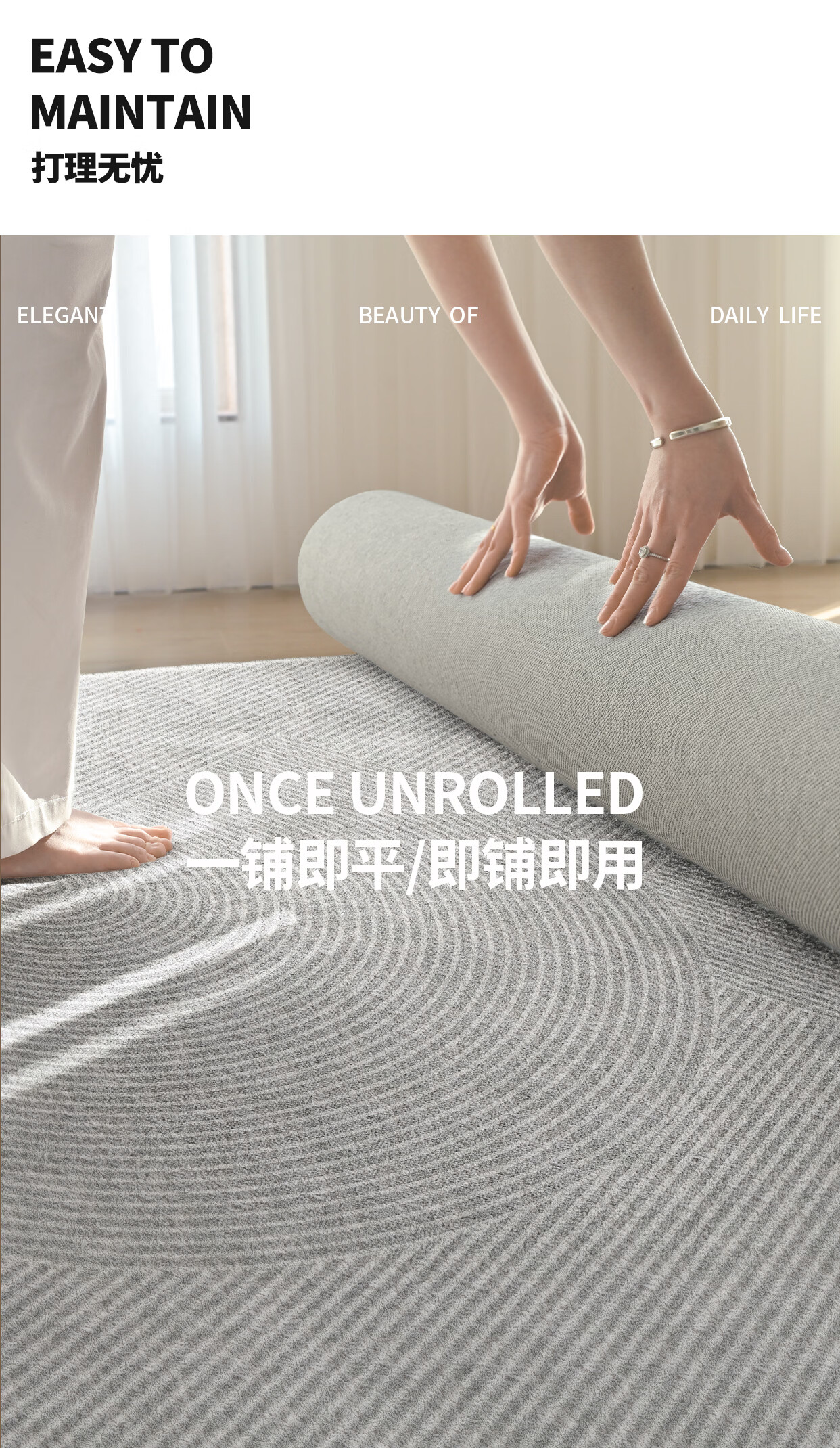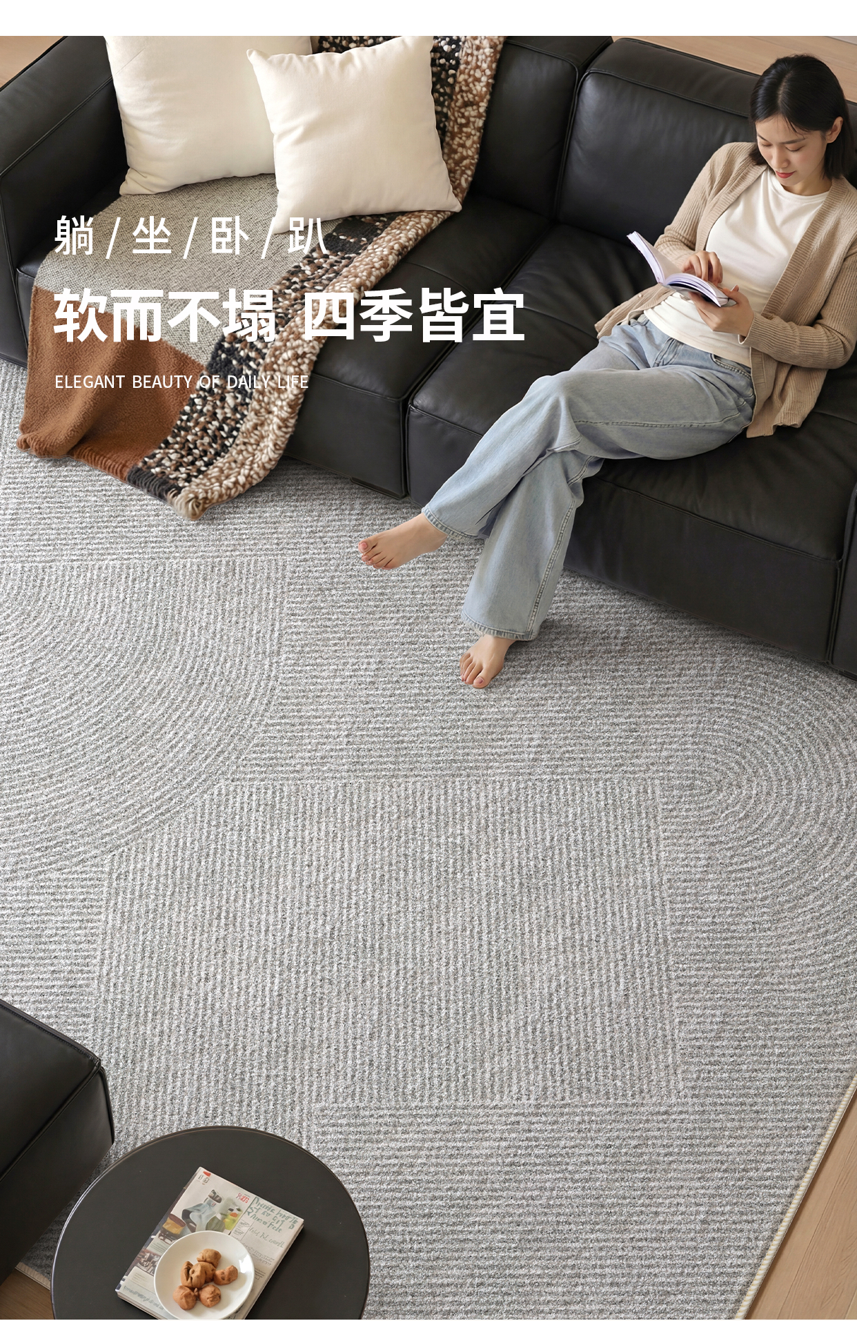 Y U-LIVE地毯客厅意式极简轻奢高级感现代简约2026新款免洗可擦防水地 S仿羊绒-素川 140×200CM【所有尺寸:精致双线包边】