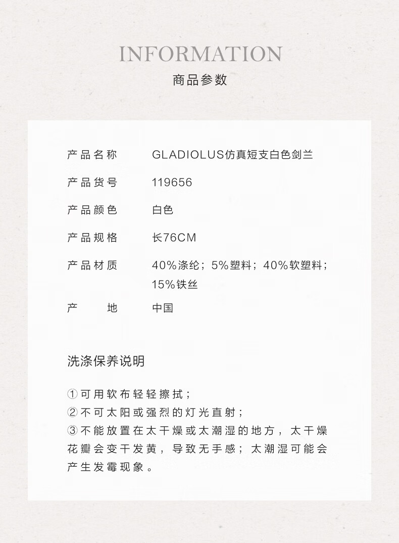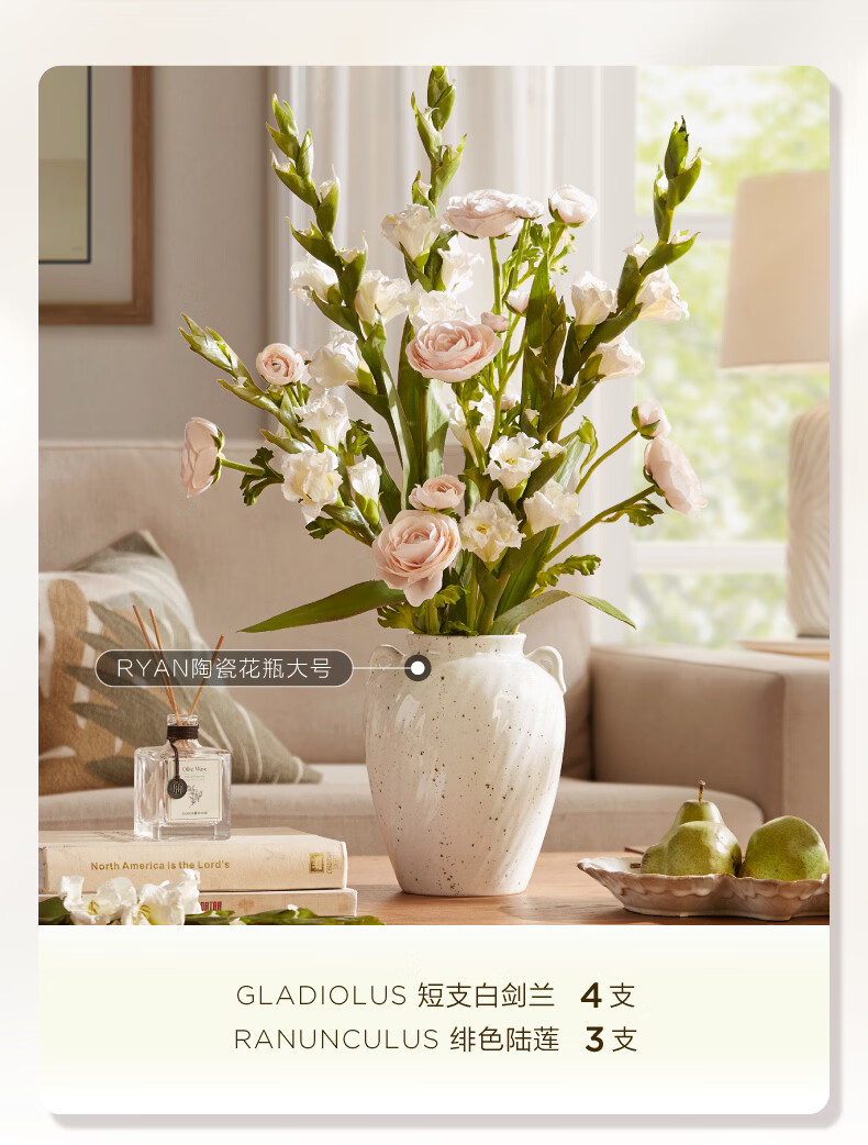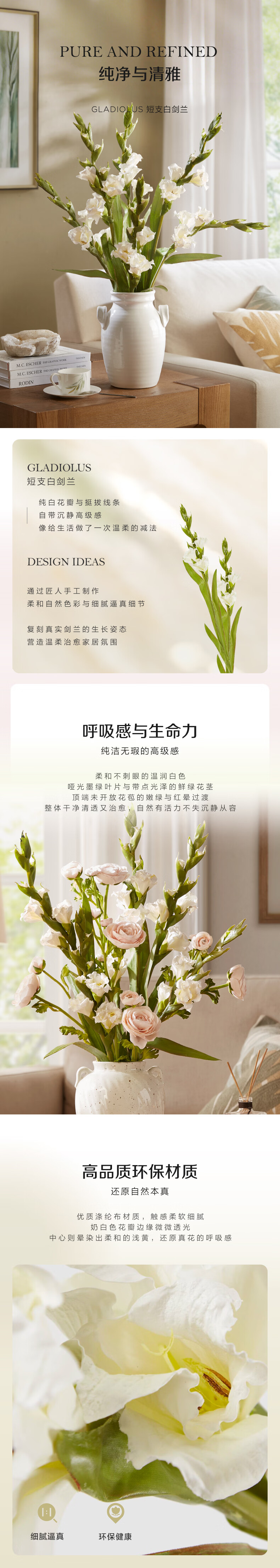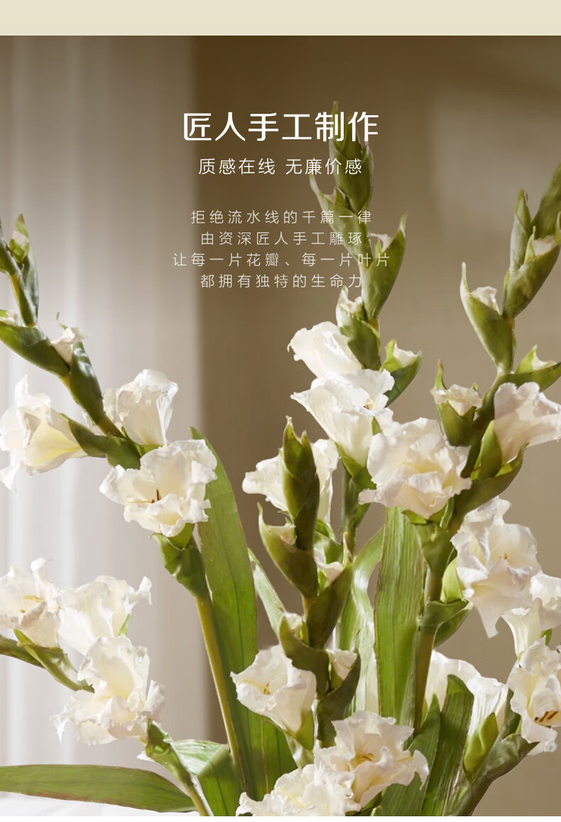 Harbor House美式白色剑兰仿真花客厅家居装饰假花轻奢高端仿真花束摆件单支装 Gladiolus仿真短支白色剑兰 1支