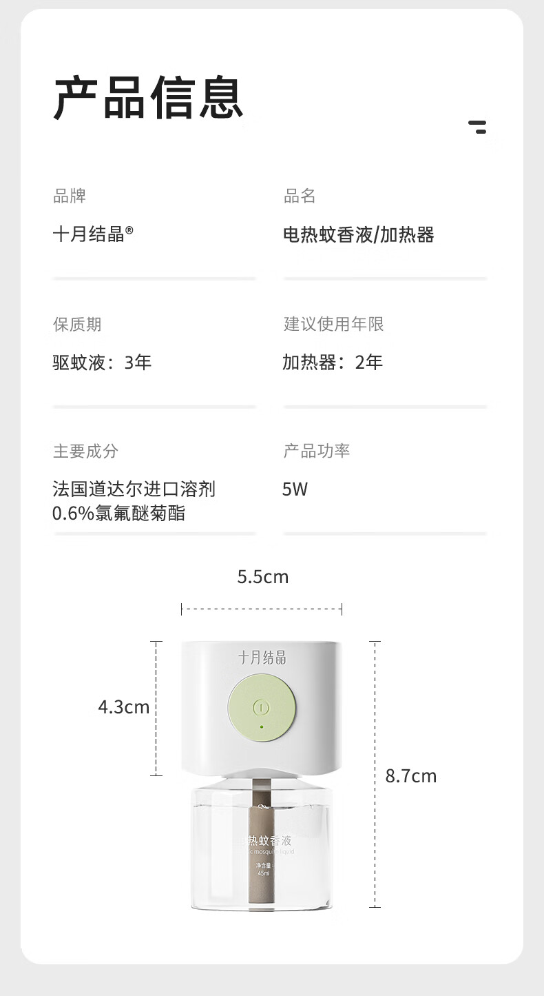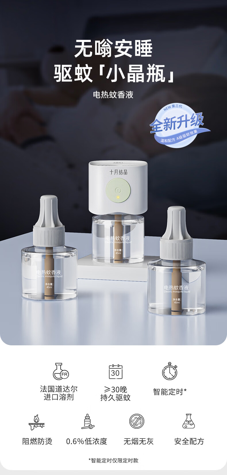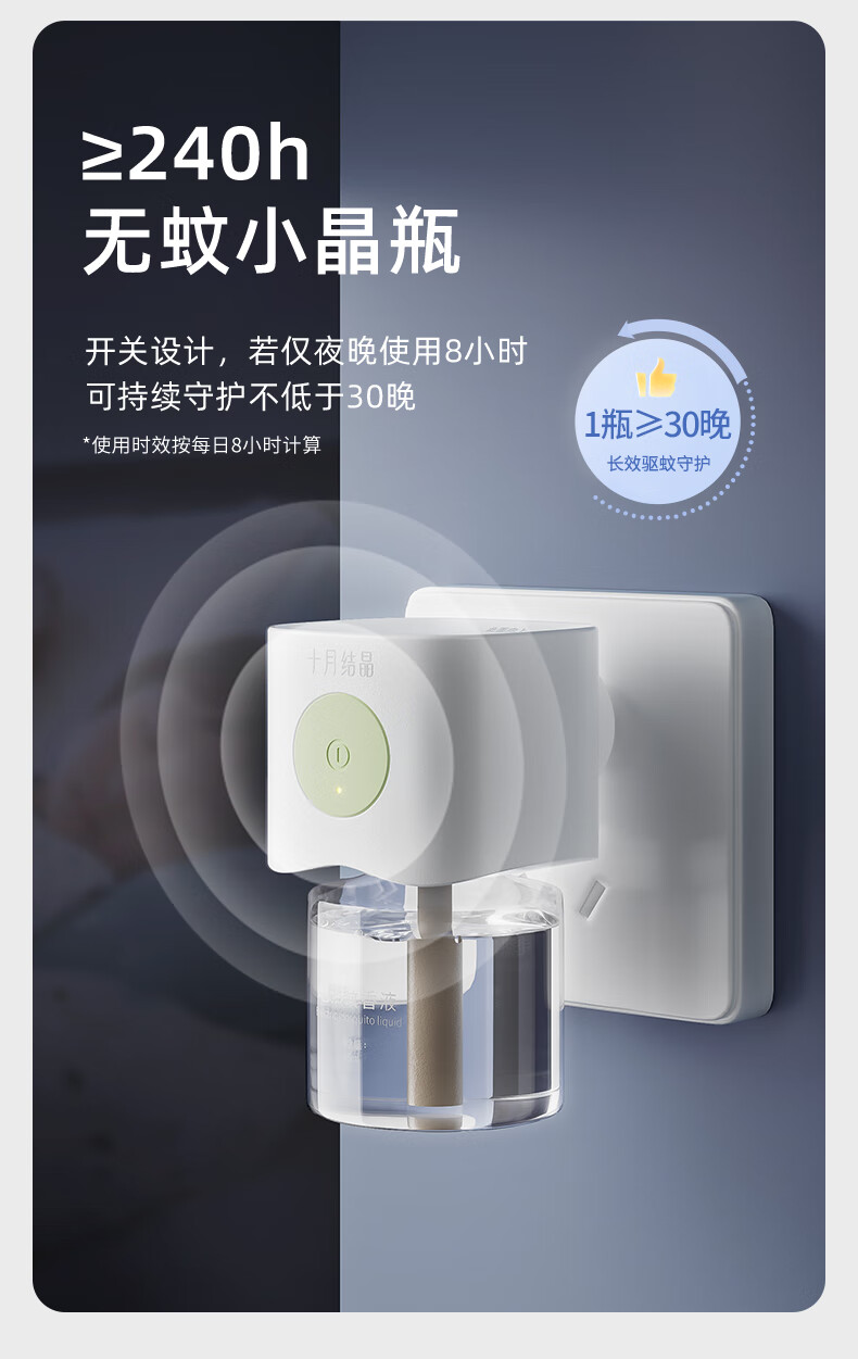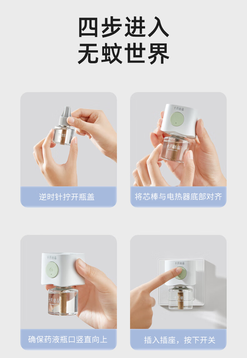 十月结晶蚊香液电蚊香宝宝儿童防蚊驱蚊 家庭适用驱蚊液无香5液+1器