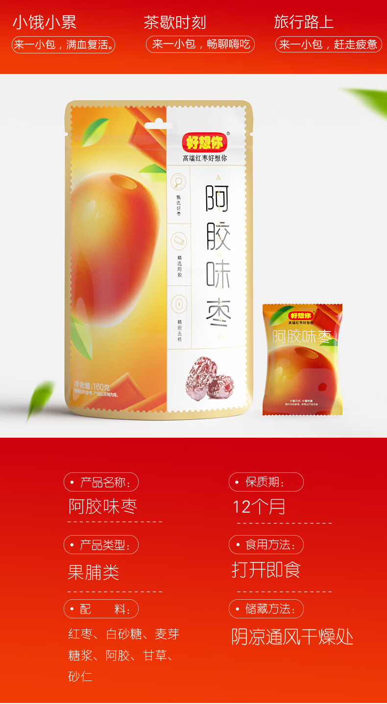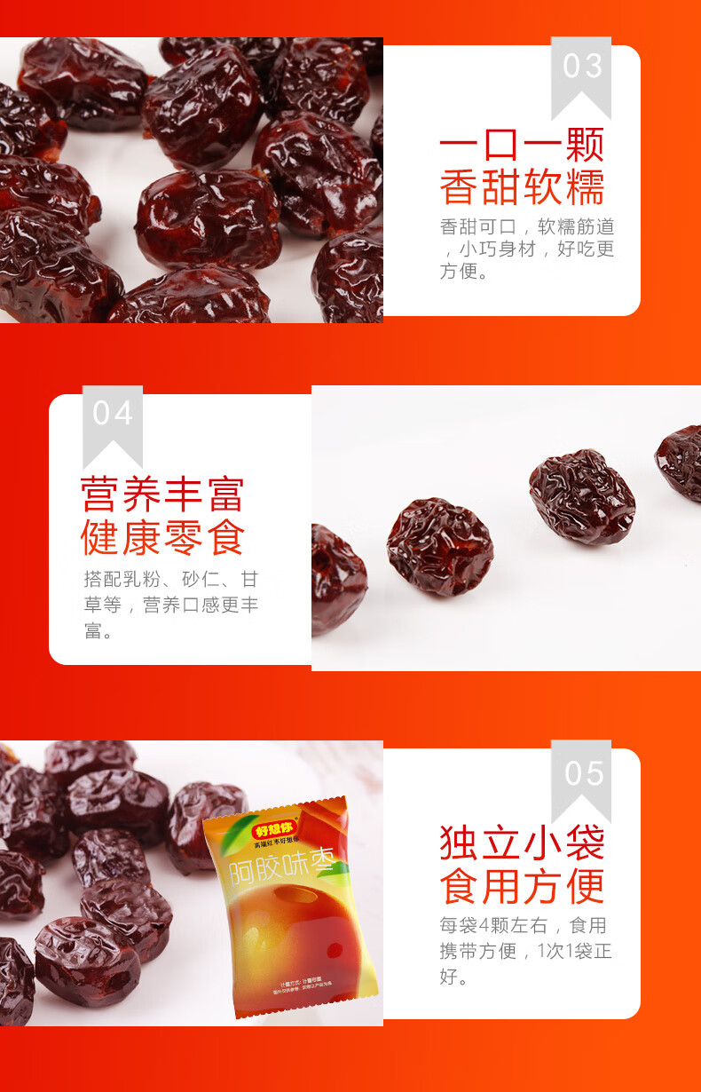 好想你_阿胶蜜枣 无核枣金丝蜜枣去核枣蜜饯果脯办公室休闲零食节日送礼 【3袋约51颗】阿胶蜜枣178g*3袋
