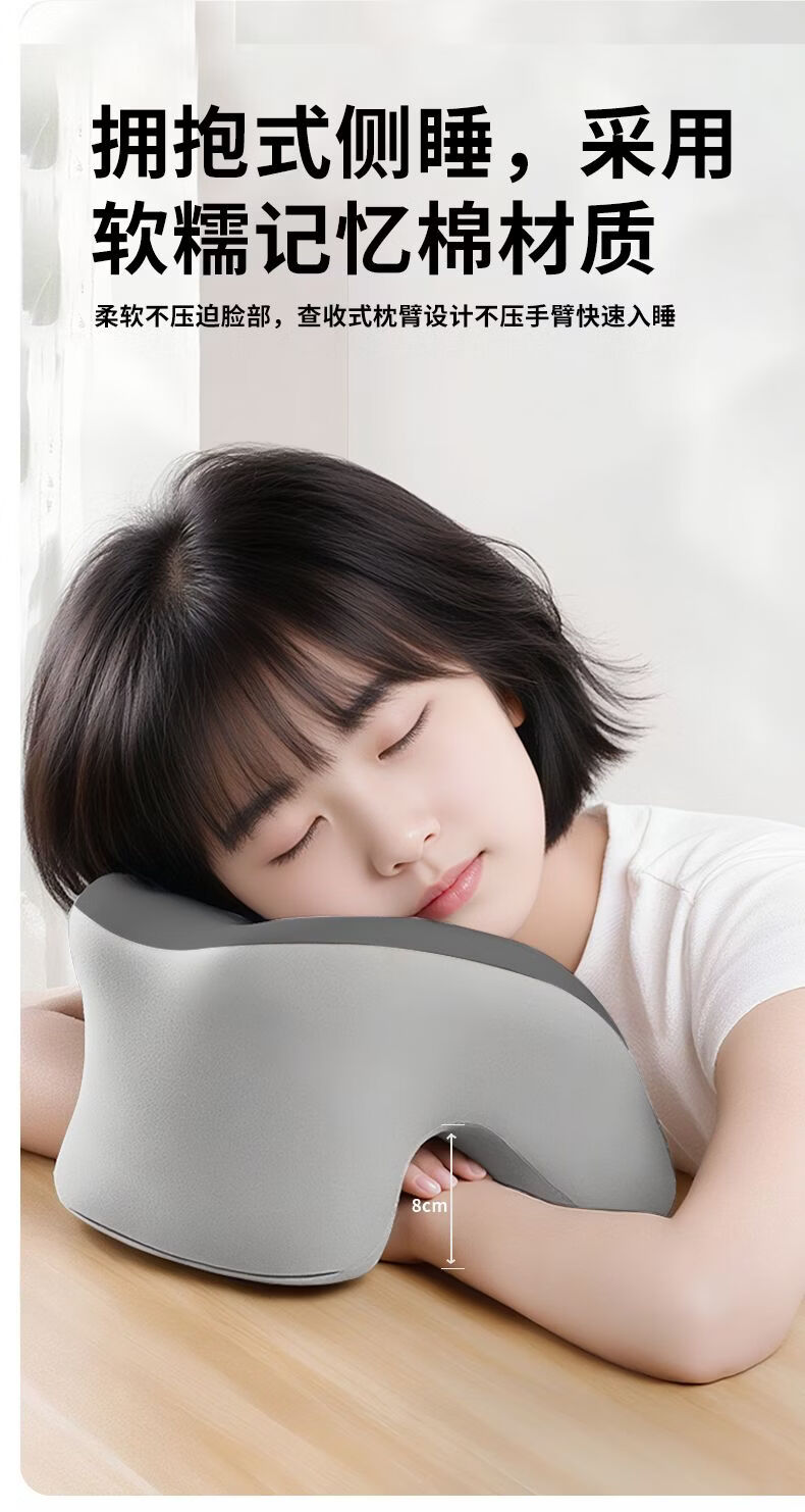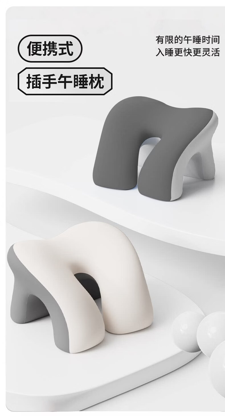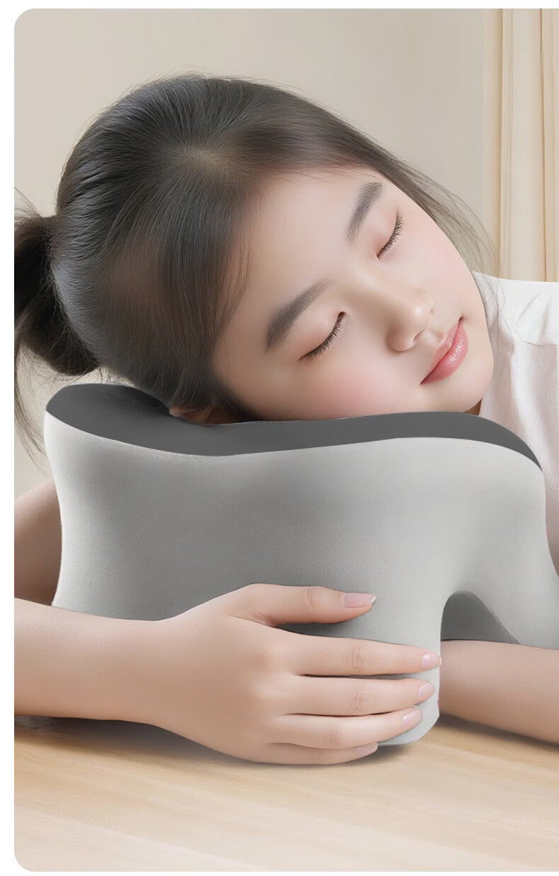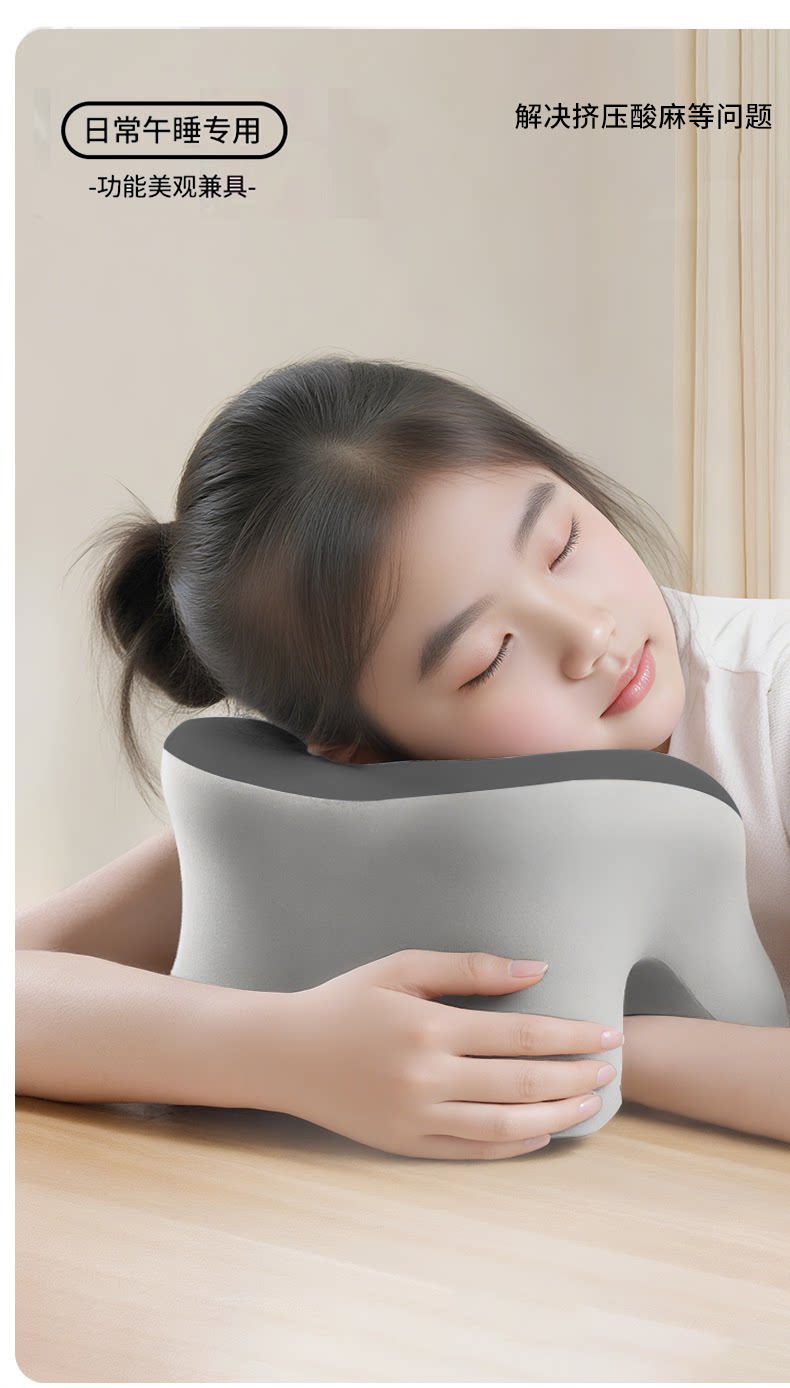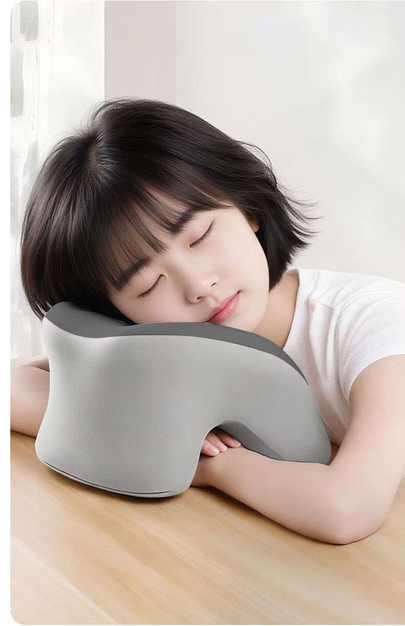 名创优品(MINISO)午睡枕头趴睡枕 午休枕办公室趴着睡觉抱枕学校便携小枕头 【双灰拼色】 1cm*1cm 含枕芯