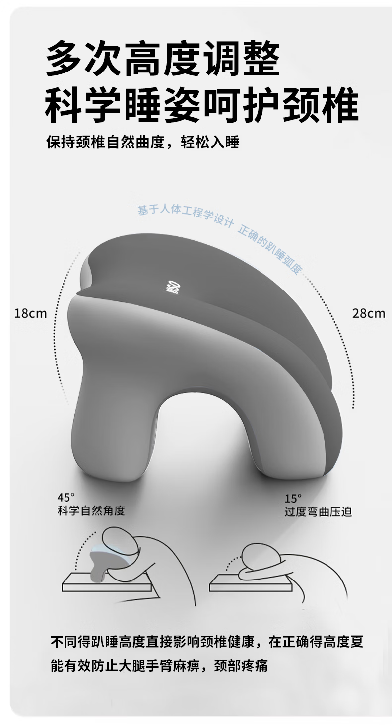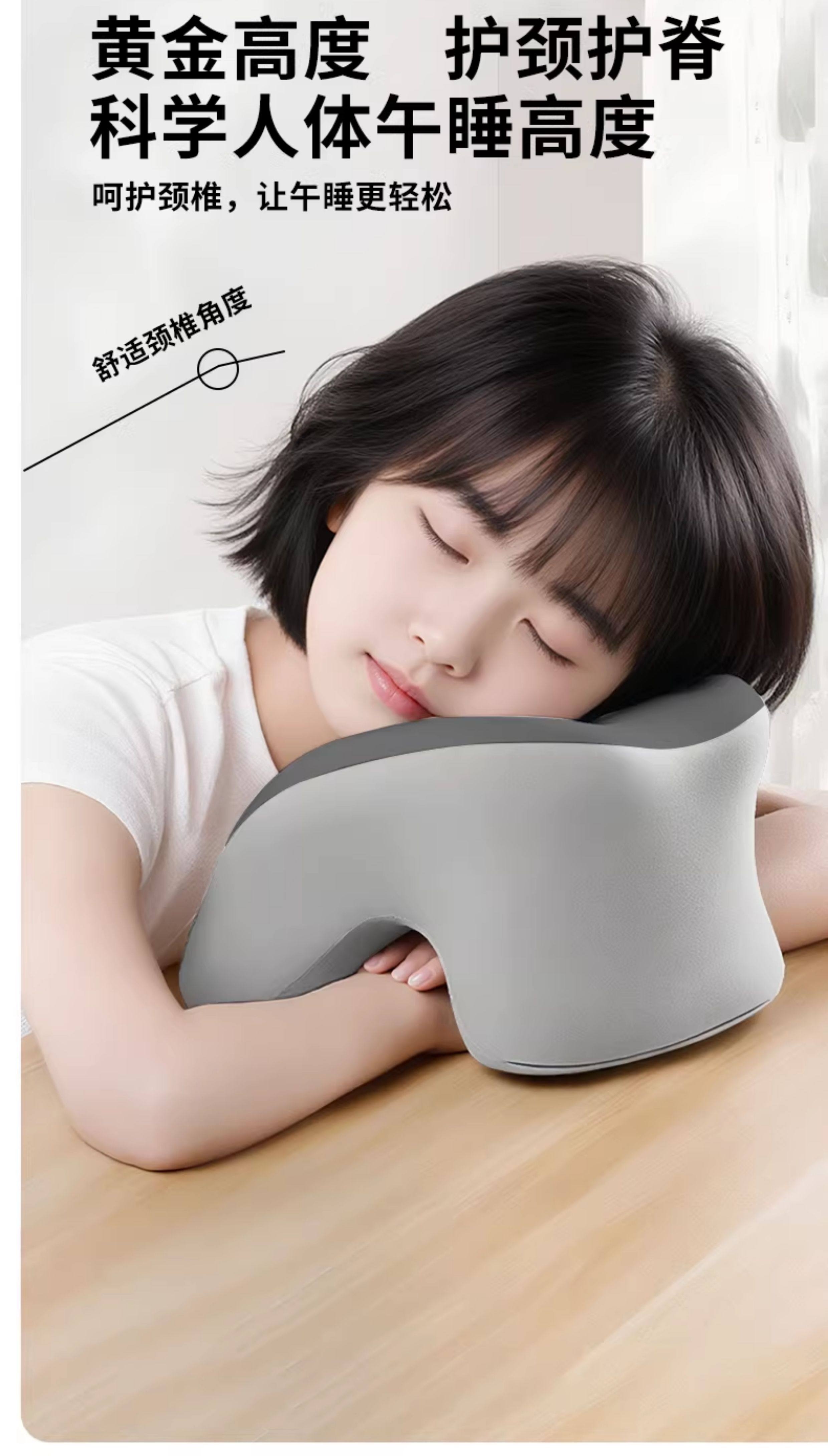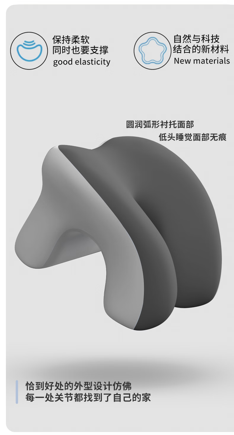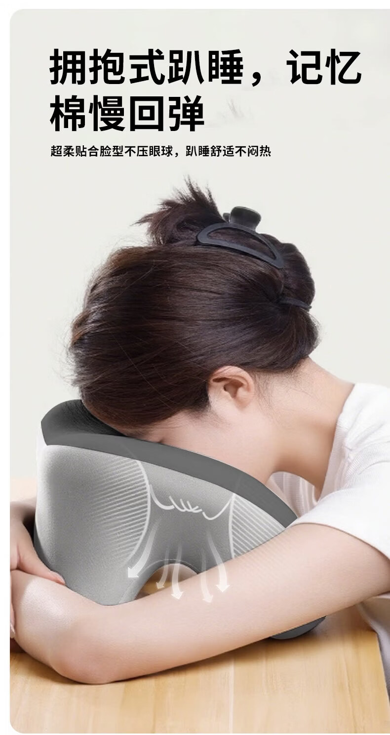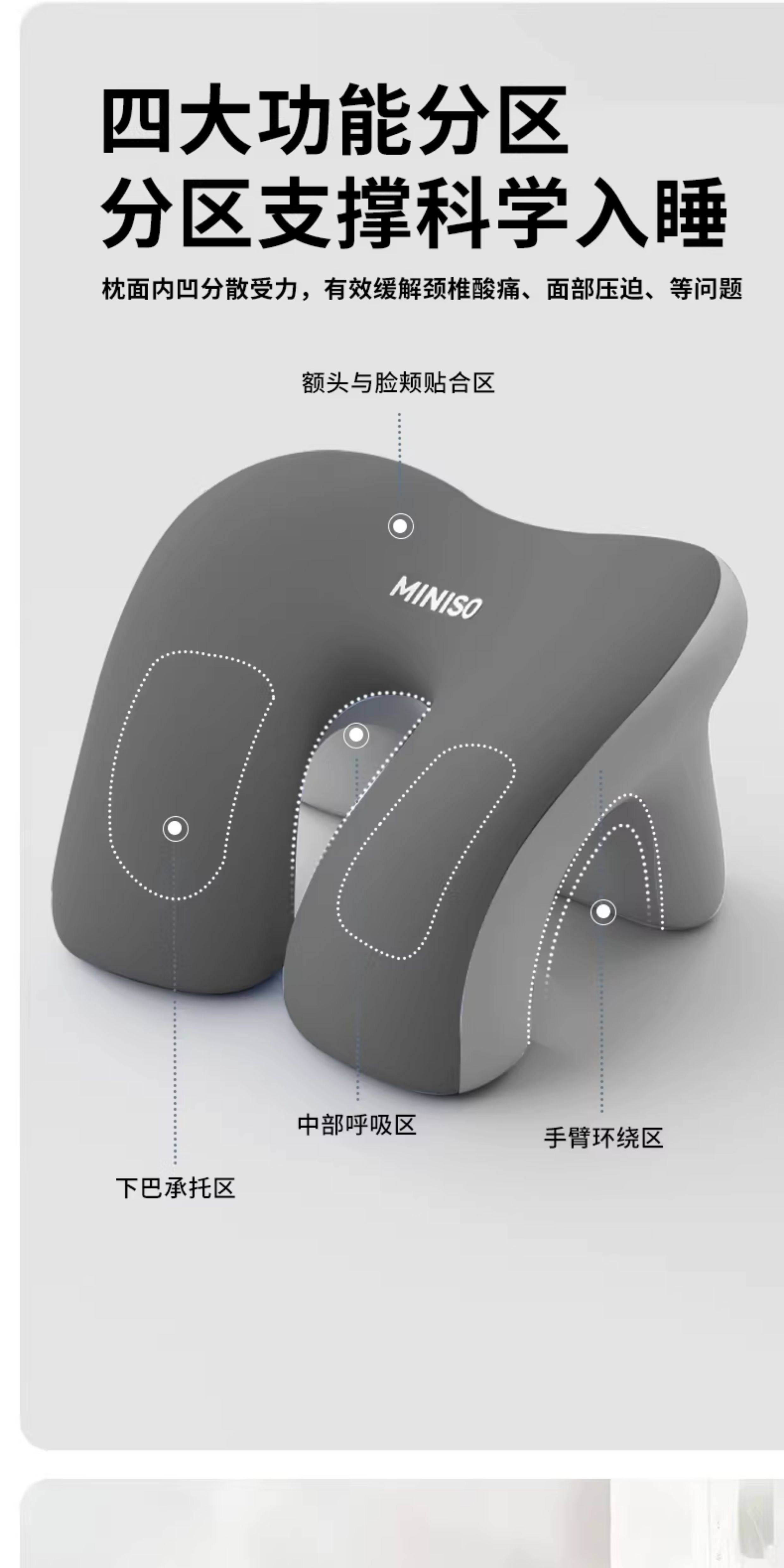 名创优品(MINISO)午睡枕头趴睡枕 午休枕办公室趴着睡觉抱枕学校便携小枕头 【双灰拼色】 1cm*1cm 含枕芯