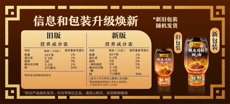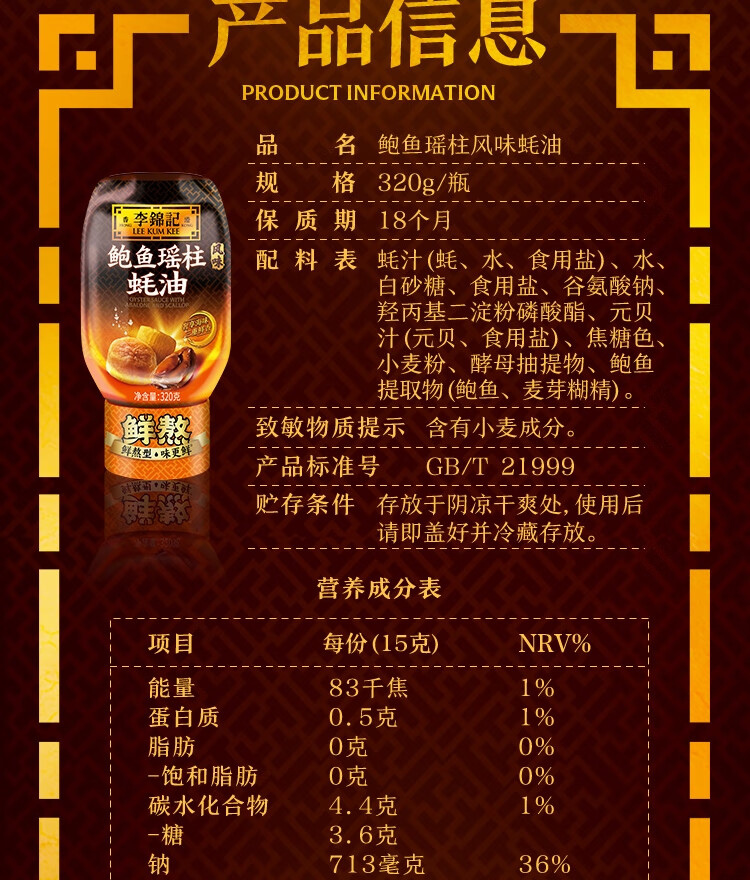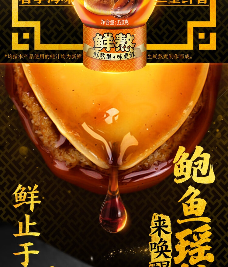 李锦记 鲍鱼瑶柱蚝油320g 奢享海味 三重鲜香 丰润醇厚 鲜熬型 蘸拌炖