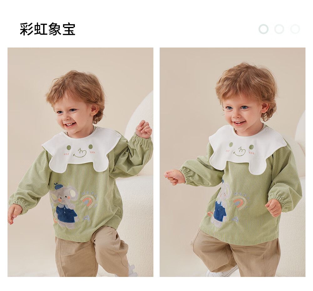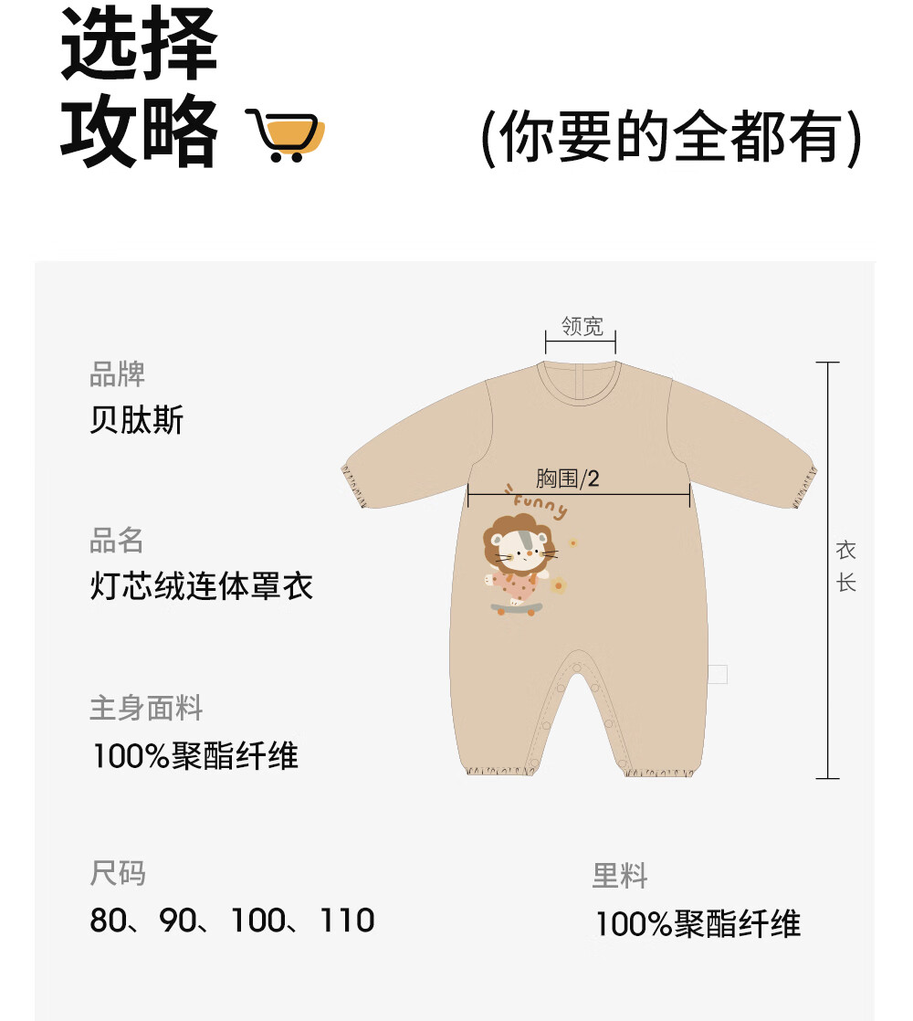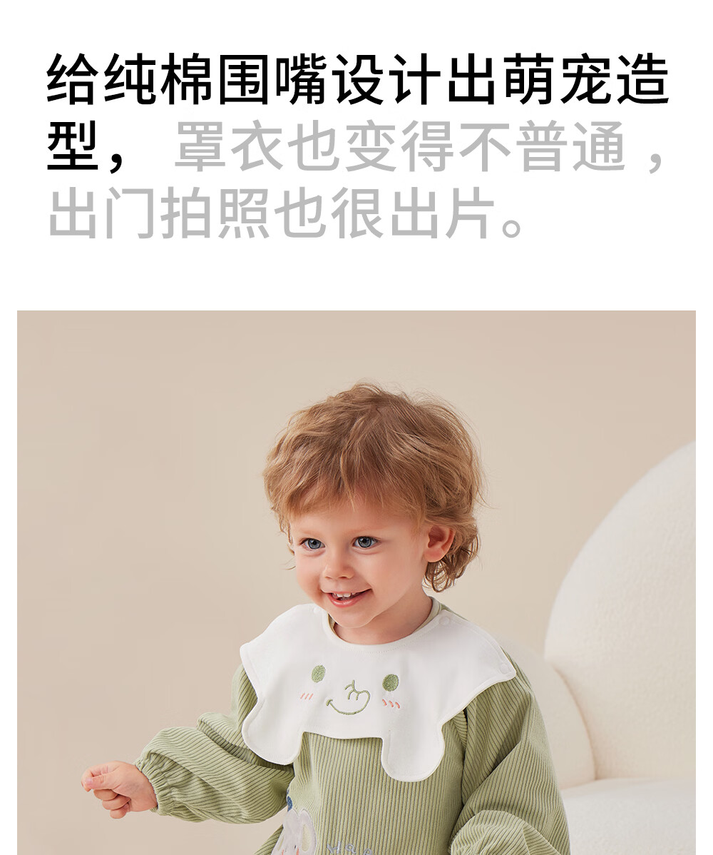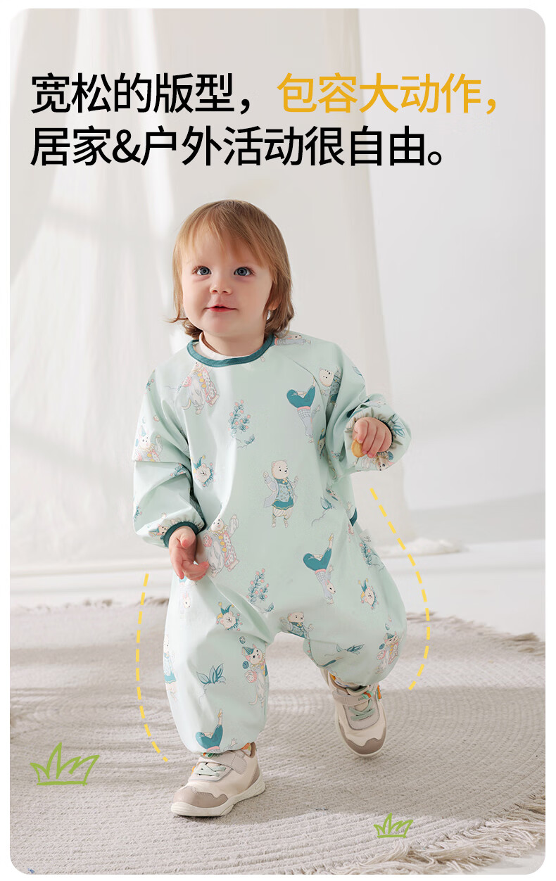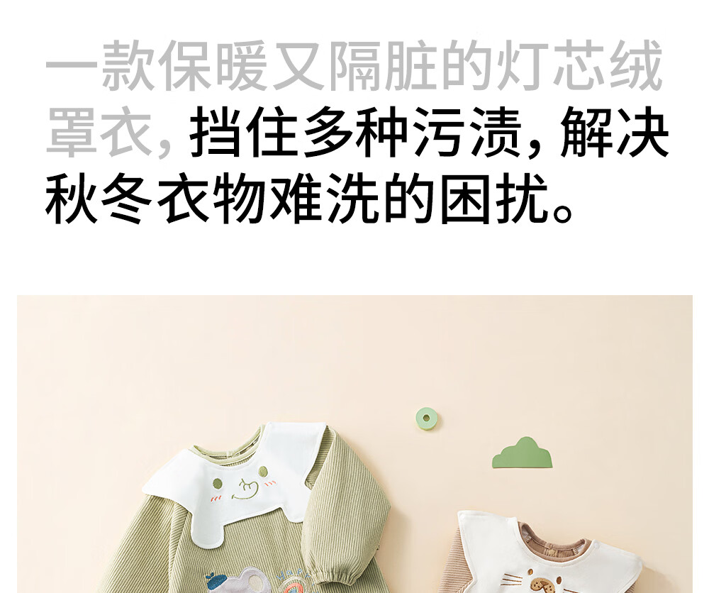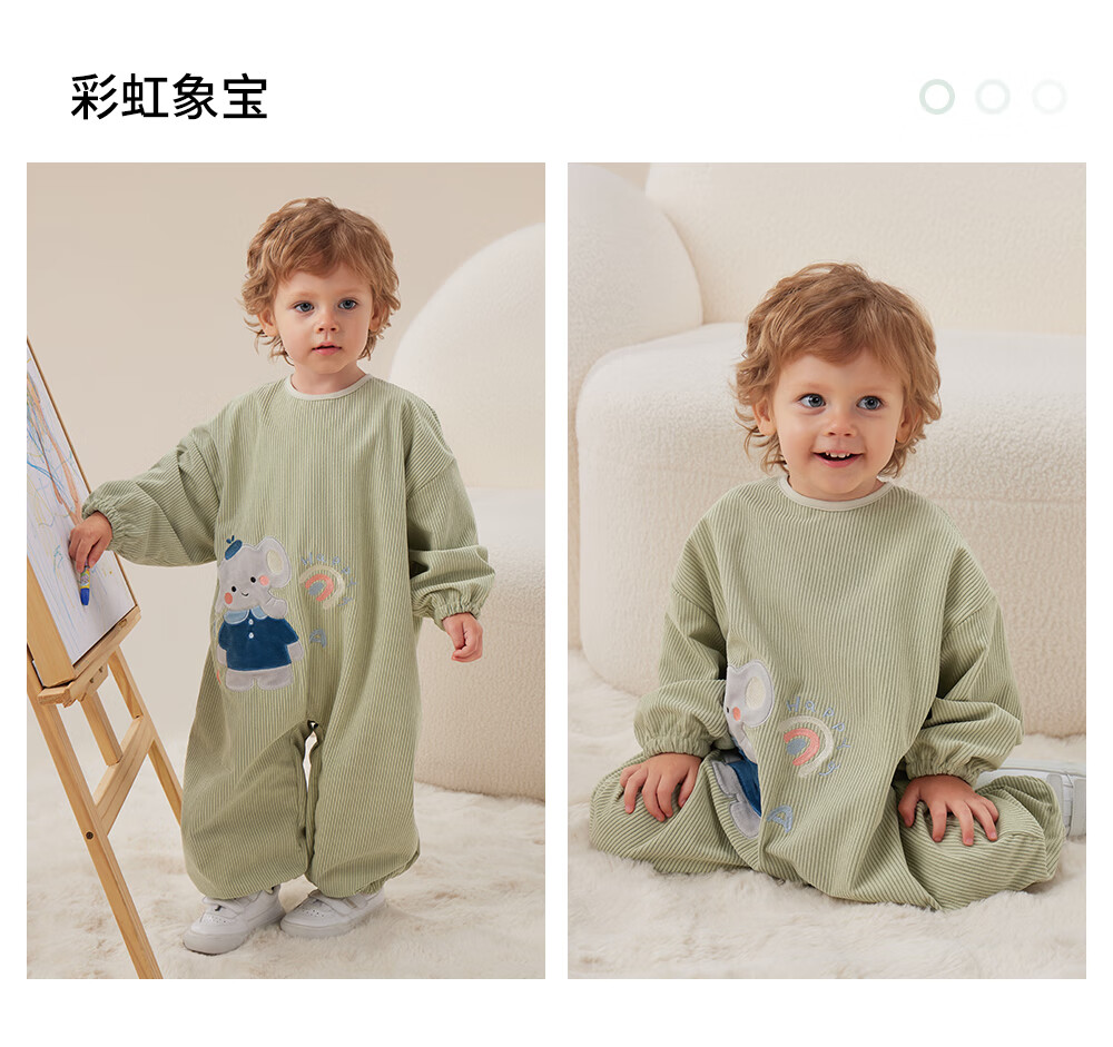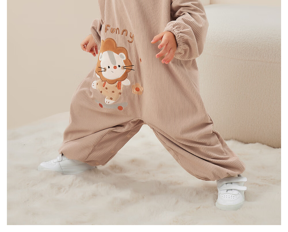 贝肽斯宝宝连体罩衣户外婴儿爬行防水脏爬爬服外穿儿童吃饭围兜辅食神器 滑滑乐狮【灯芯绒保暖御寒】 90码 1.5岁-2.5岁 适合85cm-93cm
