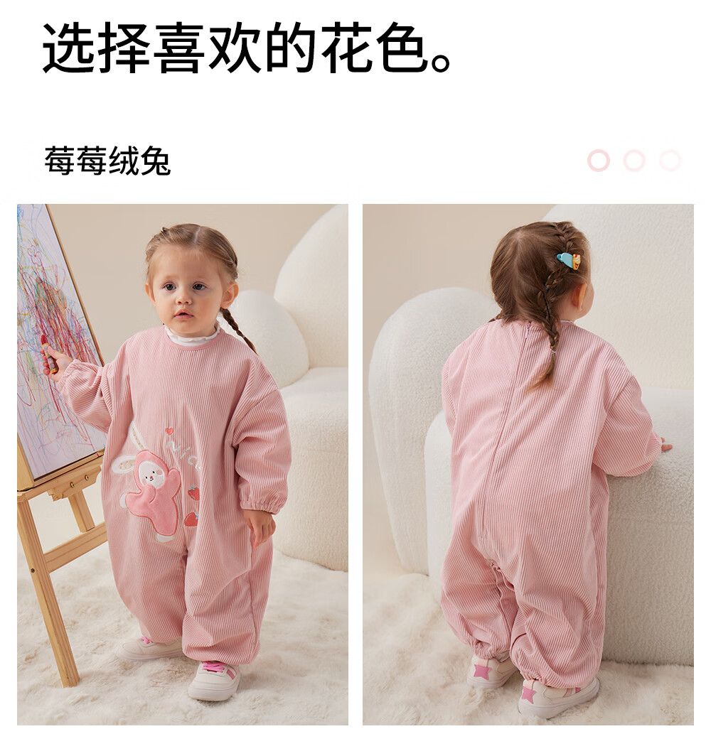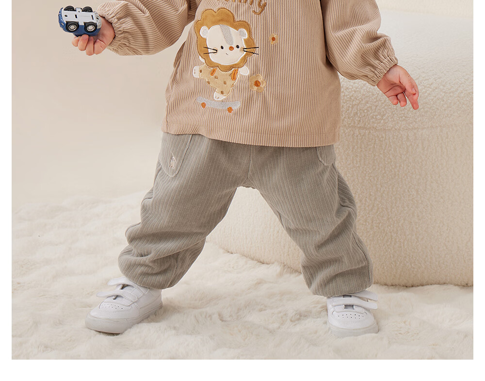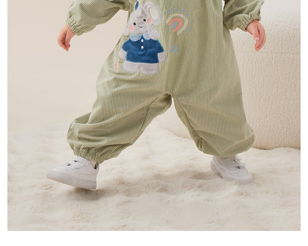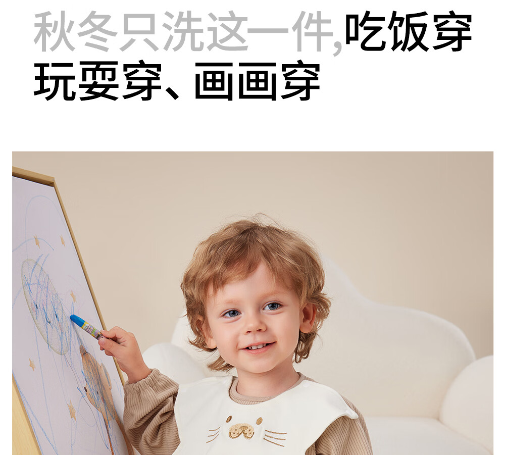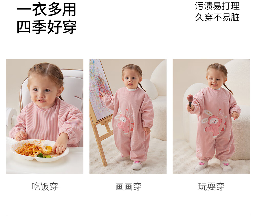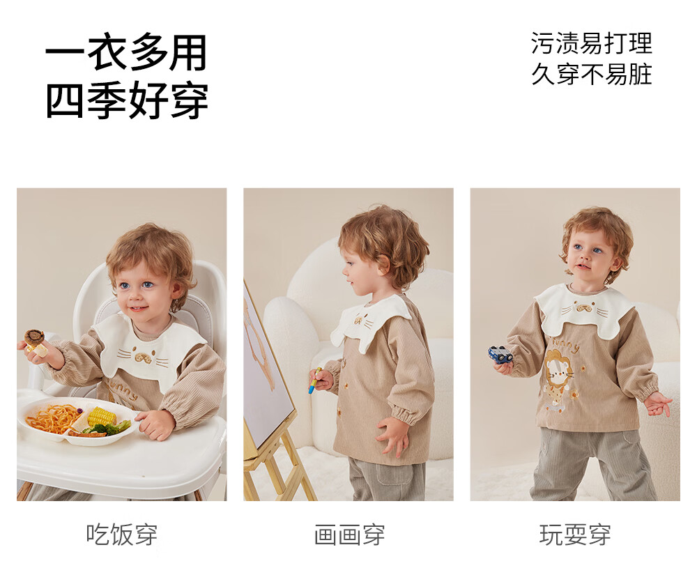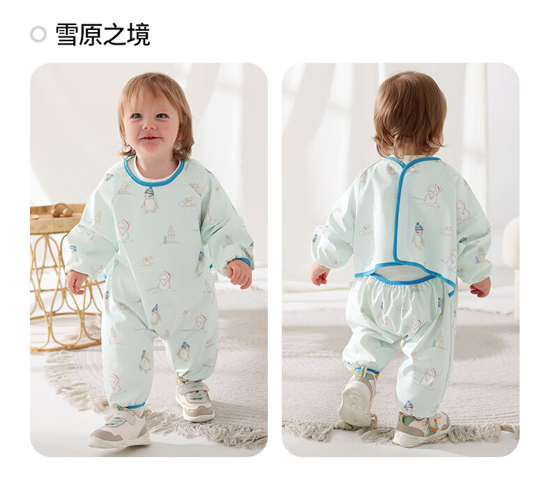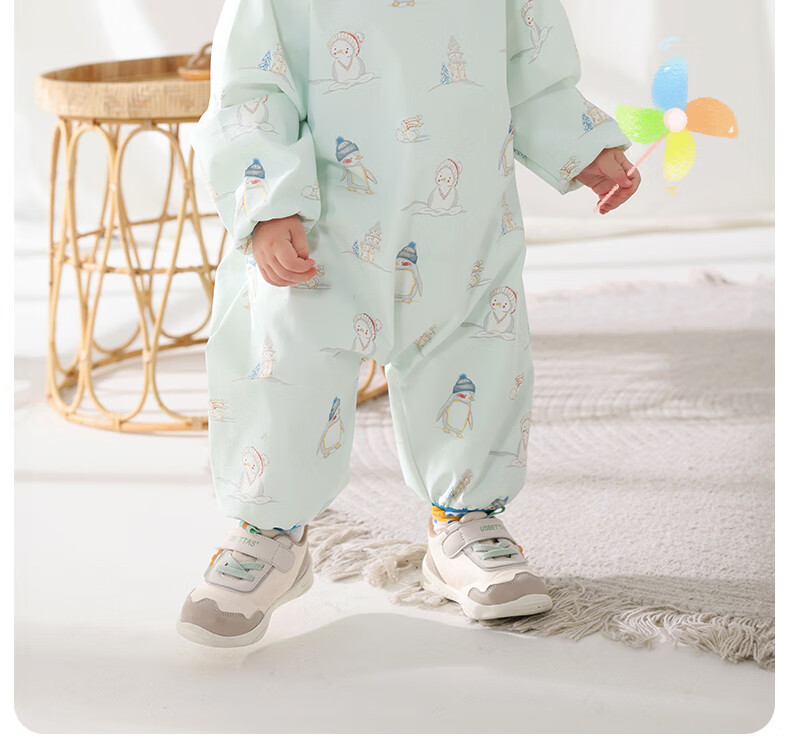 贝肽斯宝宝连体罩衣户外婴儿爬行防水脏爬爬服外穿儿童吃饭围兜辅食神器 滑滑乐狮【灯芯绒保暖御寒】 90码 1.5岁-2.5岁 适合85cm-93cm