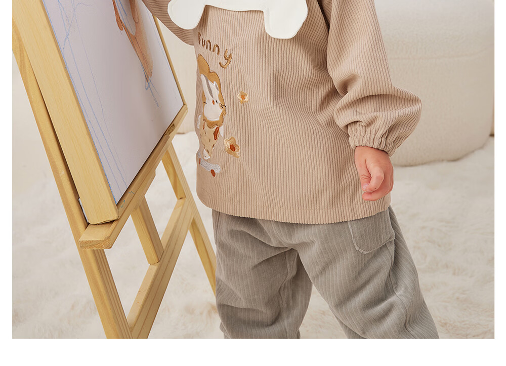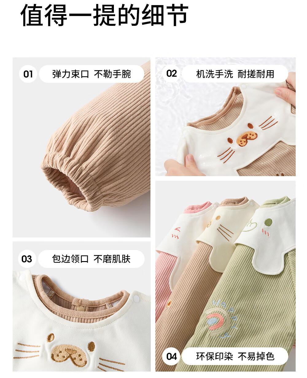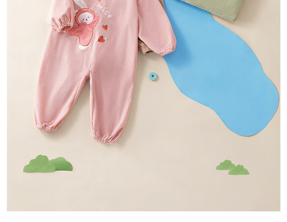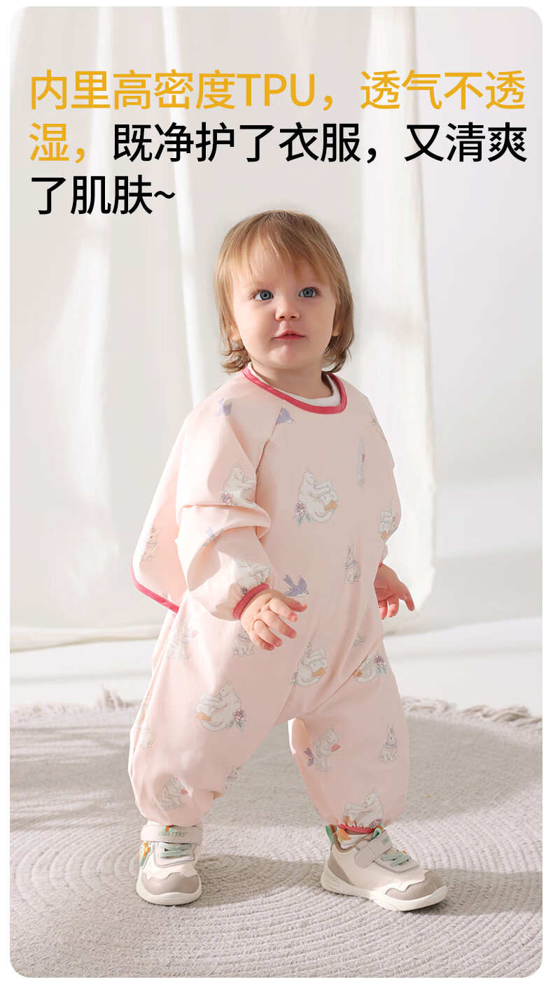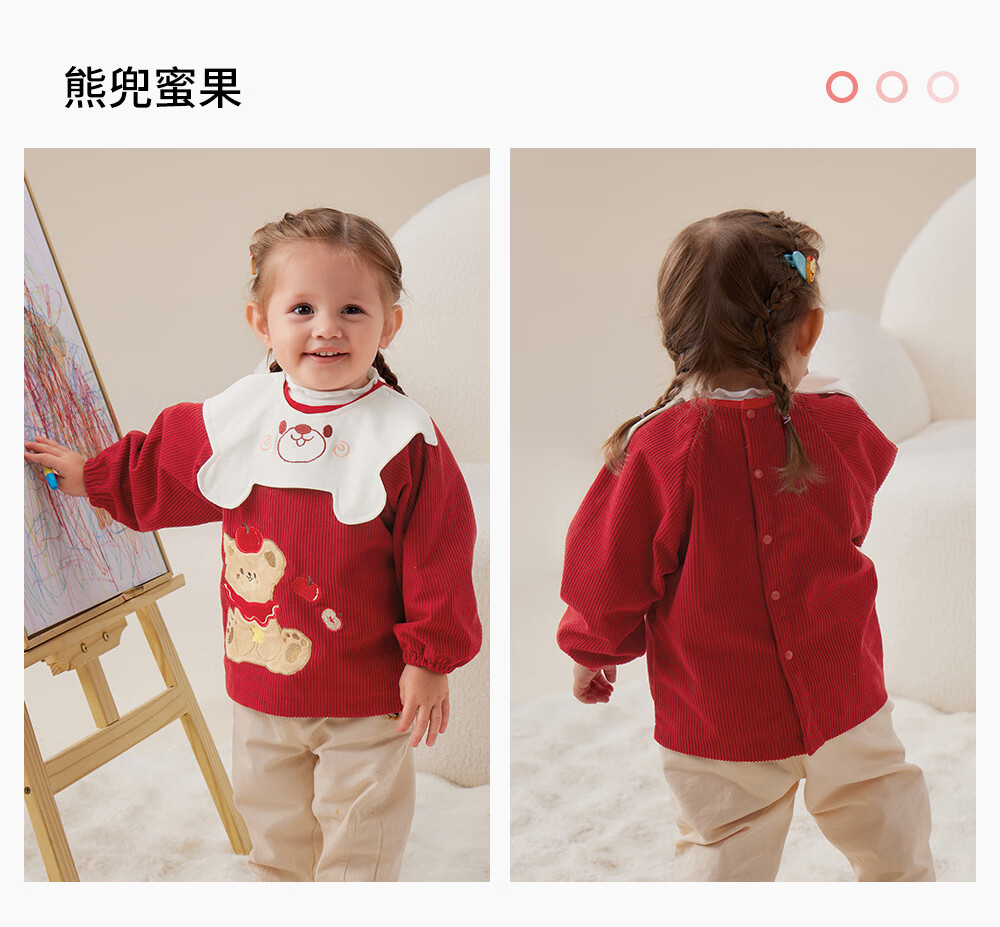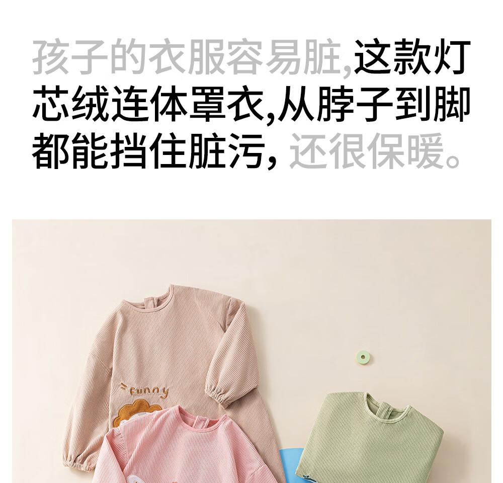 贝肽斯宝宝连体罩衣户外婴儿爬行防水脏爬爬服外穿儿童吃饭围兜辅食神器 滑滑乐狮【灯芯绒保暖御寒】 90码 1.5岁-2.5岁 适合85cm-93cm