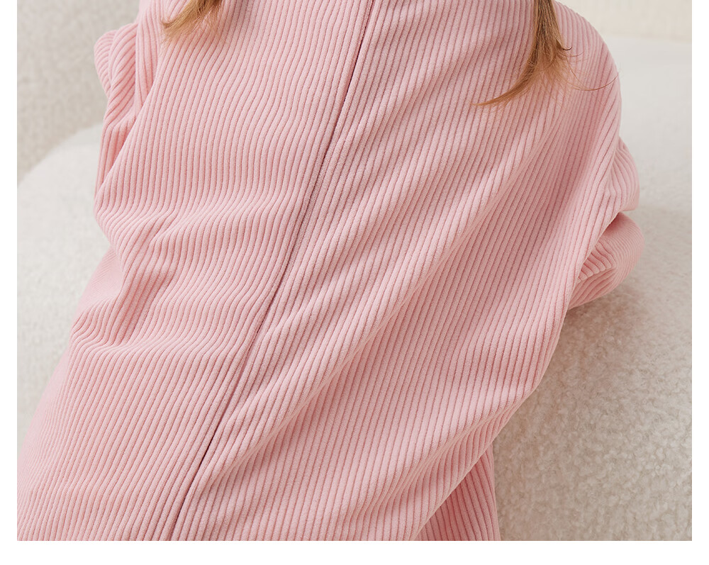 媛媛公主儿童条纹打底衫冬款女童保暖加厚新年抓毛软糯T恤中大童蓄热上衣 粉色 110