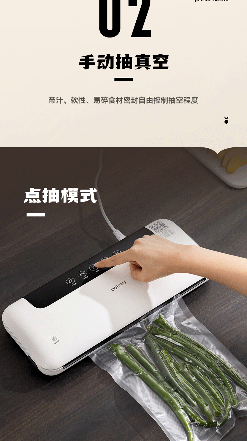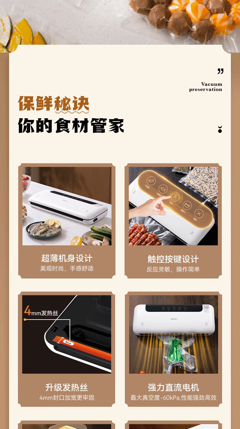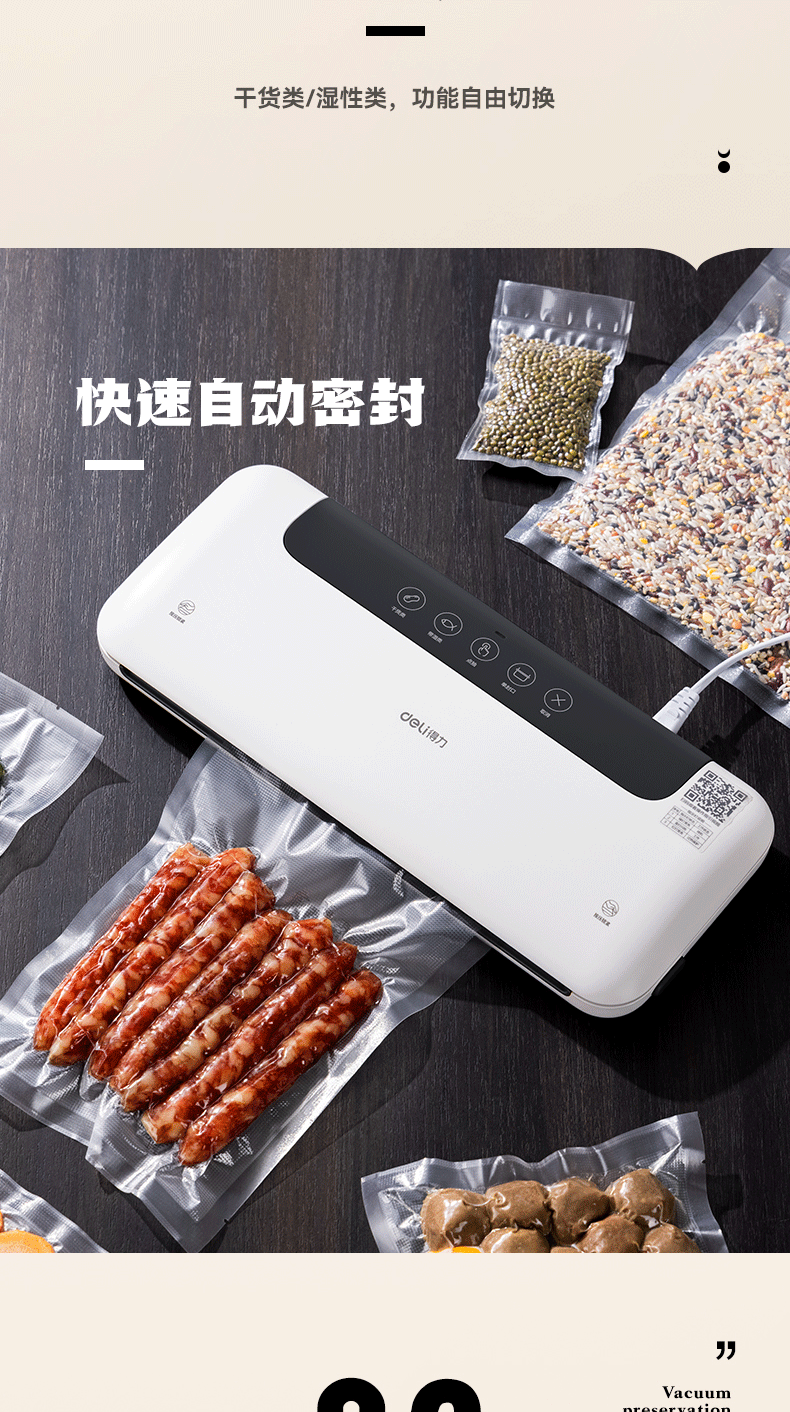 得力家用腊肉抽真空封口机小型真空包装机食品塑封机全自动真空机干湿两用真空保鲜打包机 爆款升级