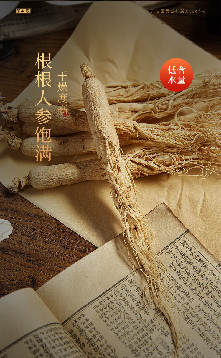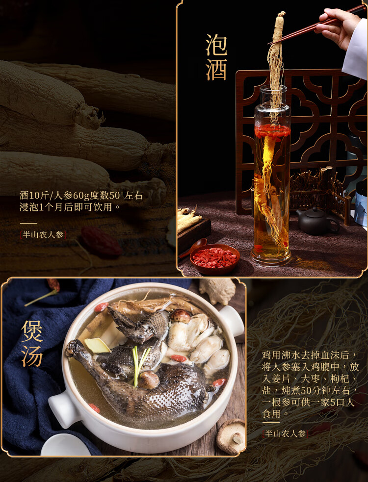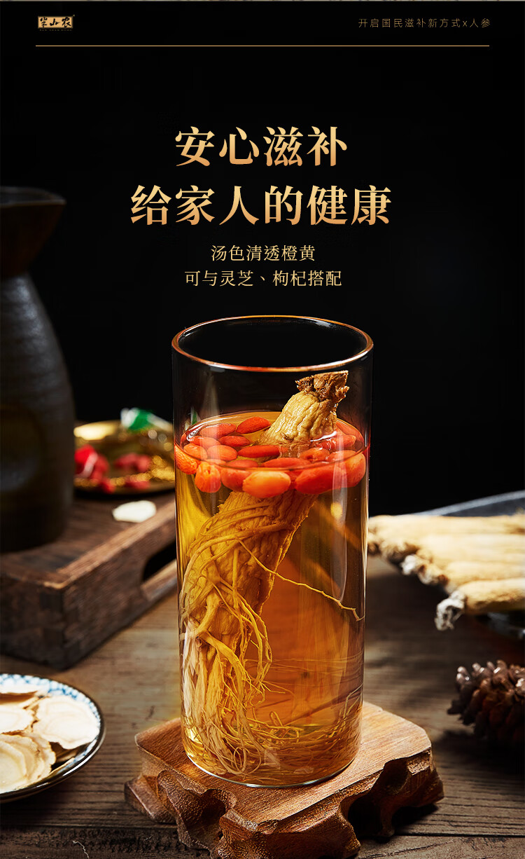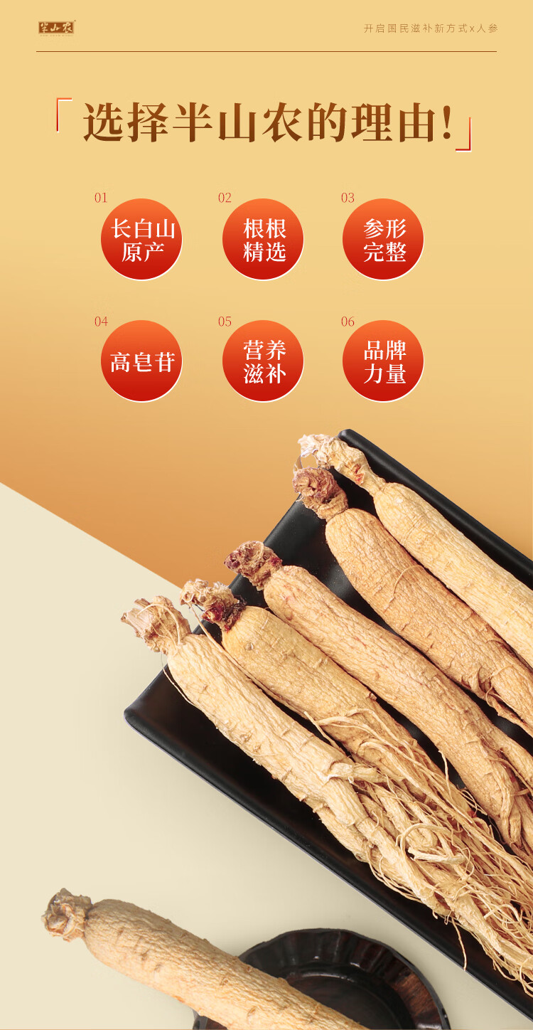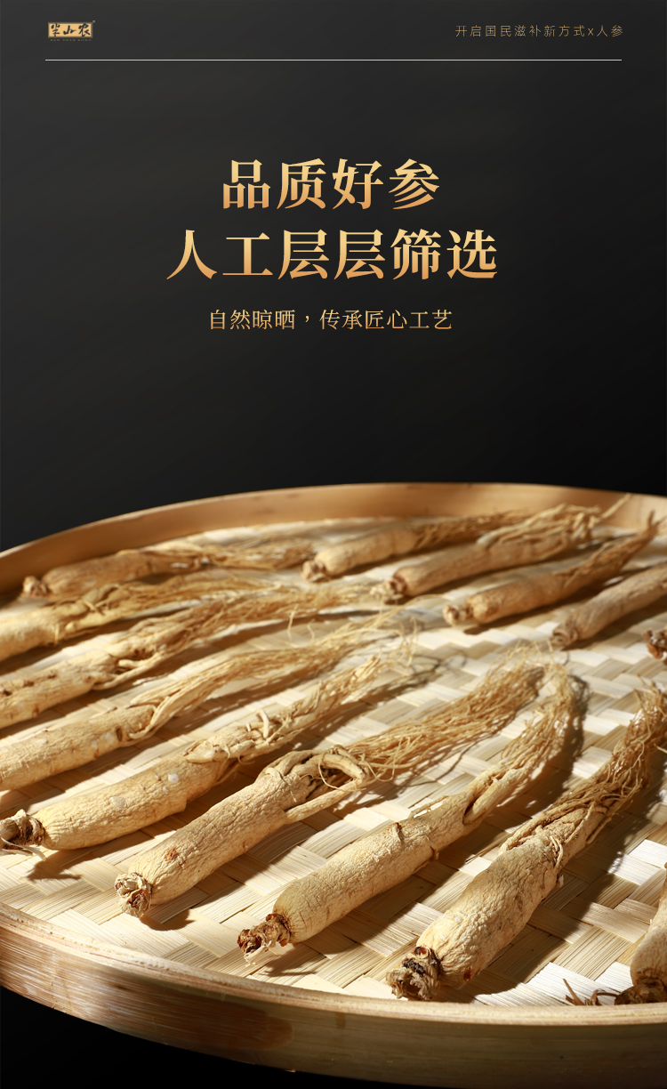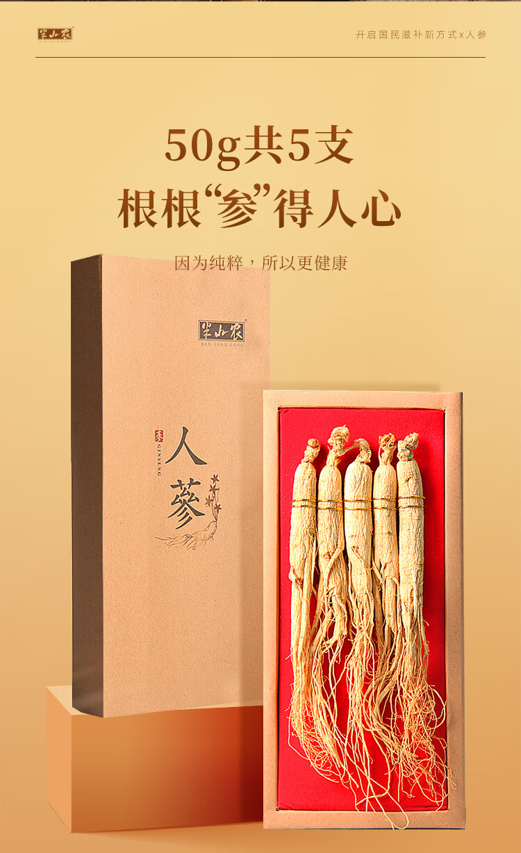 半山农 人参 长白山人参生晒参4-5支50克 泡酒药材送长辈滋补品高端礼盒