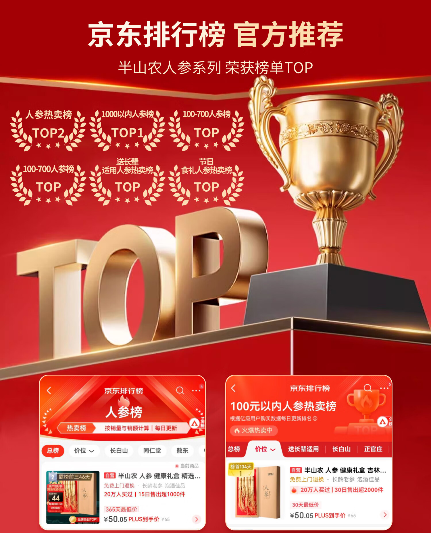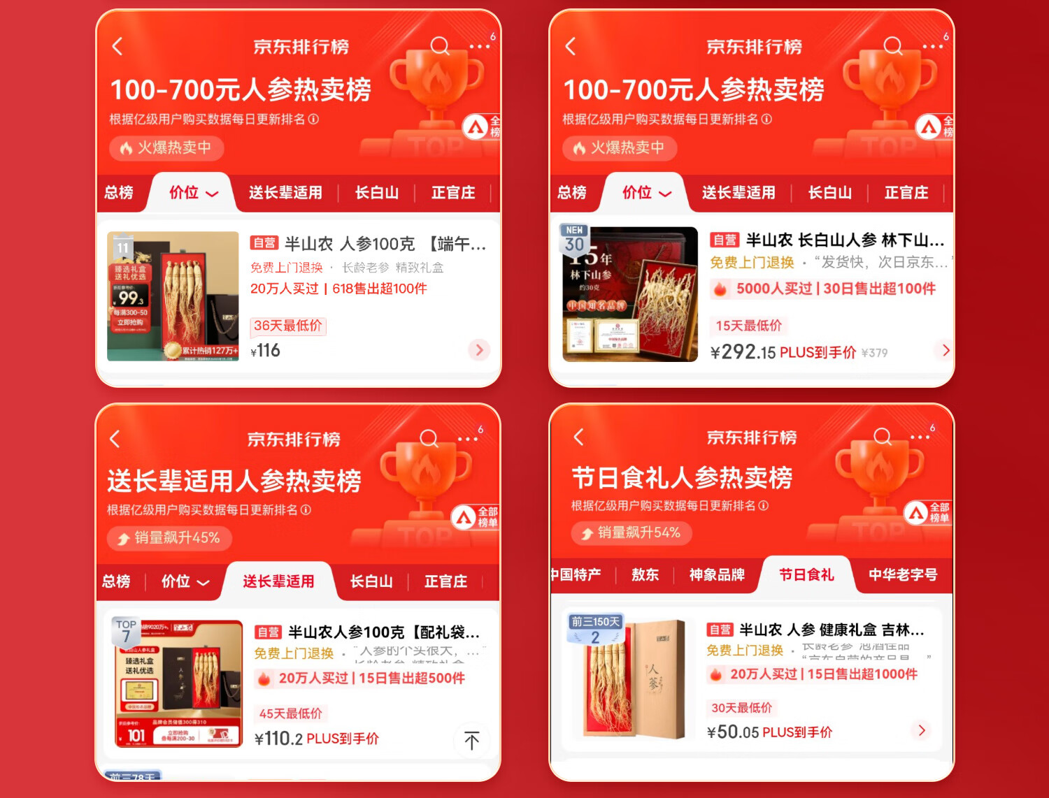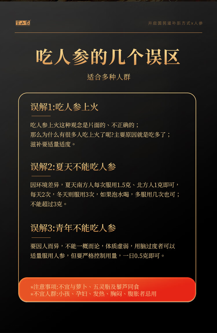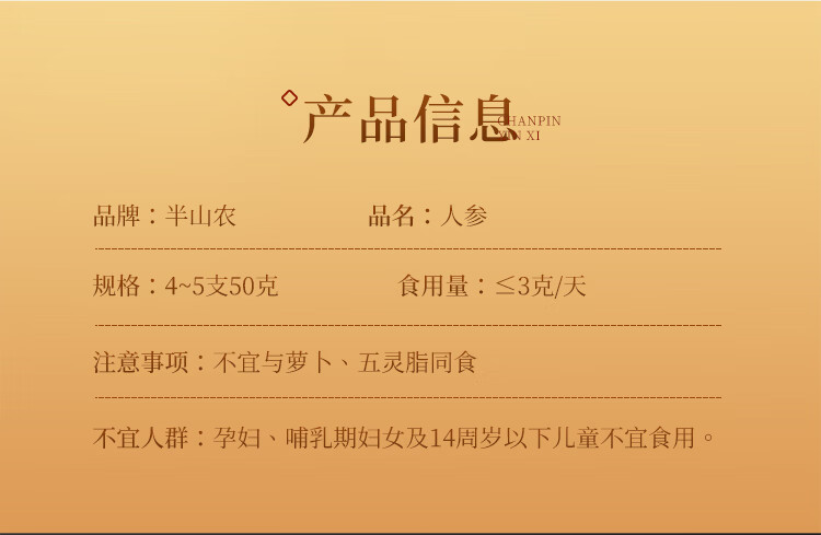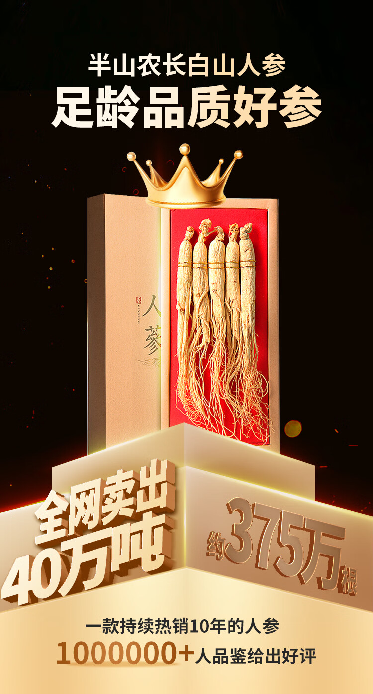 半山农 人参 长白山人参生晒参4-5支50克 泡酒药材送长辈滋补品高端礼盒