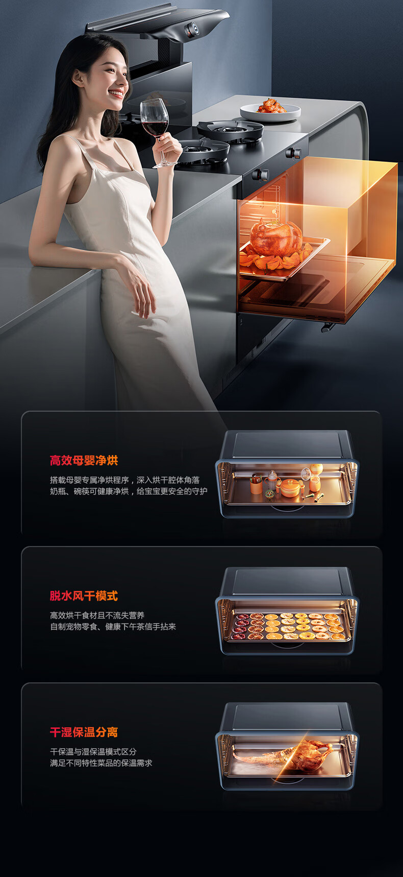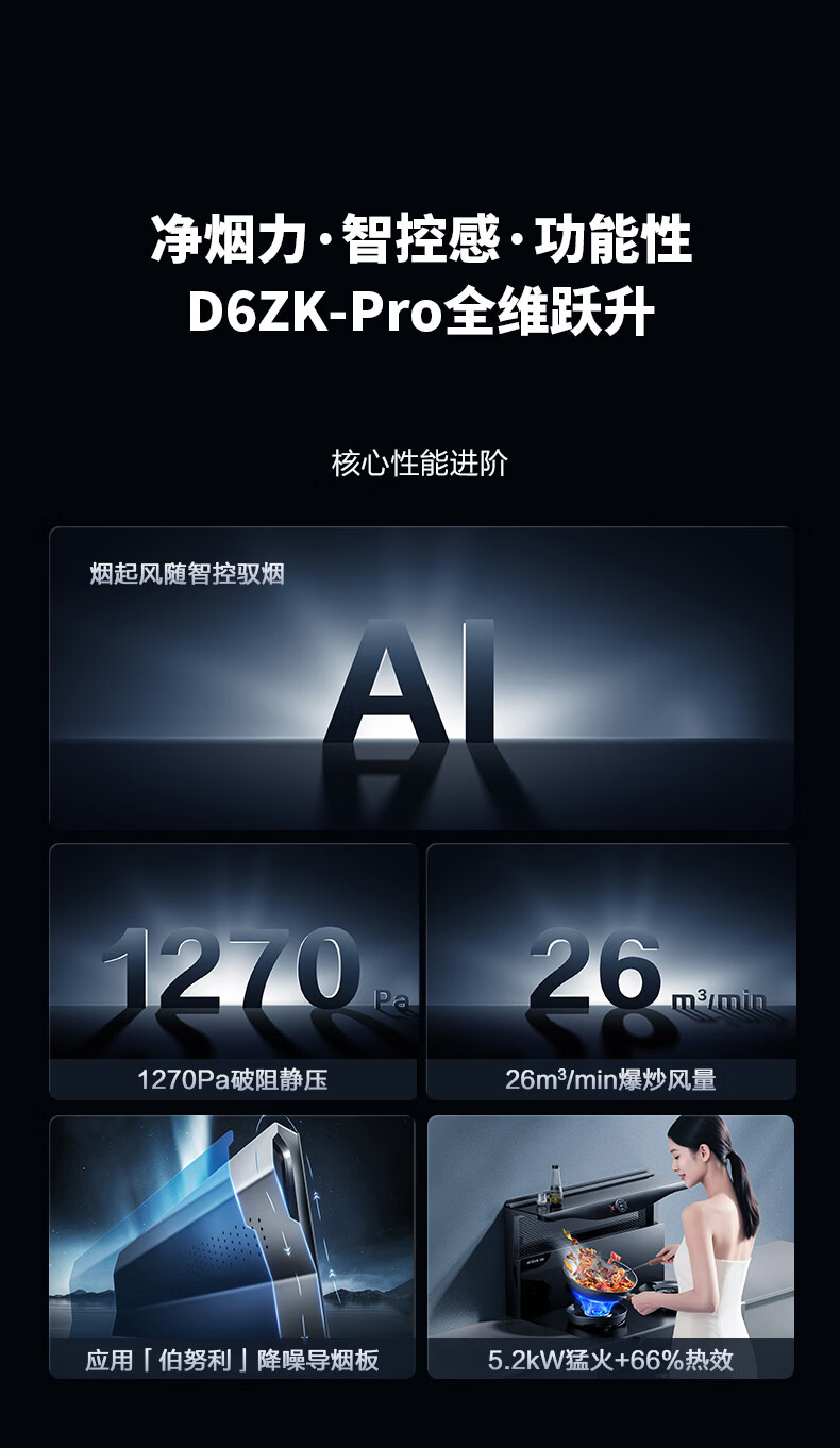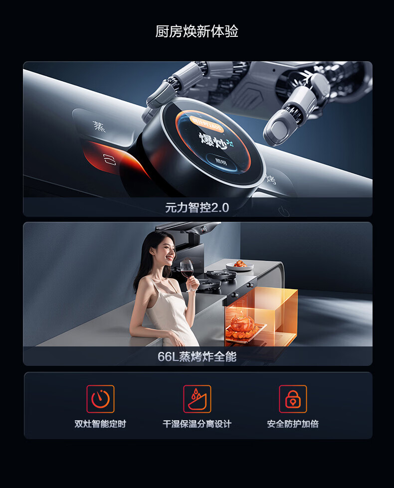 亿田集成灶【理想家系列】D6ZK-Pro 旋钮智控 蒸烤一体 集成灶一体式 左排烟液化气 油烟机 集成灶