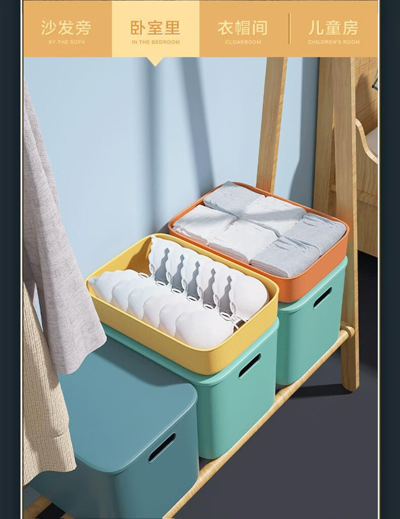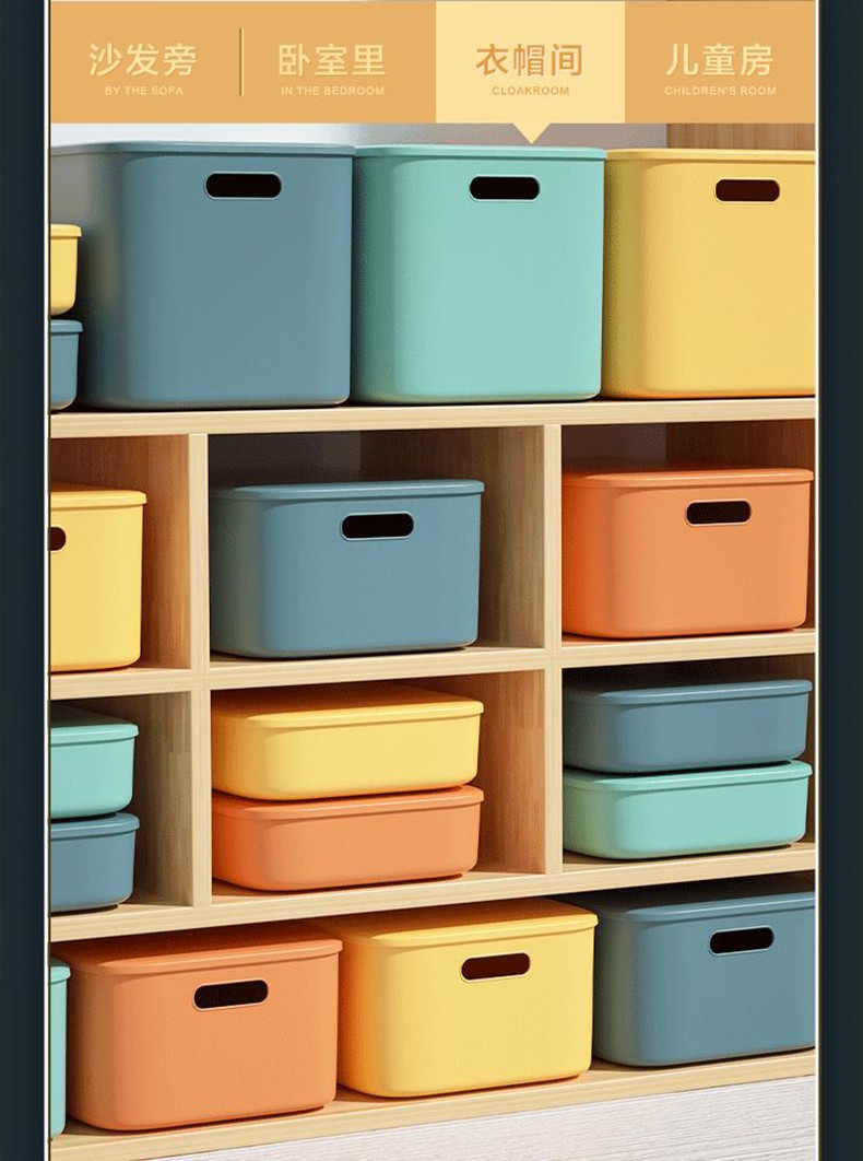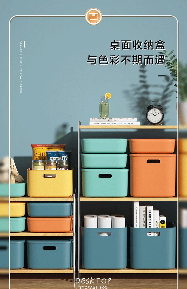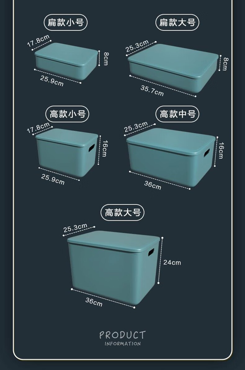 映季塑料收纳箱办公室桌面杂物整理储物箱衣物玩具箱子化妆品收纳盒子 高款中号静谧蓝 见主图