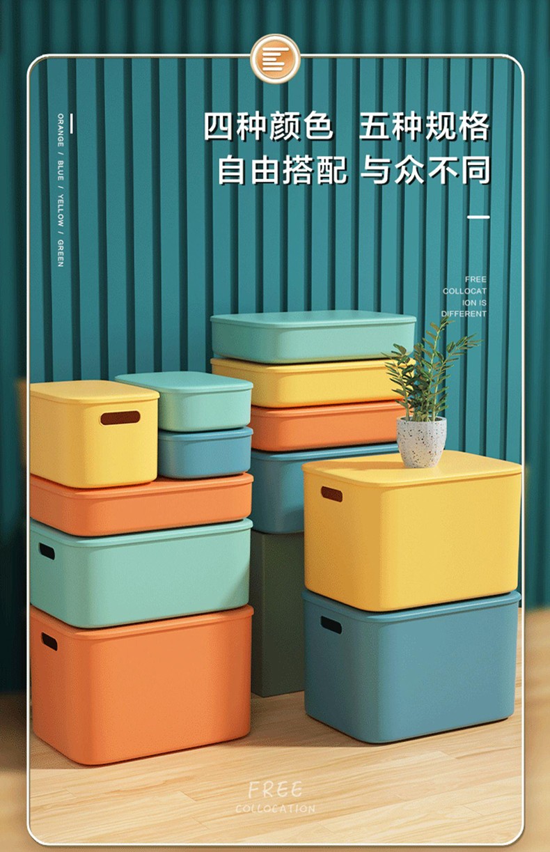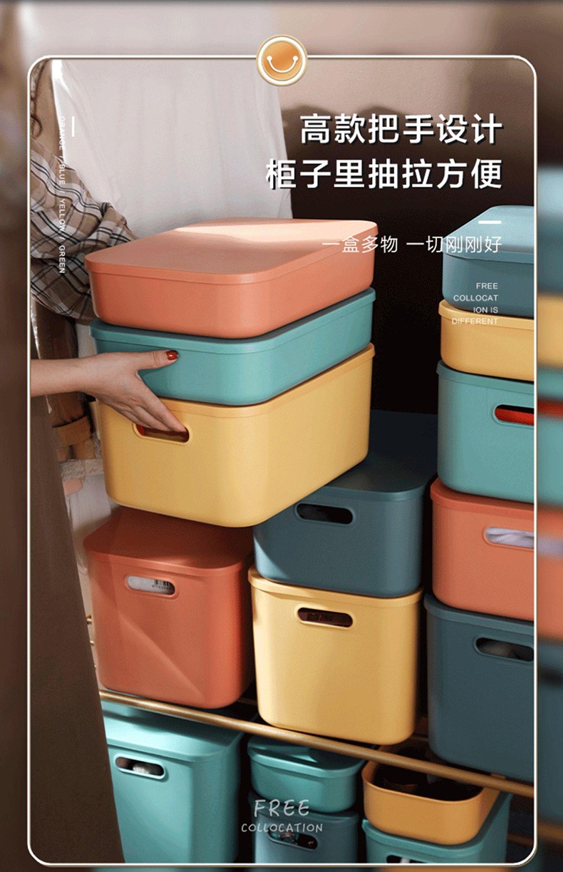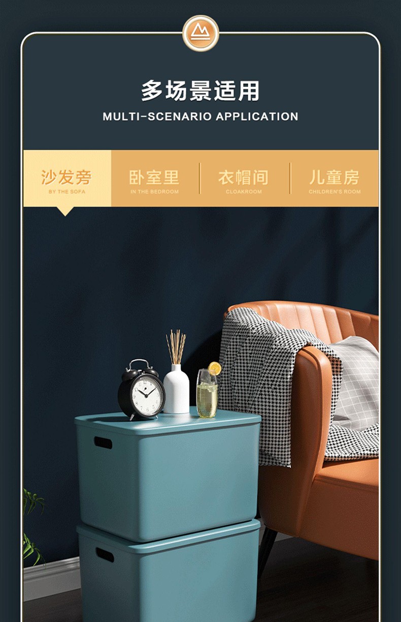 映季塑料收纳箱办公室桌面杂物整理储物箱衣物玩具箱子化妆品收纳盒子 高款中号静谧蓝 见主图