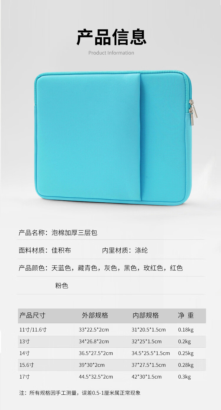 【严选直发】适用联想Macbook1315寸泡棉布防振平板便携拉链笔记 升级版黑色 11寸