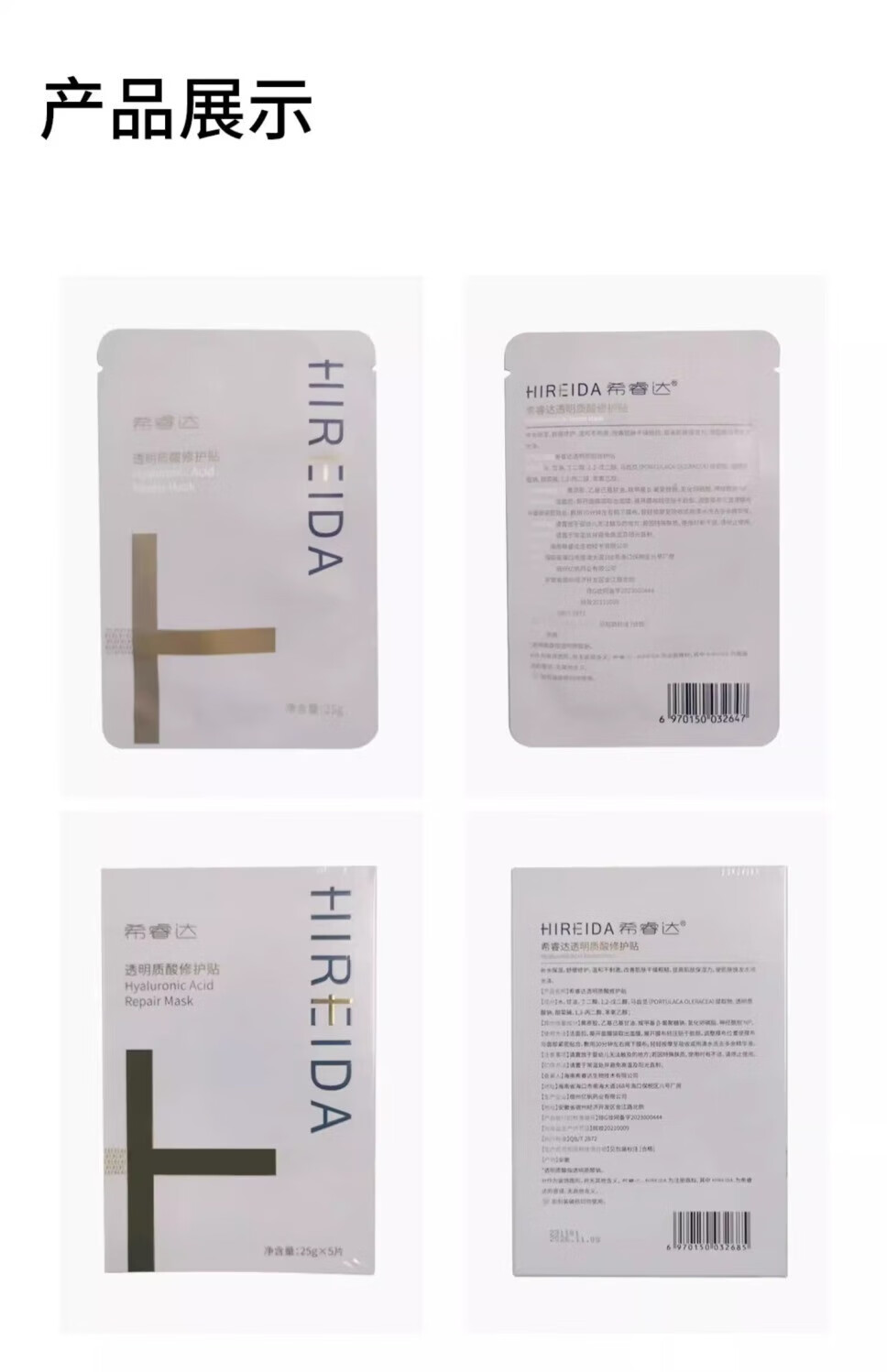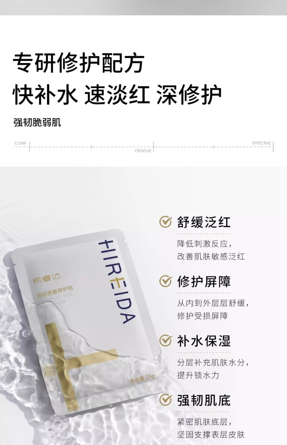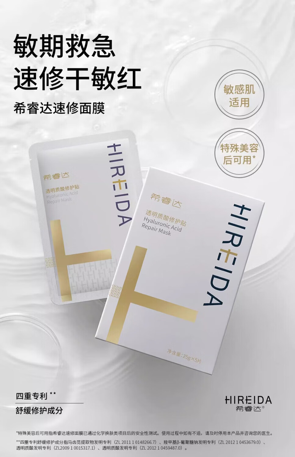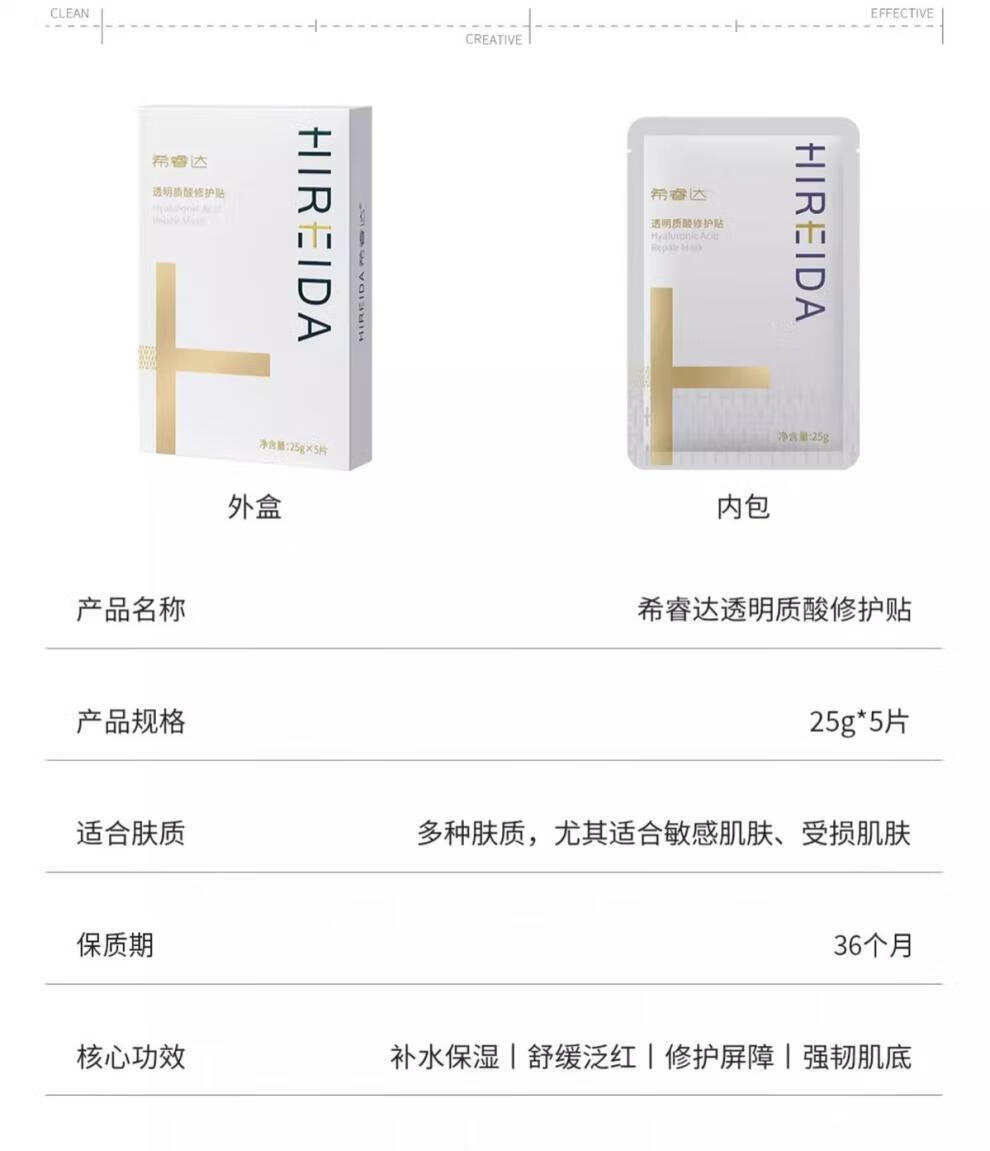 希睿达(HIREIDA)希睿达速修贴片面膜补水保湿透明质酸修护舒缓 速修面膜1盒(5片)