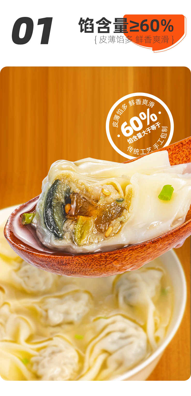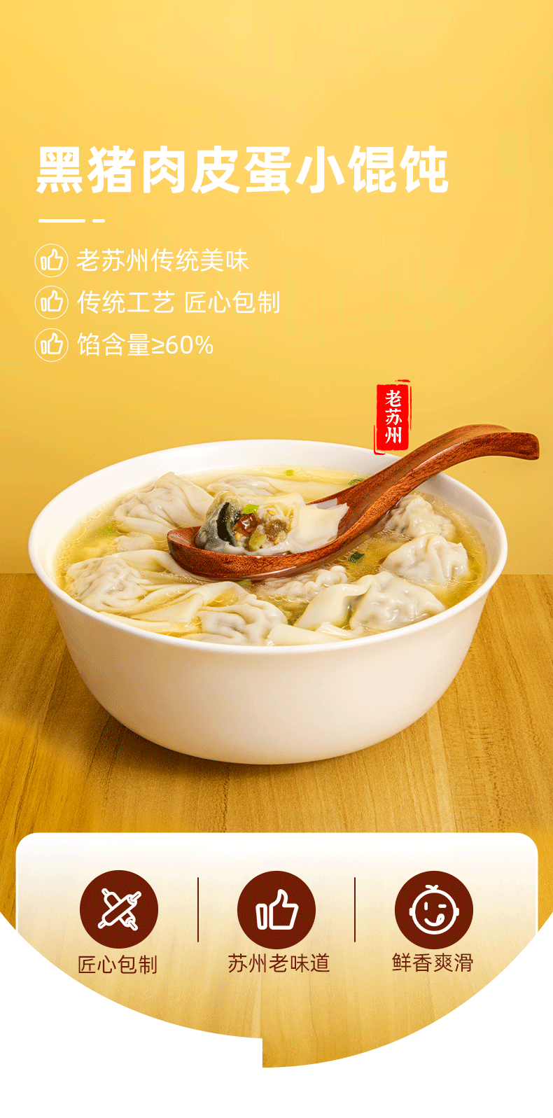 鹿有有苏式黑猪榨菜皮蛋小馄饨手工云吞扁抄手食速冻速食早餐方便 黑猪榨菜皮蛋小馄饨*5袋(共60只)