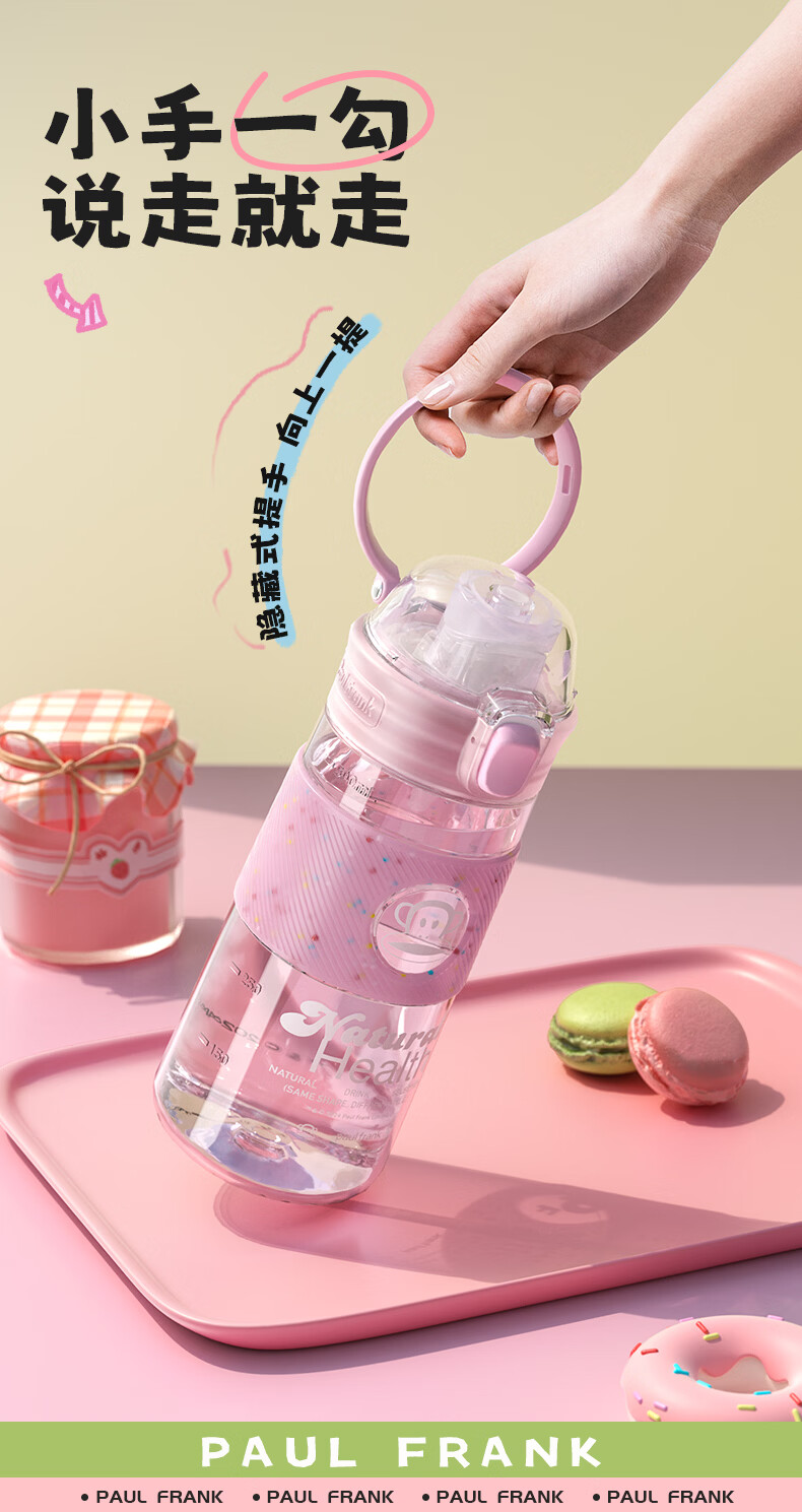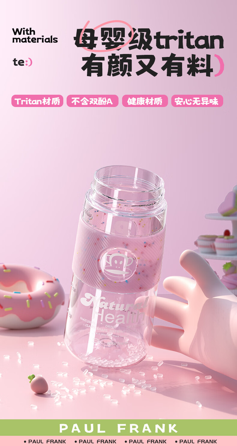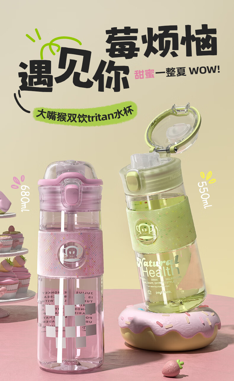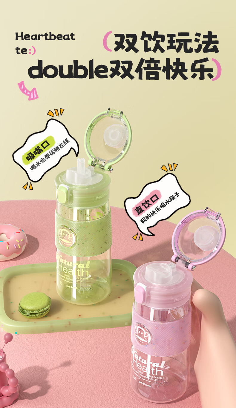 大嘴猴(paul frank)Tritan塑料杯男女生运动水杯大容量学生杯子耐热耐冷高颜值双饮杯 可可椰灰550ml