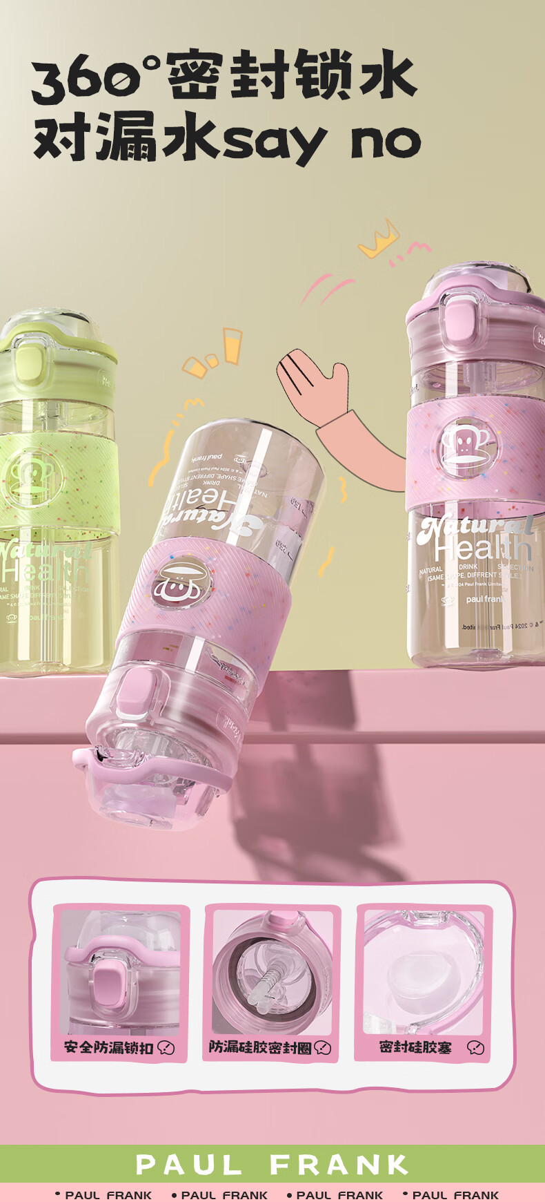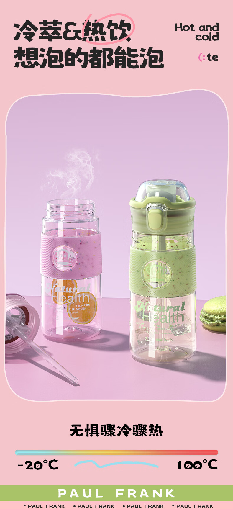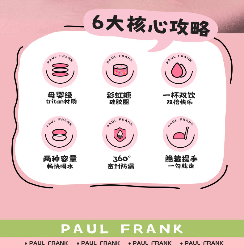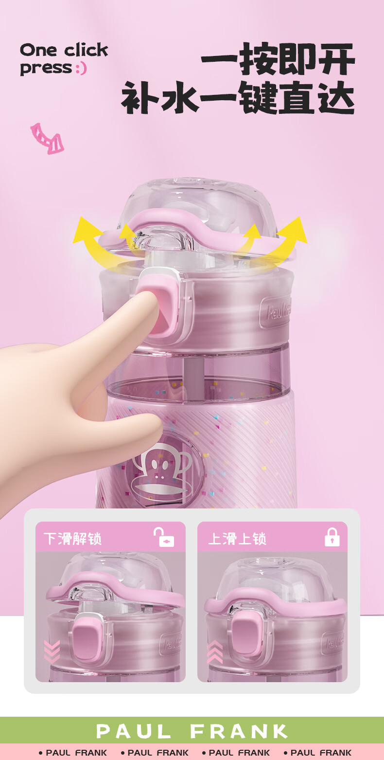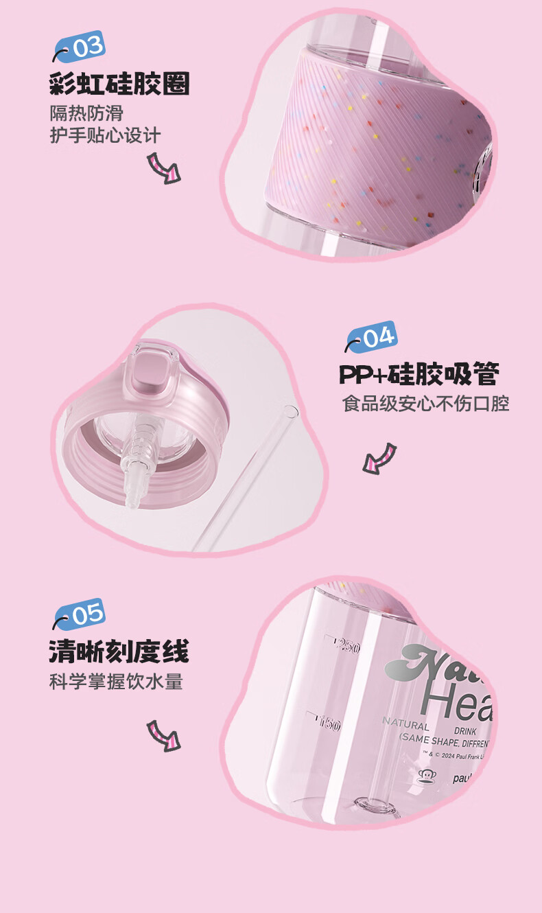大嘴猴(paul frank)Tritan塑料杯男女生运动水杯大容量学生杯子耐热耐冷高颜值双饮杯 可可椰灰550ml