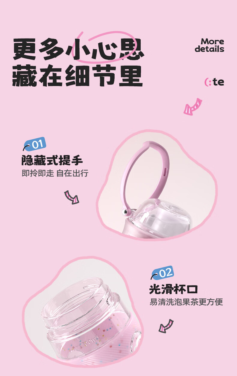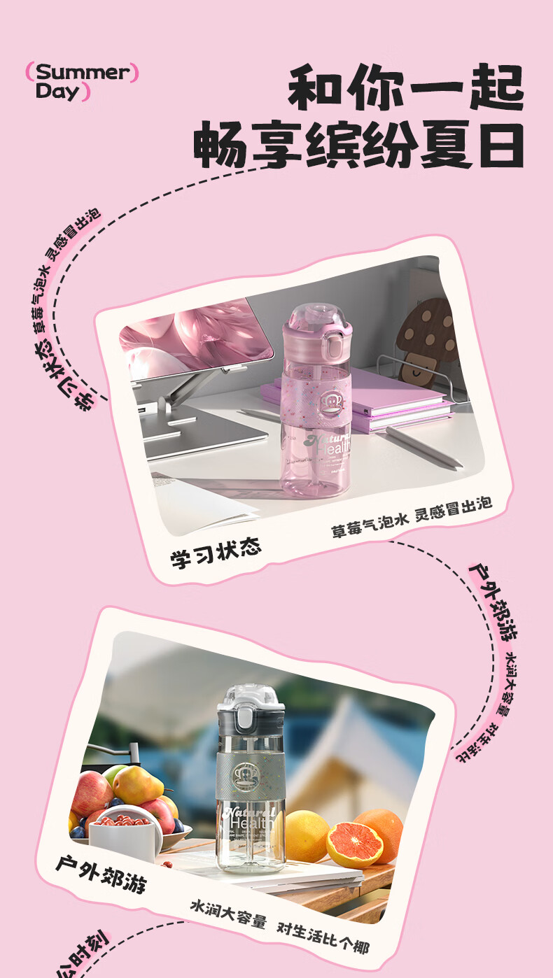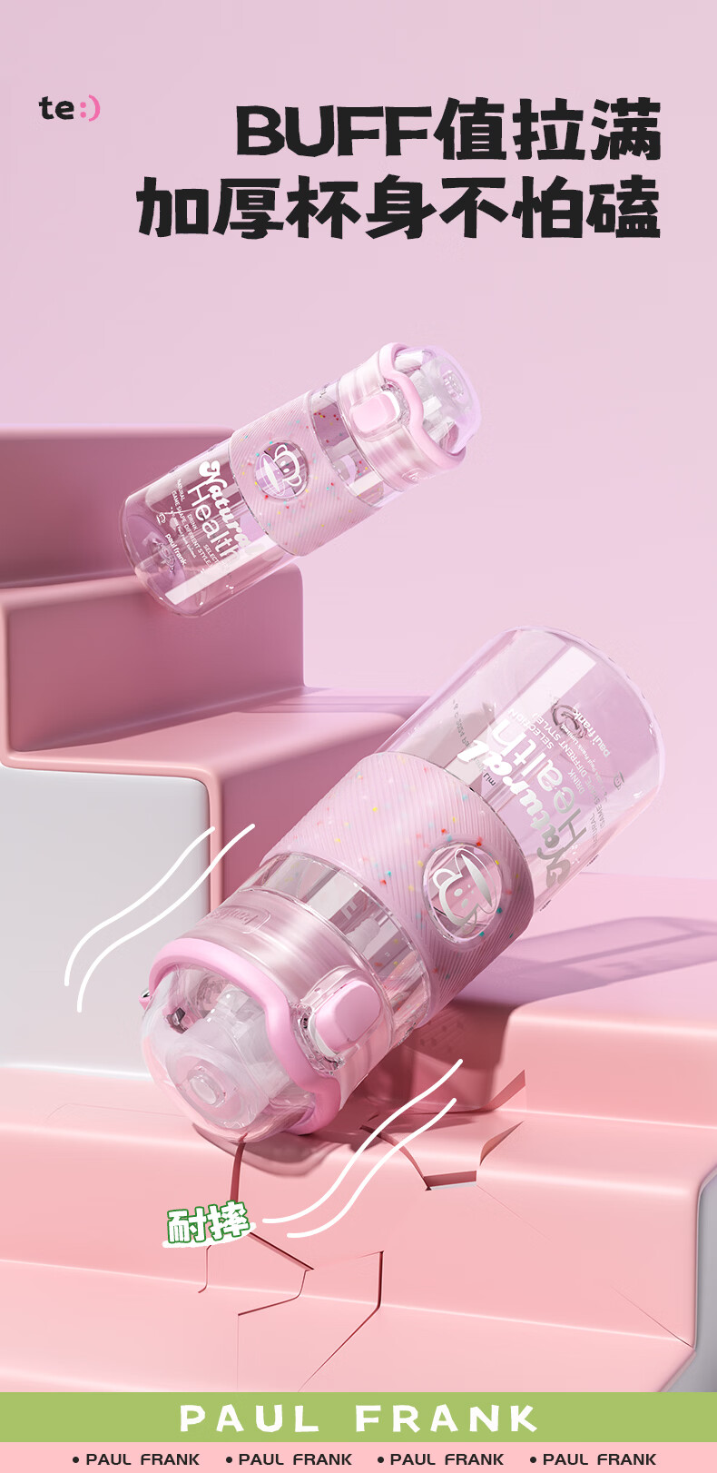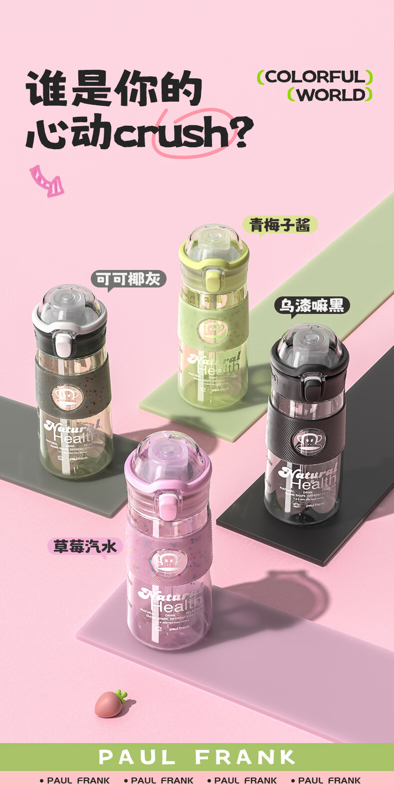 大嘴猴(paul frank)Tritan塑料杯男女生运动水杯大容量学生杯子耐热耐冷高颜值双饮杯 可可椰灰550ml