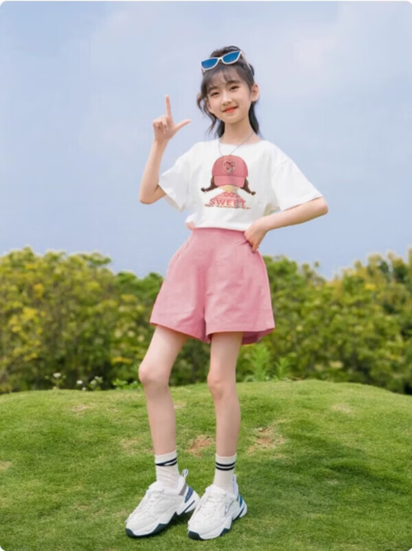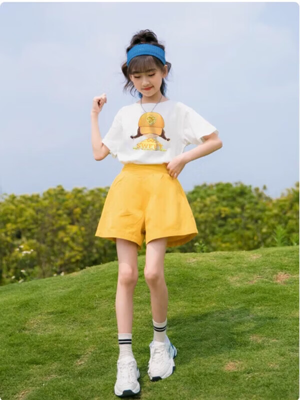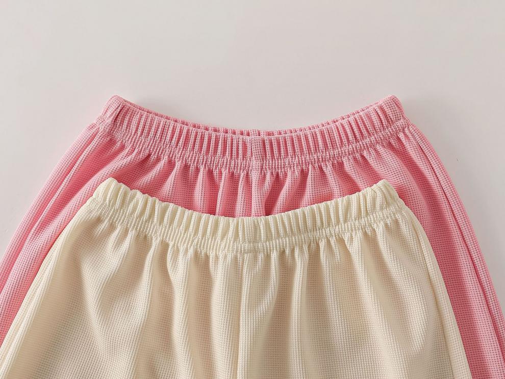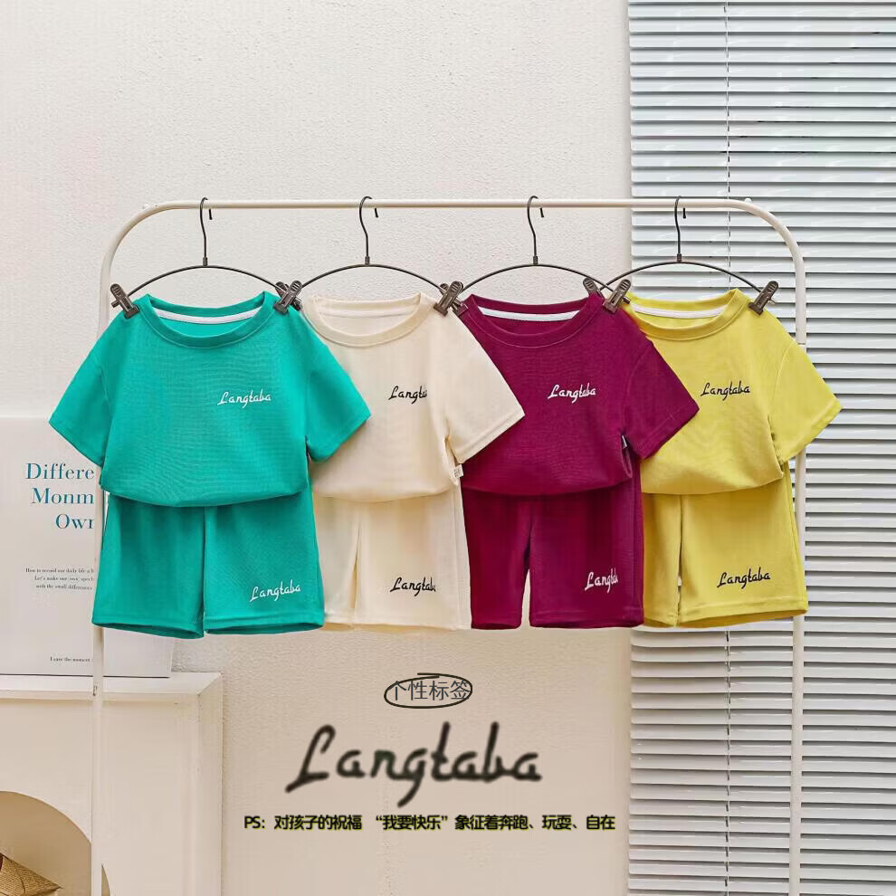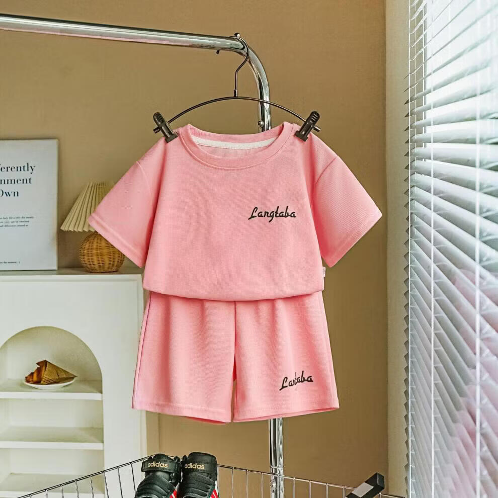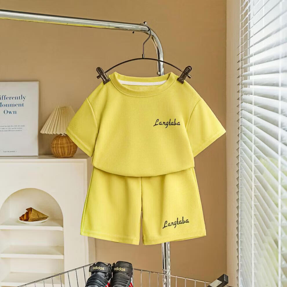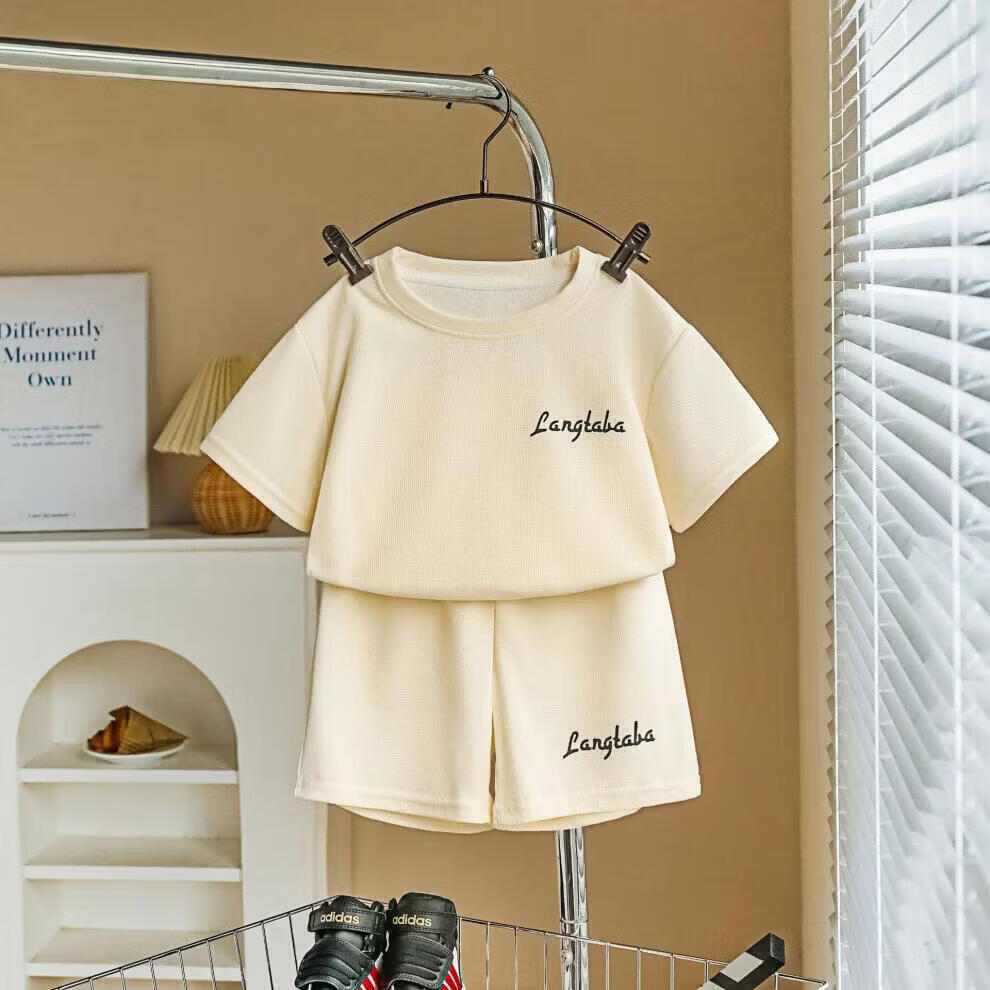 小猪班纳(PEPCO)儿童夏季套装新款华夫短袖两件套运动服男童女童休闲宽松韩系童装 华夫格-米白短袖套装 涤纶 130 建议身高115-125cm