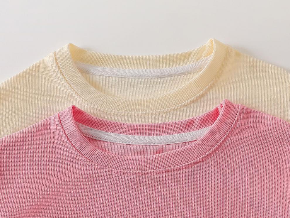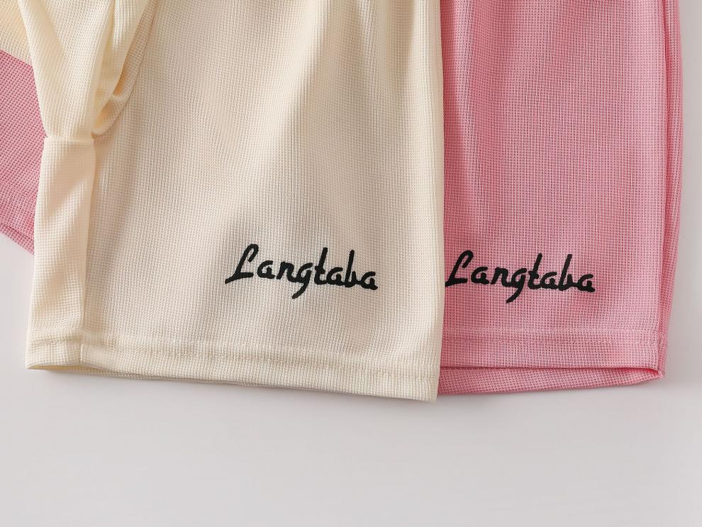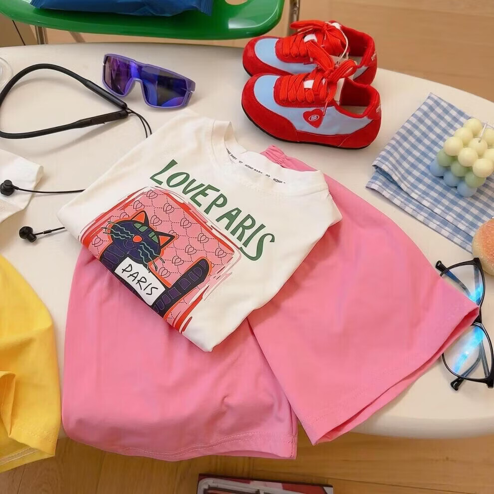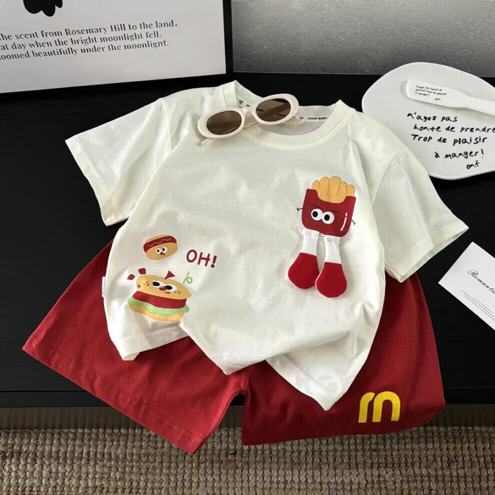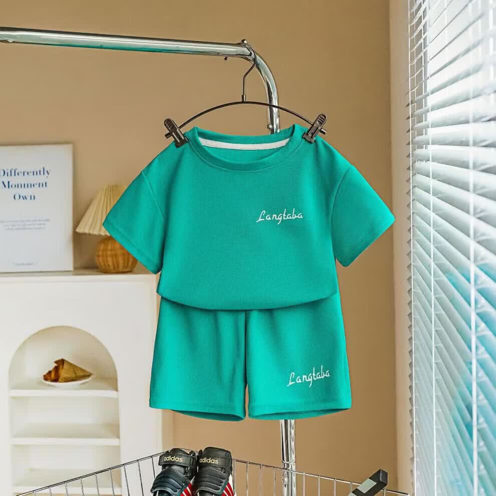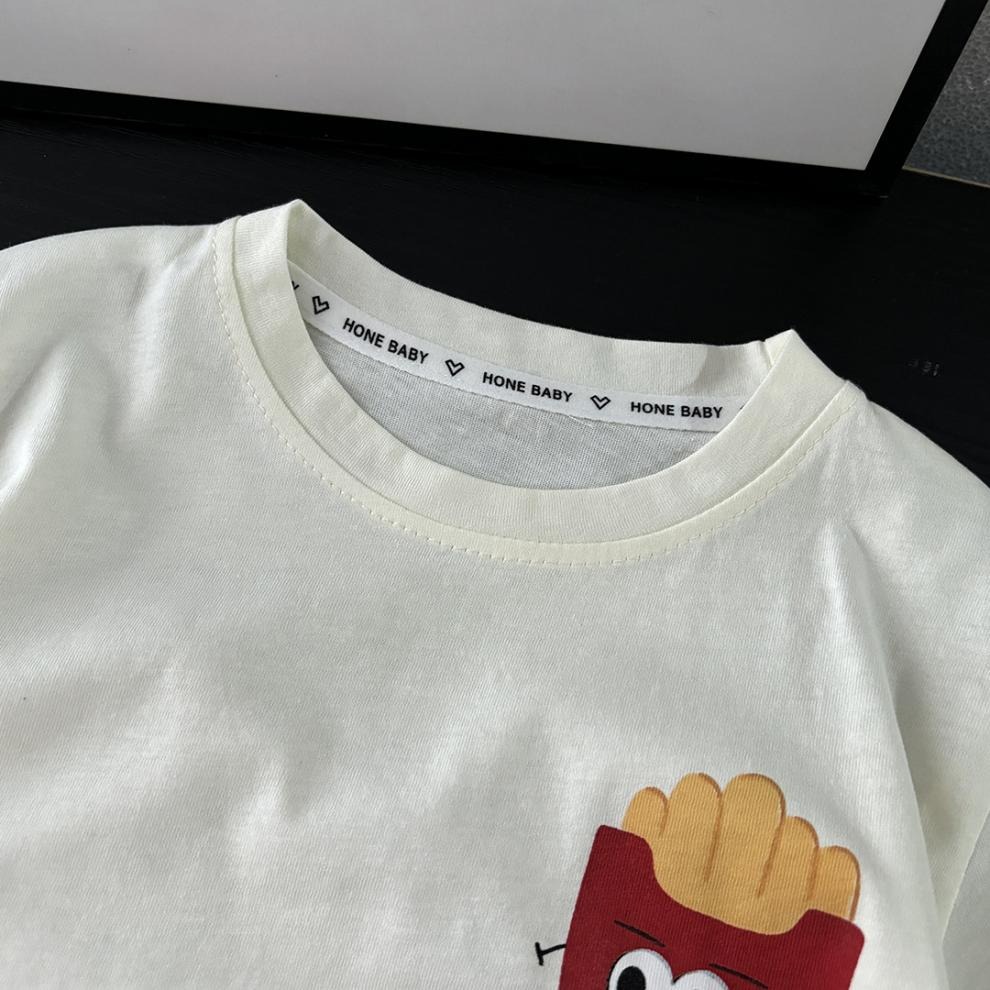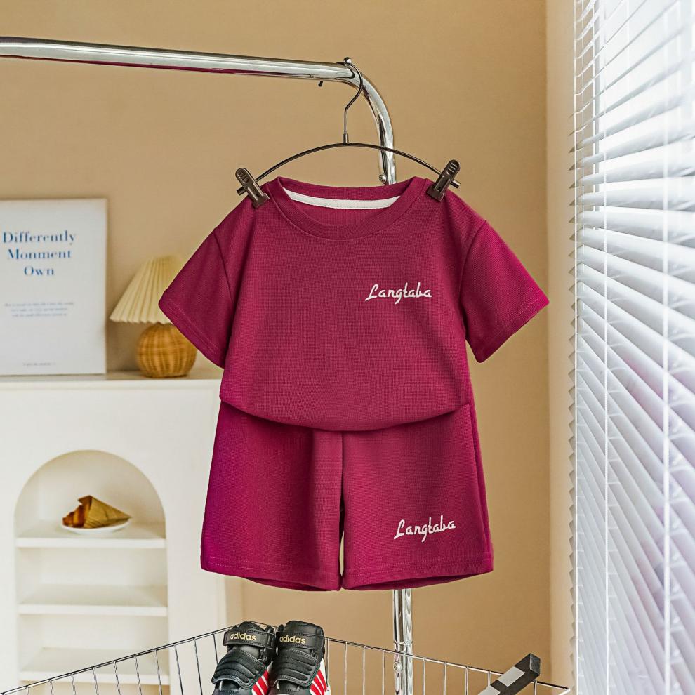 小猪班纳(PEPCO)儿童夏季套装新款华夫短袖两件套运动服男童女童休闲宽松韩系童装 华夫格-米白短袖套装 涤纶 130 建议身高115-125cm