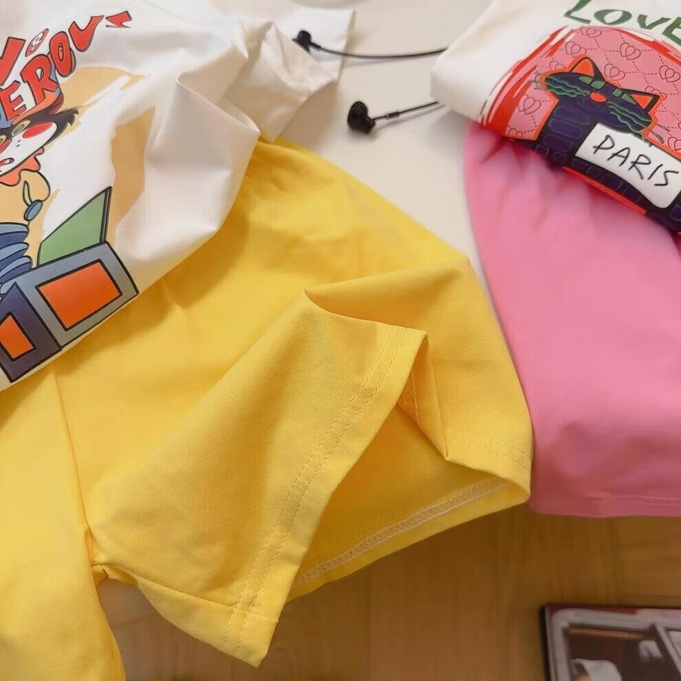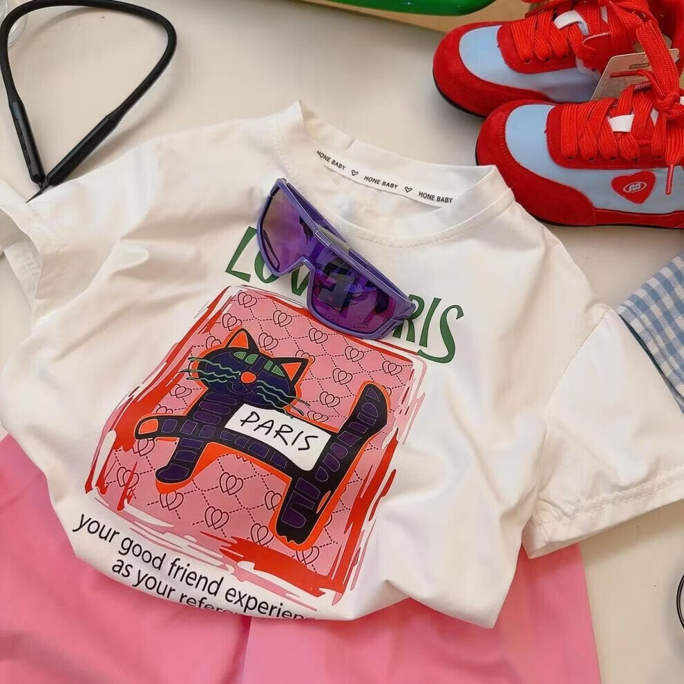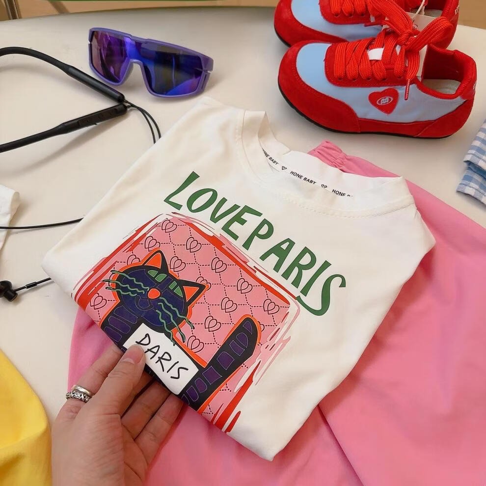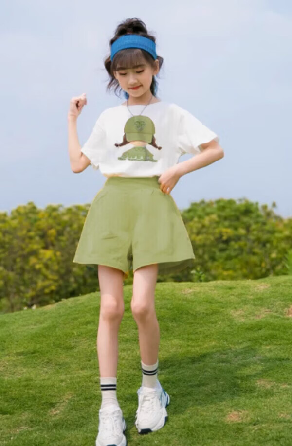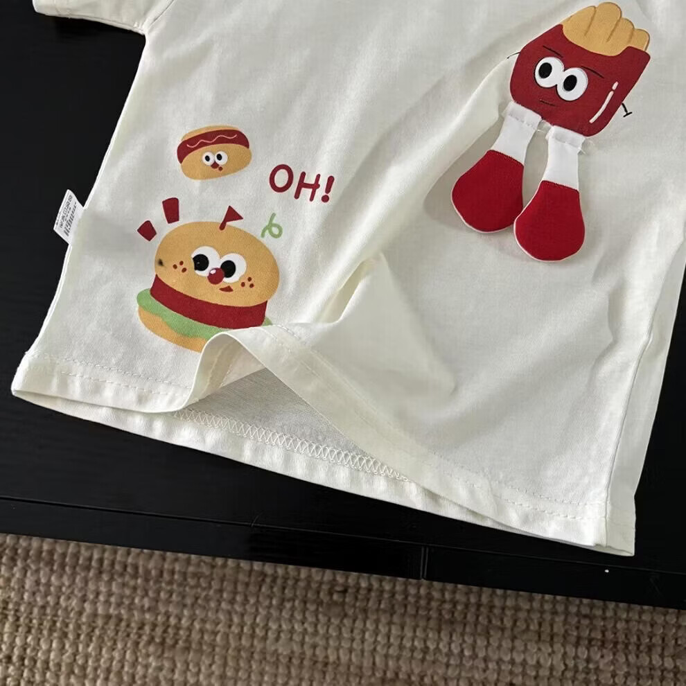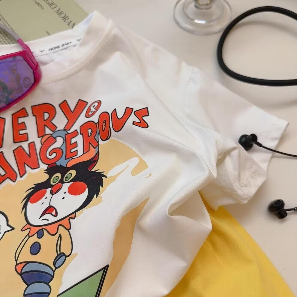 小猪班纳(PEPCO)儿童夏季套装新款华夫短袖两件套运动服男童女童休闲宽松韩系童装 华夫格-米白短袖套装 涤纶 130 建议身高115-125cm