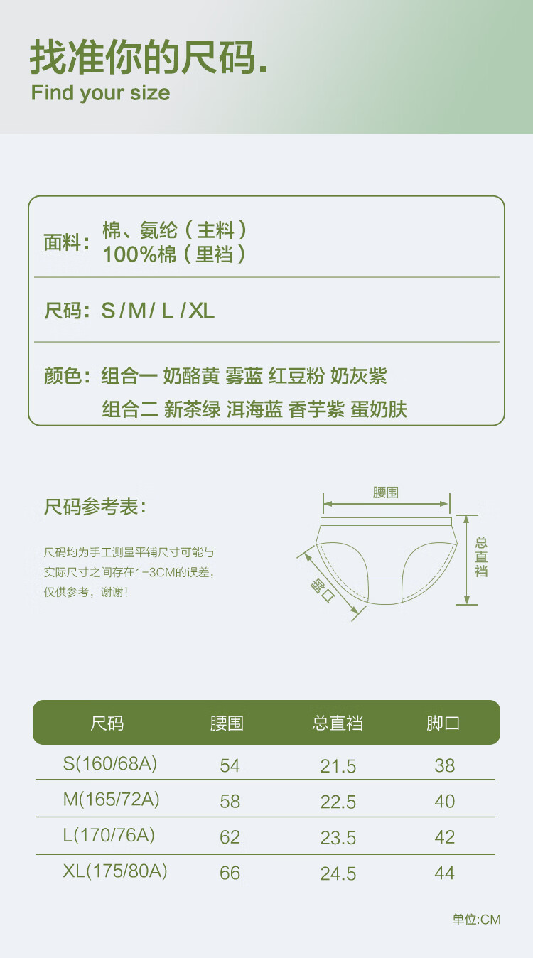 红豆居家女士内裤A类7A级抑菌纯棉裆透气柔棉莫兰迪色三角短裤 HDK312组合一 M 165/72A