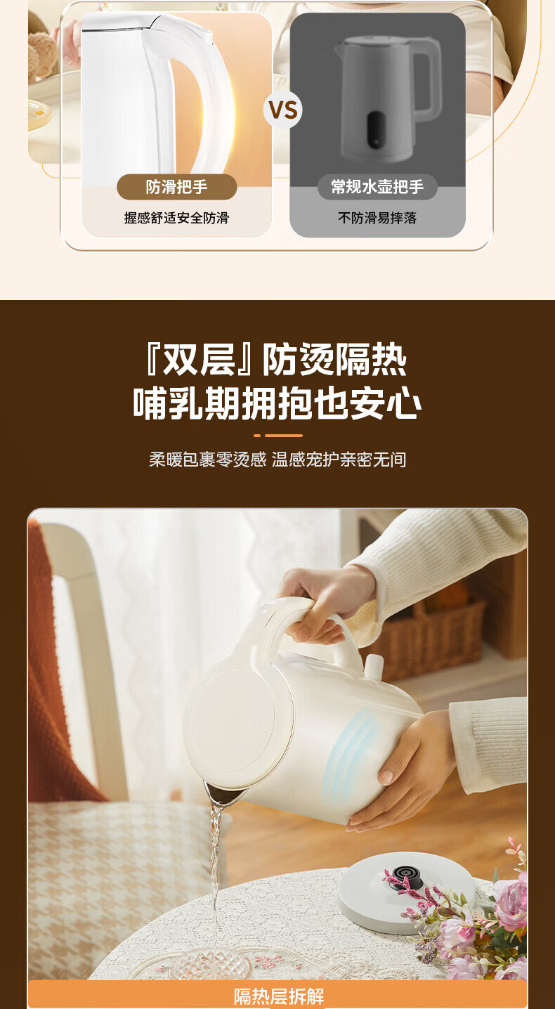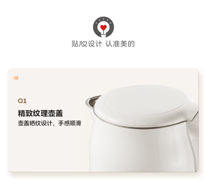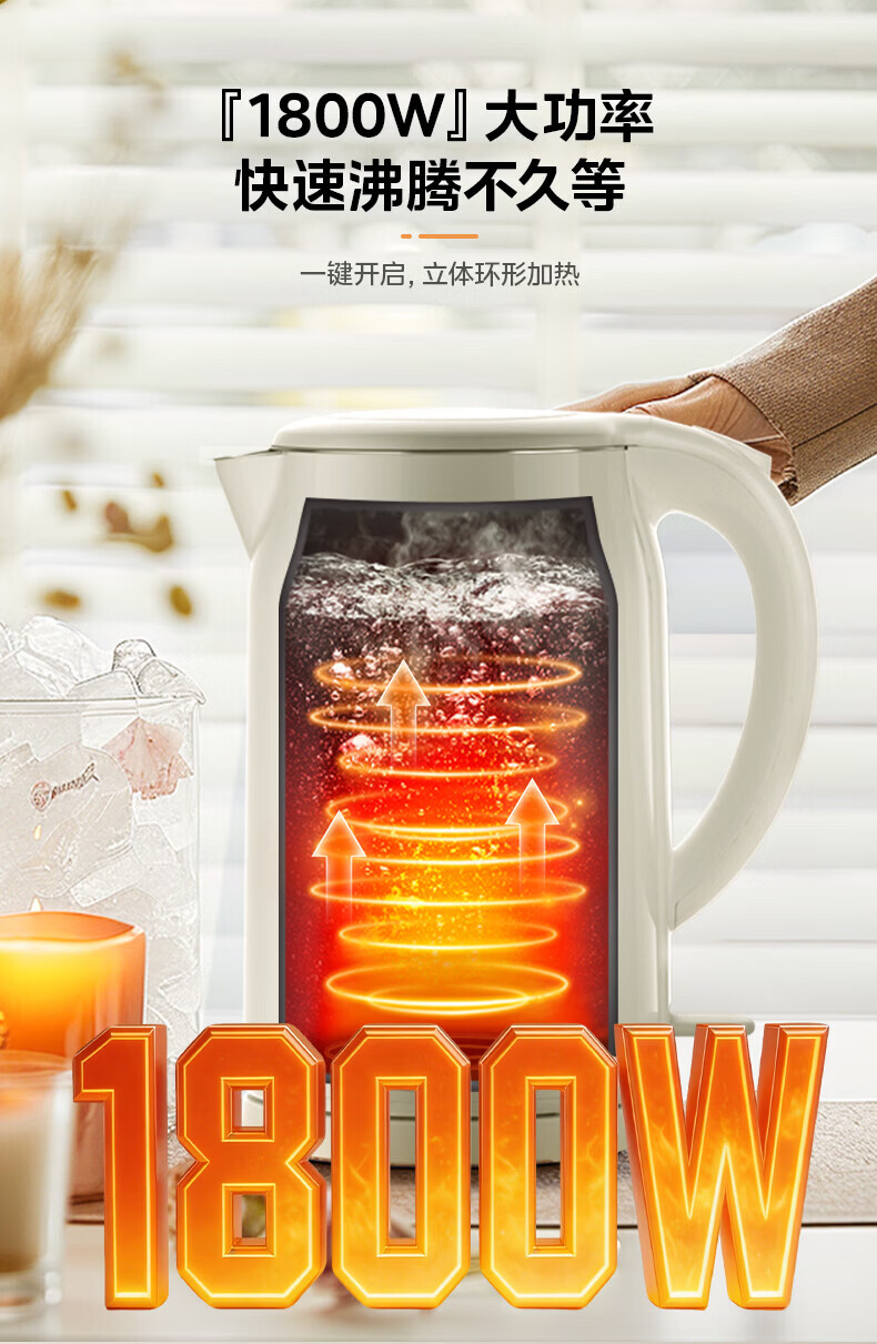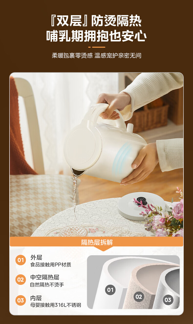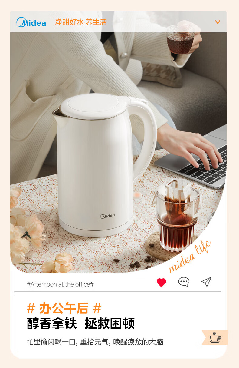 美的(Midea)2L大容量电热水壶 1800W家用快速沸腾电水壶烧水壶 不锈钢无缝内胆双层防烫热水壶 2L 【316L不锈钢】