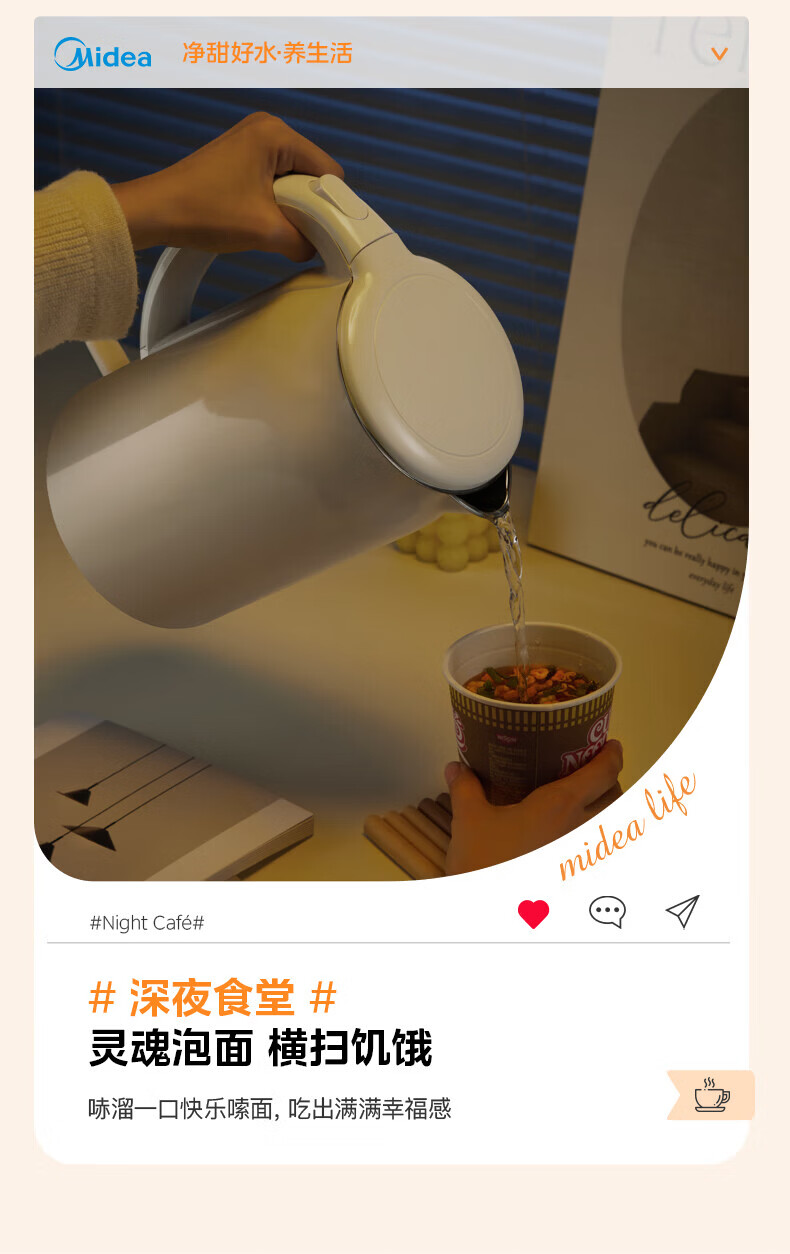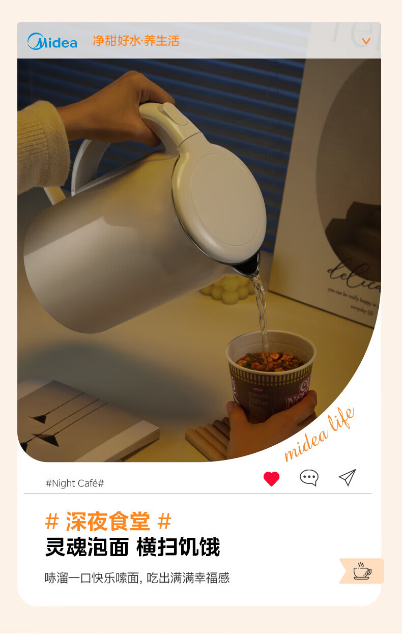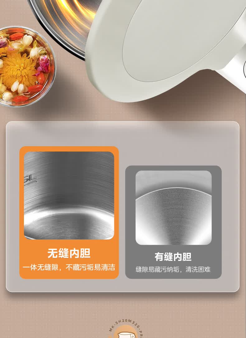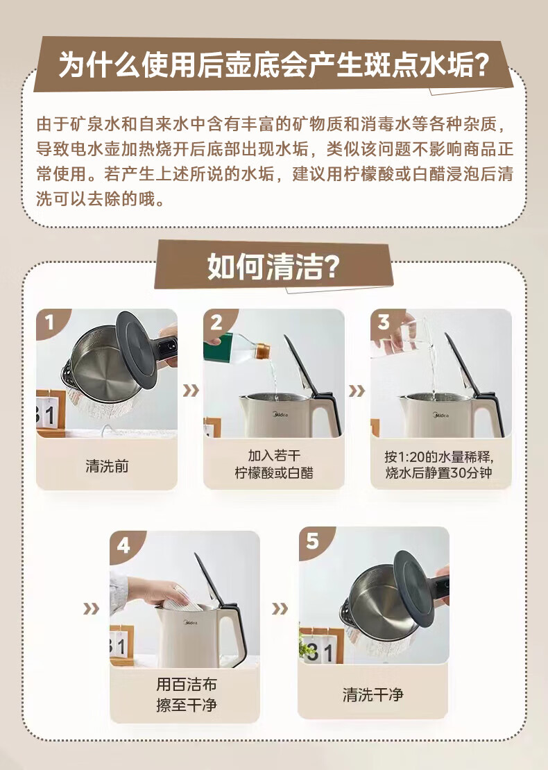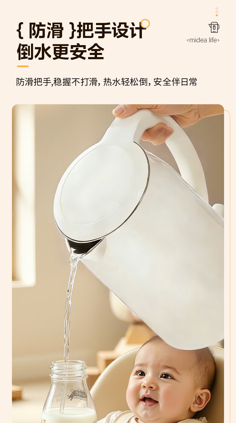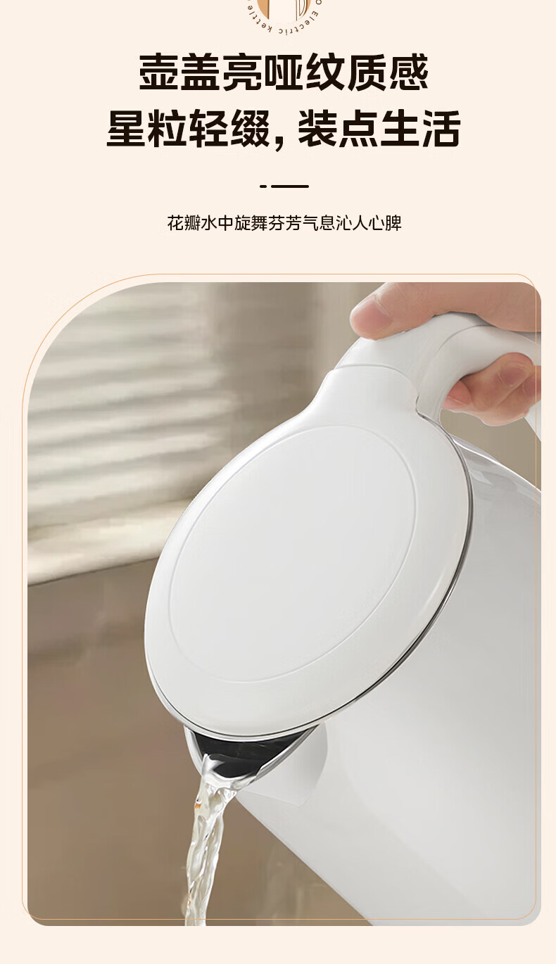 美的(Midea)2L大容量电热水壶 1800W家用快速沸腾电水壶烧水壶 不锈钢无缝内胆双层防烫热水壶 2L 【316L不锈钢】