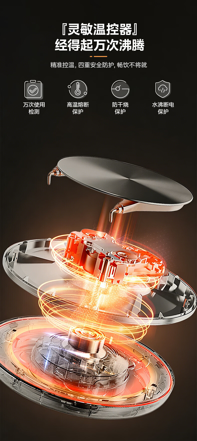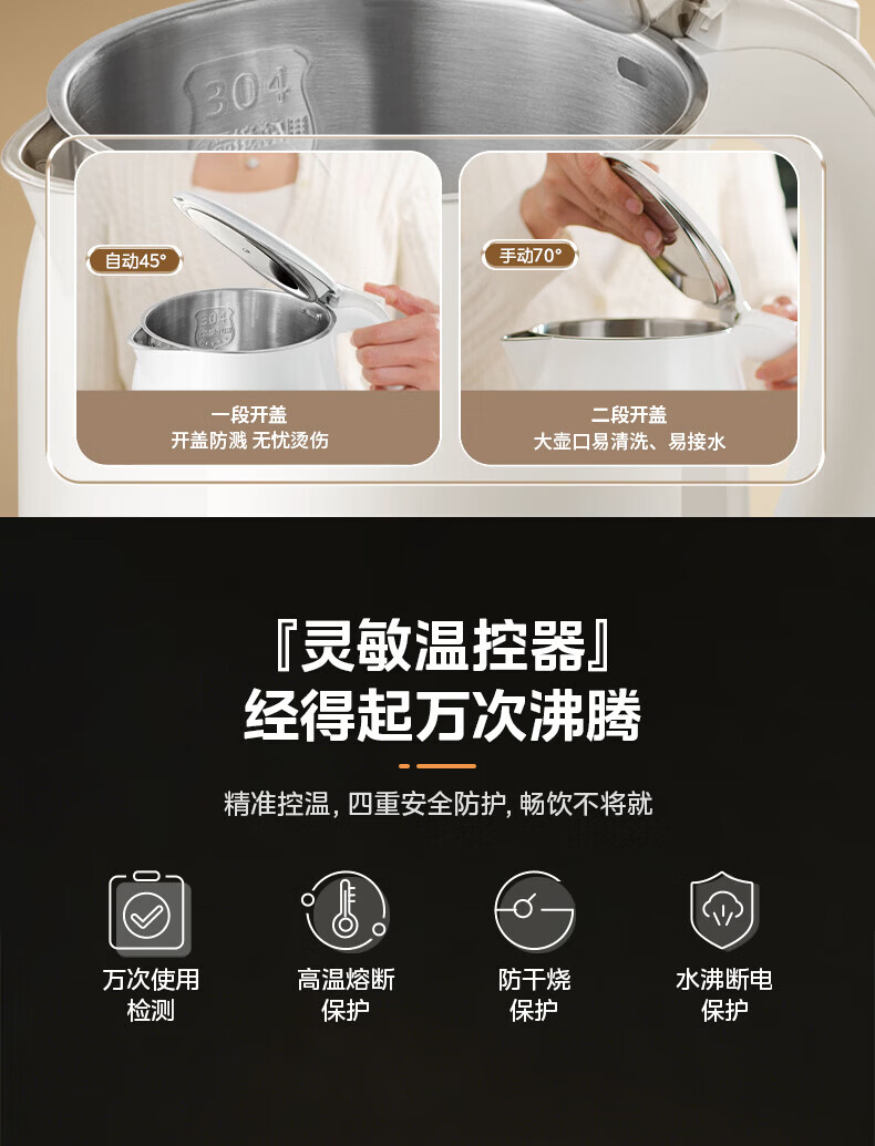 SPOUNR正品苏泊烧水壶2025新款家用保温一体自动断电泡茶煮开电热水壶 3L 豪华版[金色-智能保温]保三年