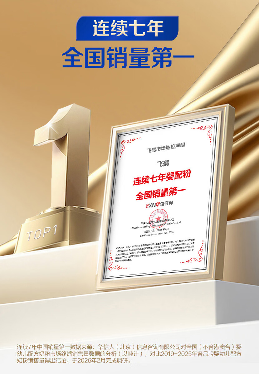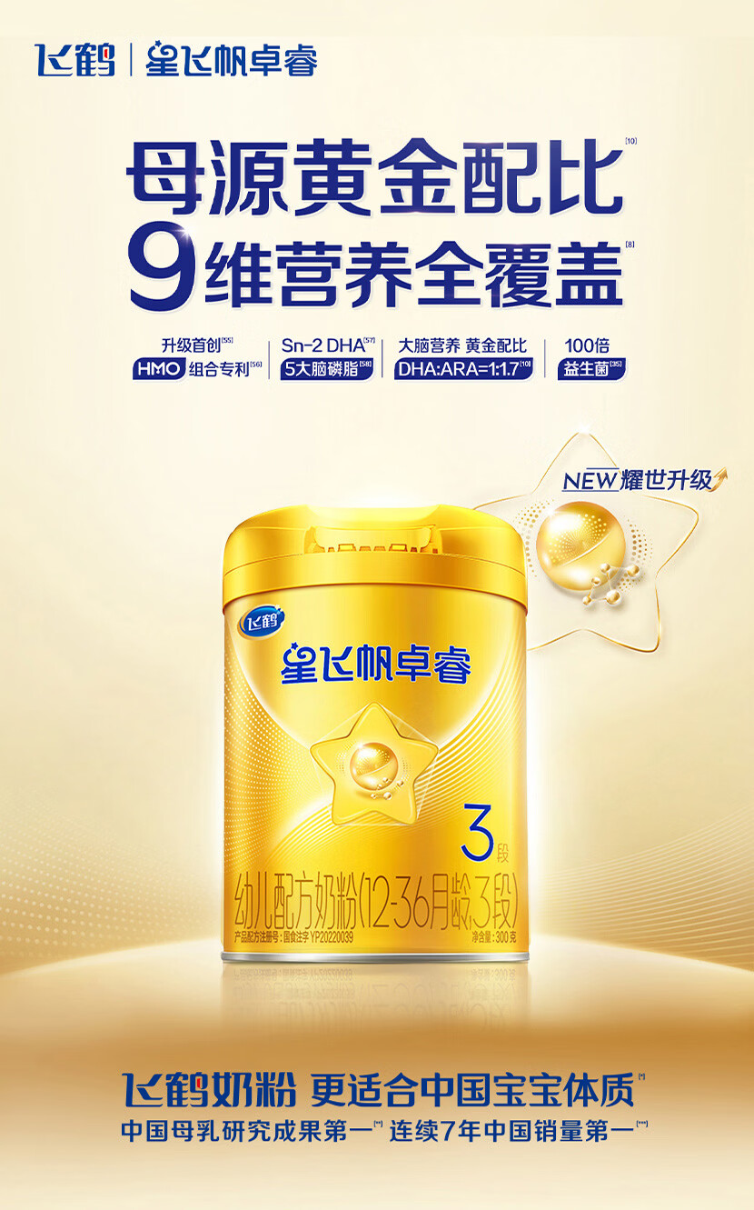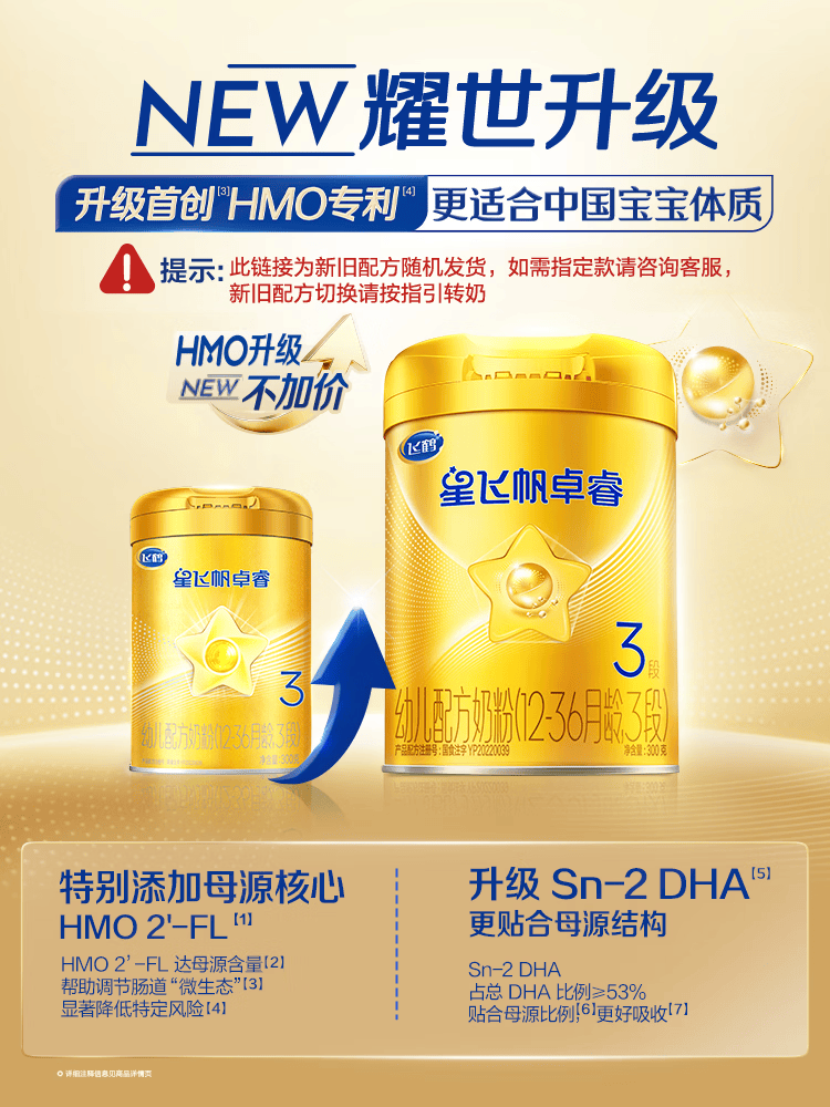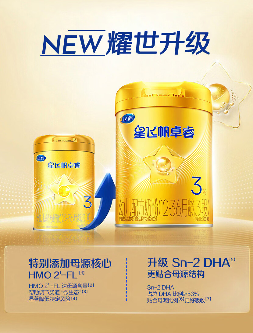 飞鹤星飞帆卓睿 婴幼儿配方奶粉3段(1-3岁)300克 育儿补贴 0元试用