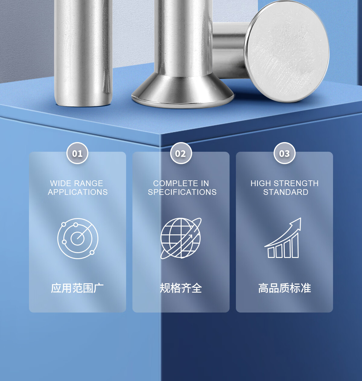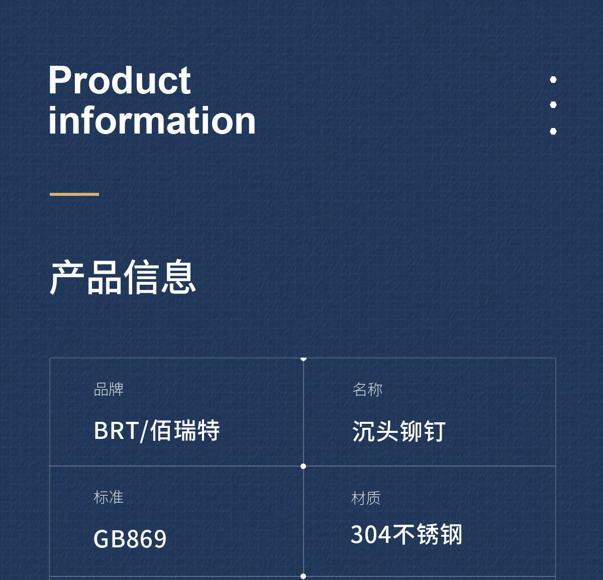 佰瑞特(bairuite)304不锈钢沉头铆钉实心铆钉敲击式平锥头柳钉卯钉平帽卯钉GB869 M2*3【400粒】