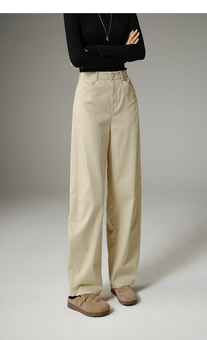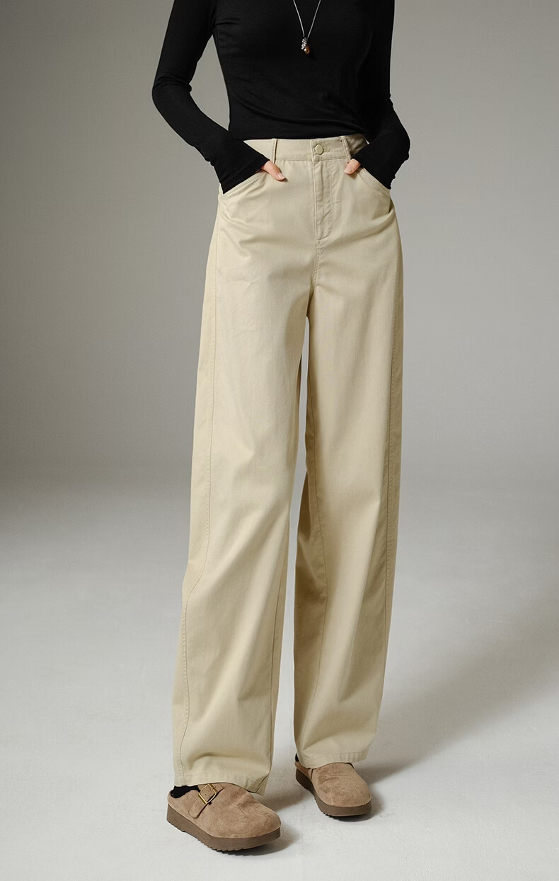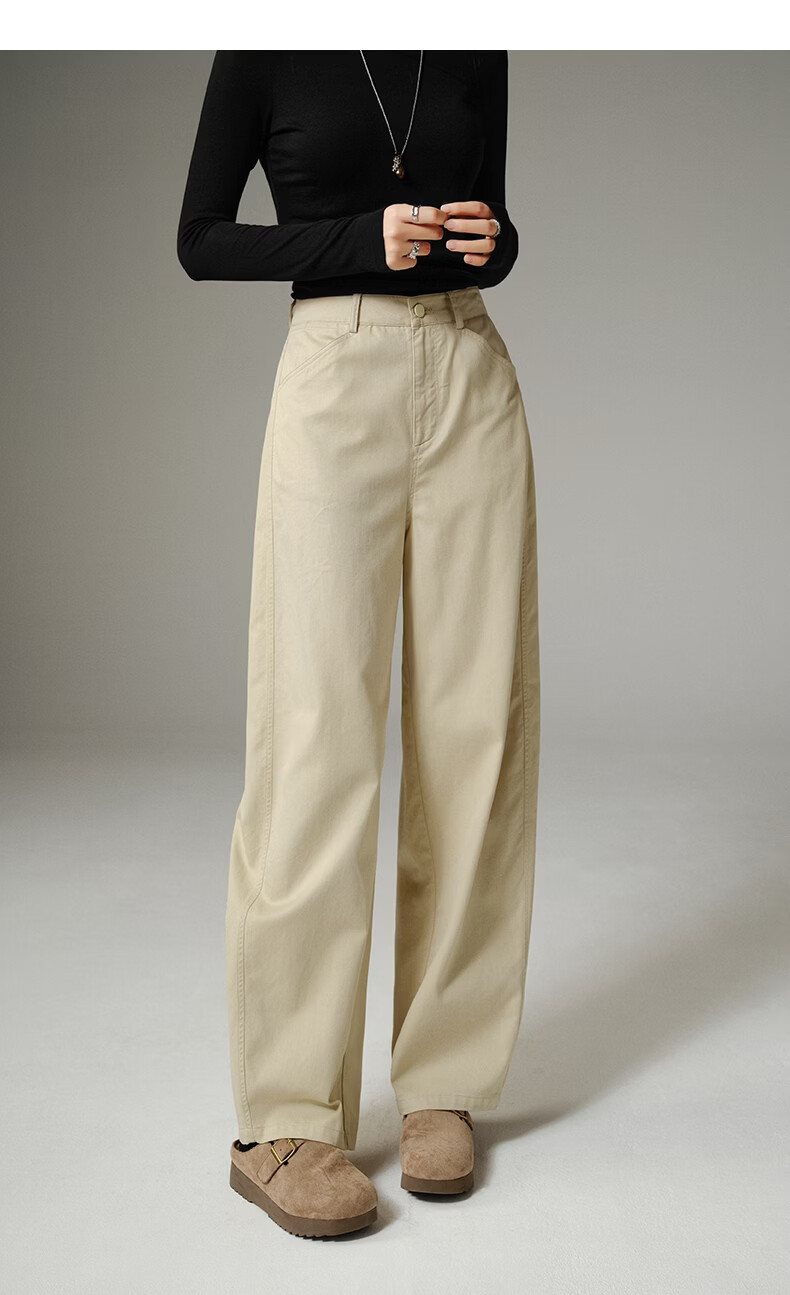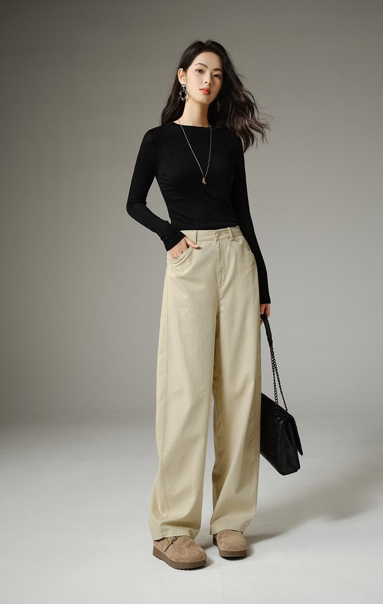 晚白【新品】2026年春款休闲舒适棉料裤子亲肤莱赛尔弯刀阔腿牛仔裤女 米杏色 26
