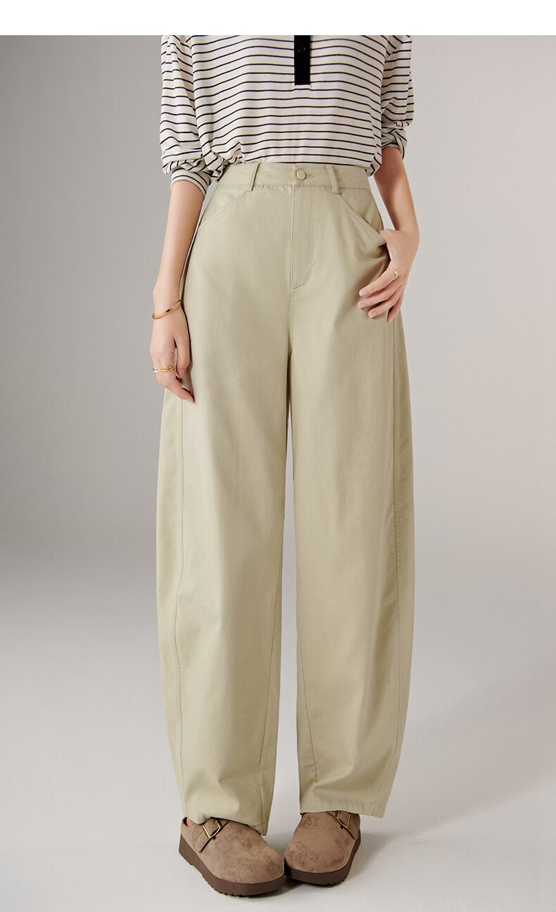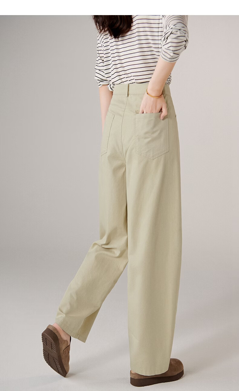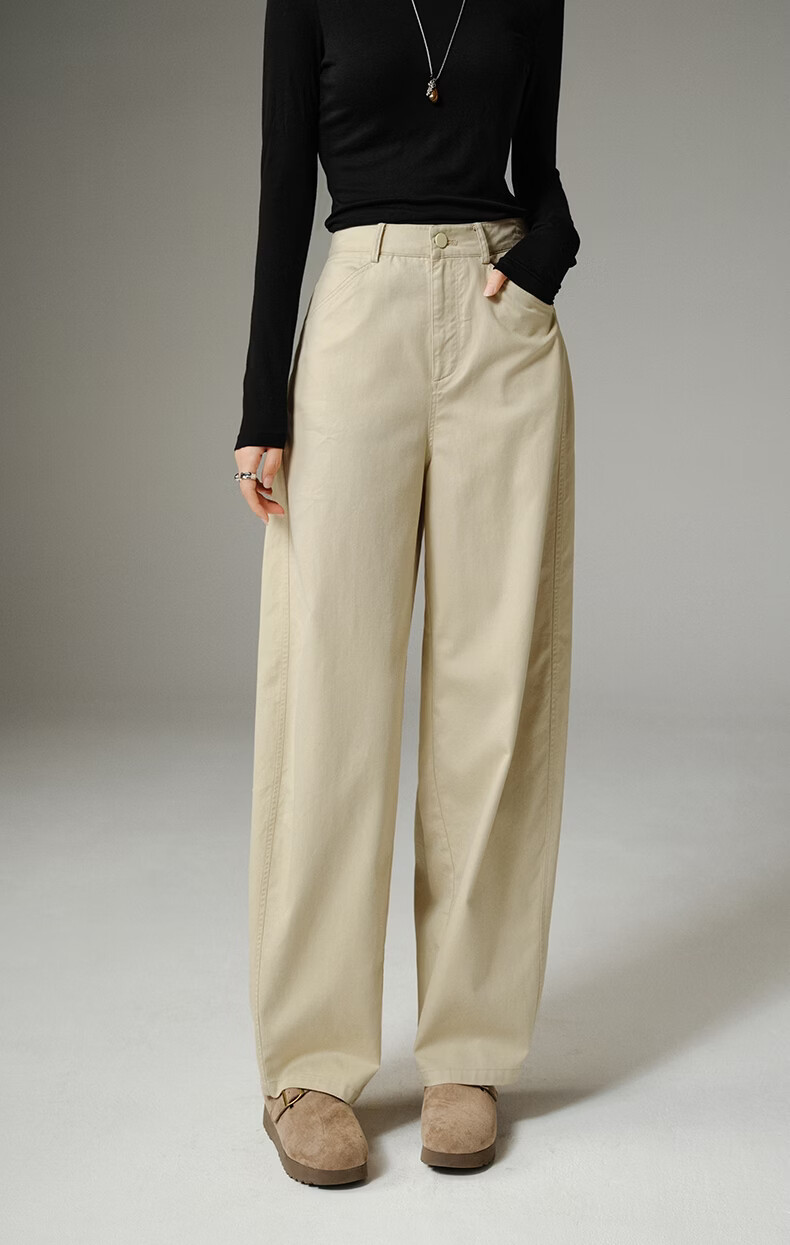 晚白【新品】2026年春款休闲舒适棉料裤子亲肤莱赛尔弯刀阔腿牛仔裤女 米杏色 26