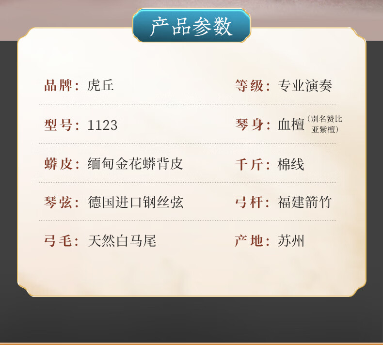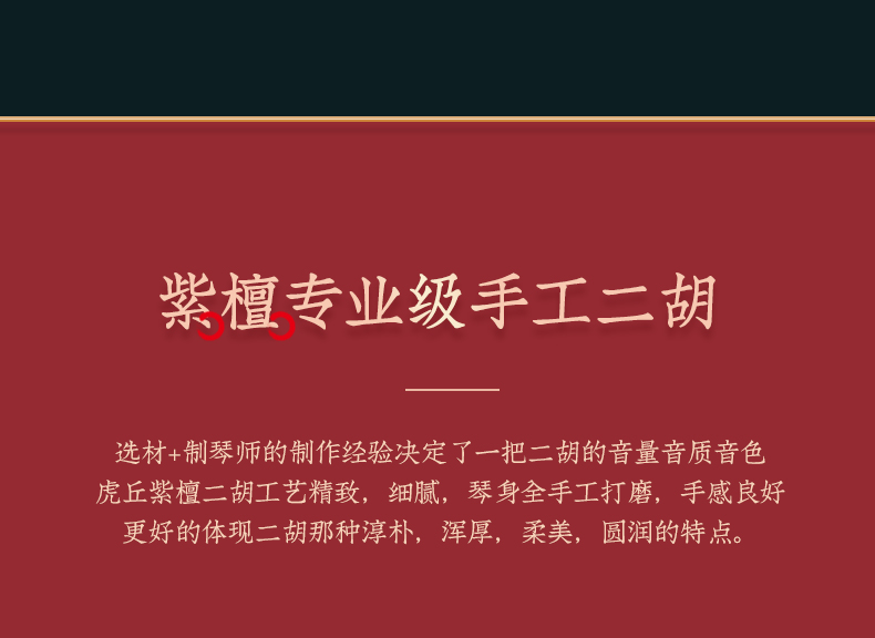 虎丘小叶紫檀专业二胡乐器初学练习独奏定制二胡民族乐器