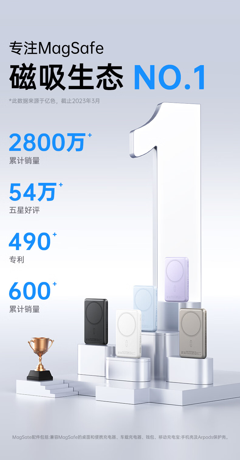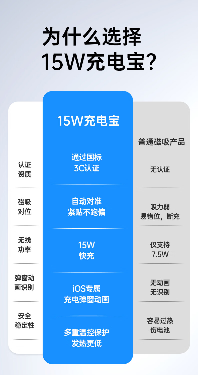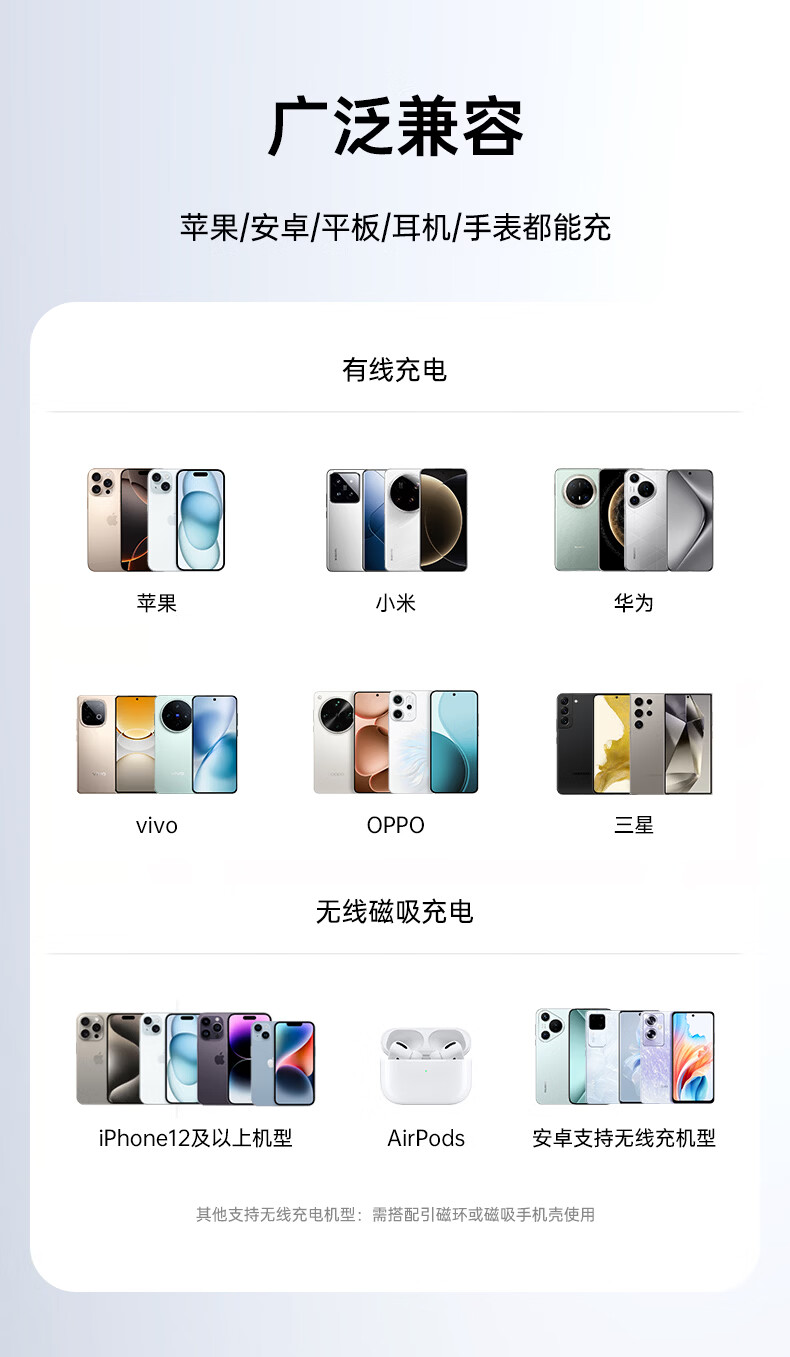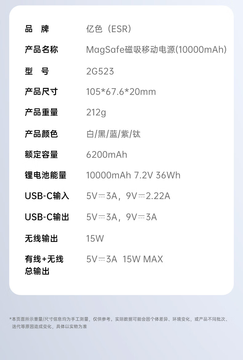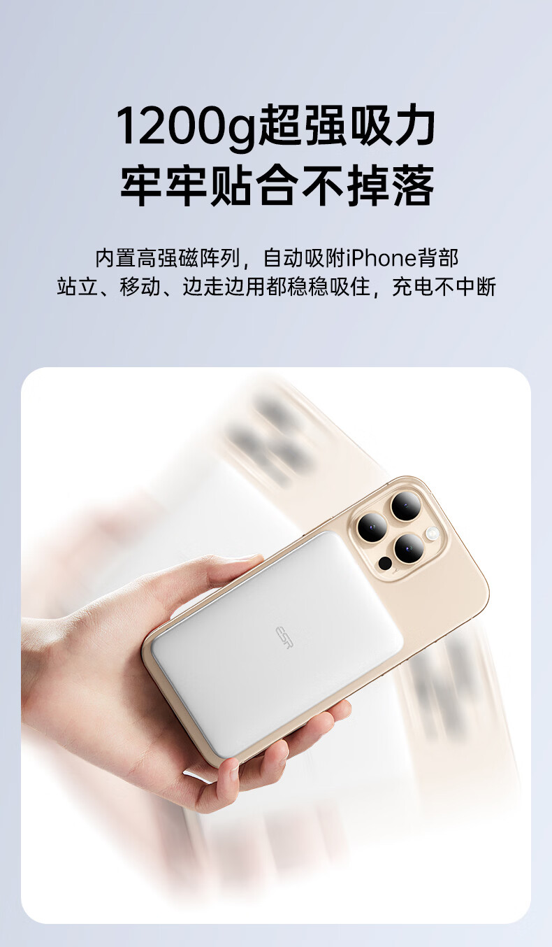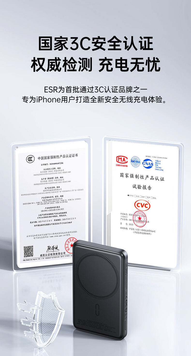 亿色【3C认证】磁吸充电宝Magsafe无线15W快充27W有线移动电源5千/1万毫安可上飞机适用于苹果华为小米 5000毫安【苹果15W无线充丨20W有线充】 典雅白
