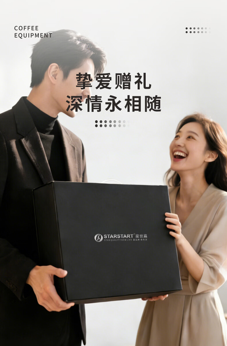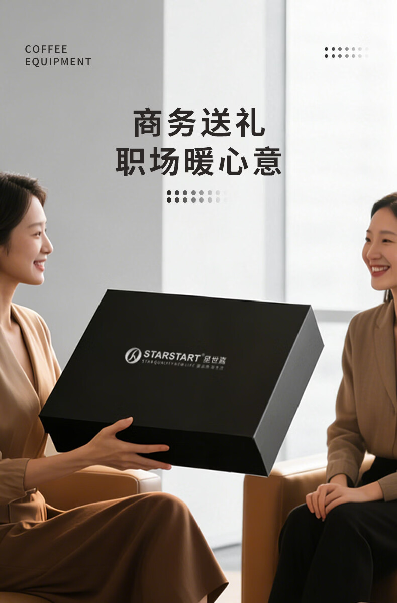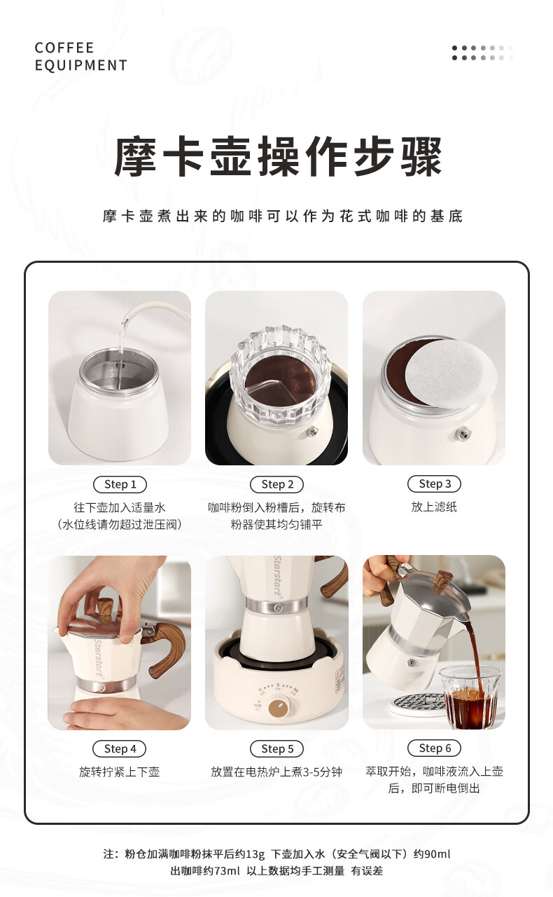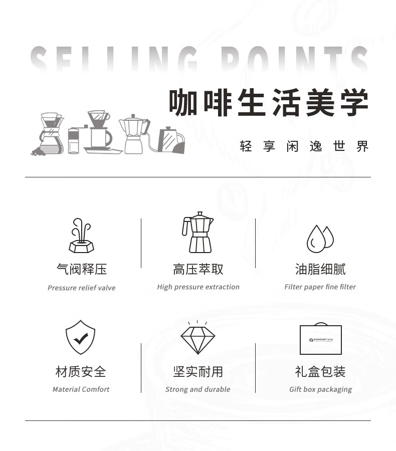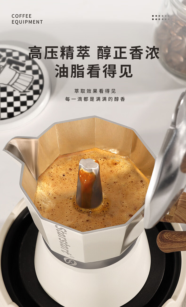 STAR-START咖啡磨豆机礼盒摩卡壶套装煮意式浓缩咖啡机生日礼品年会伴手礼 白色摩卡壶礼盒6人份单阀10件-手磨钢芯白