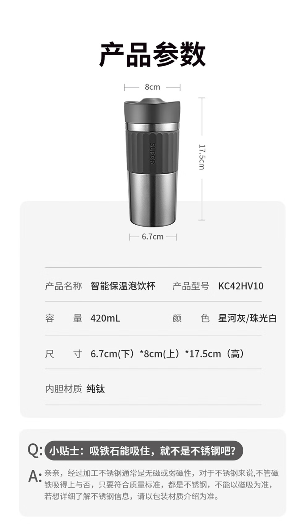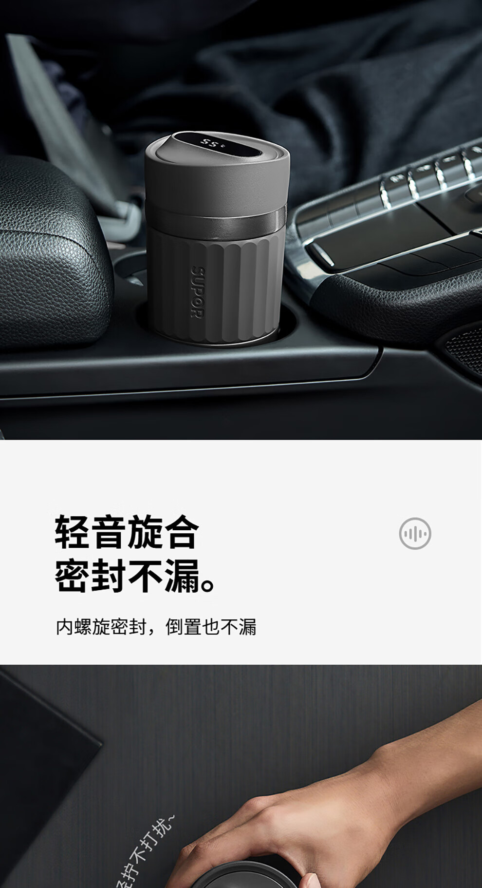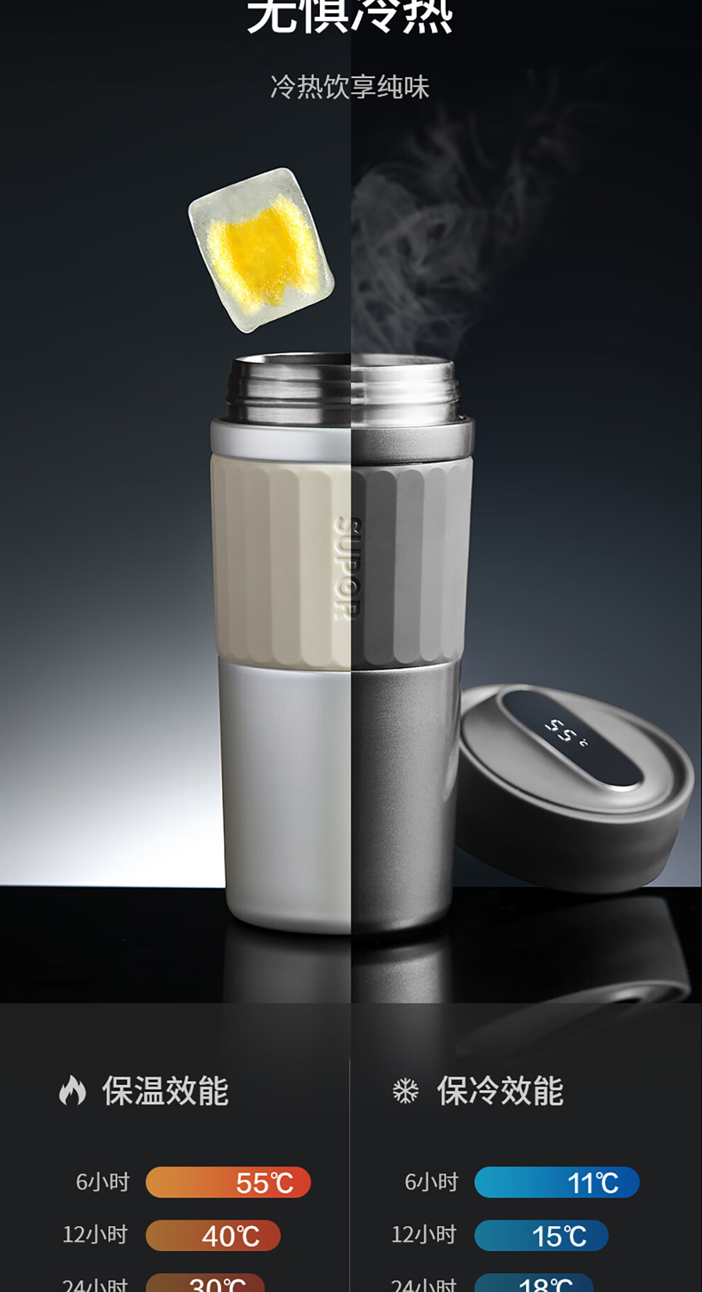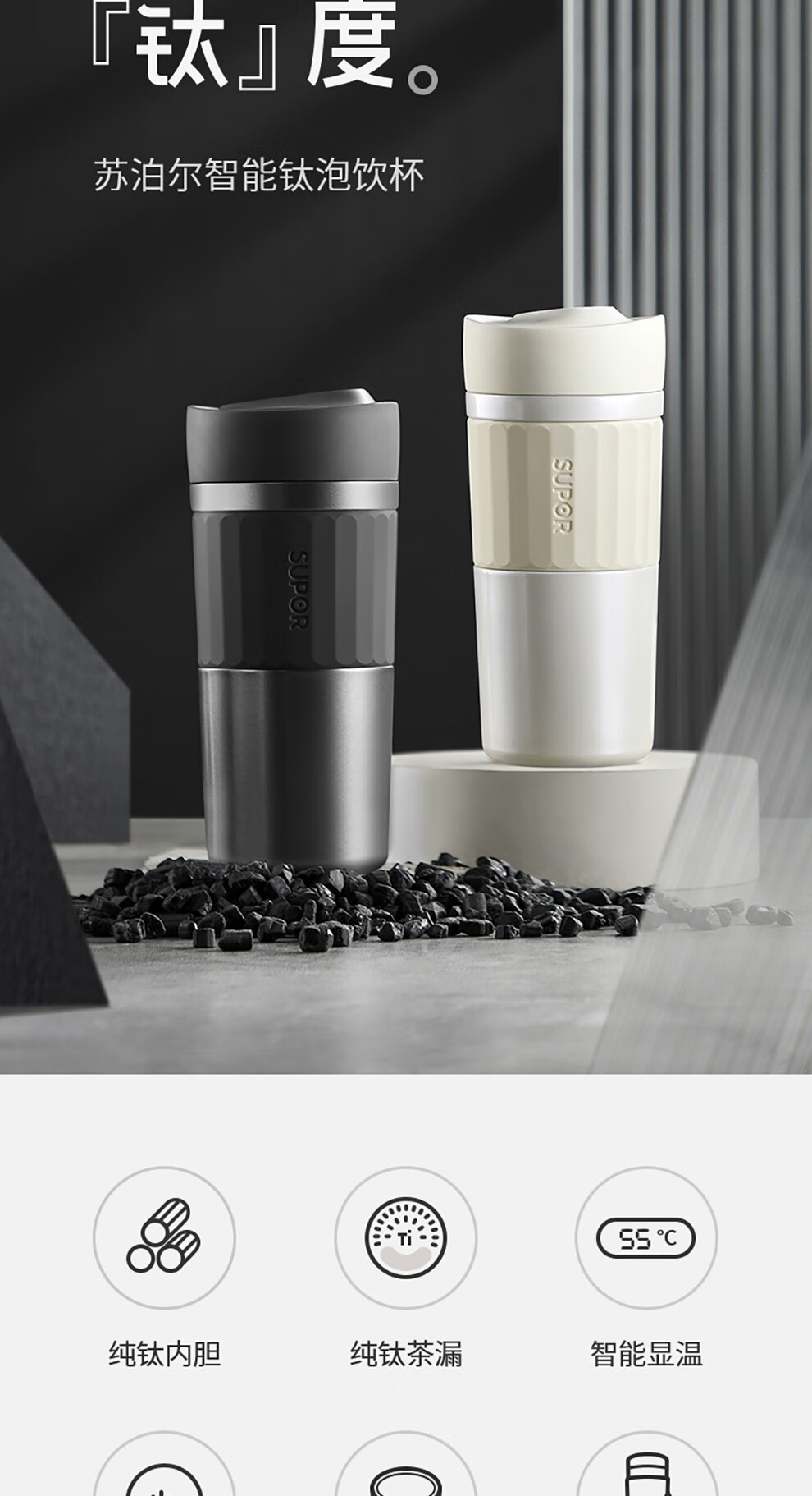 苏泊尔(SUPOR)纯钛保温杯智能显温水杯大容量商务茶杯男士女士高档杯子2026新款 星河灰【智能显温+礼盒装】420ml