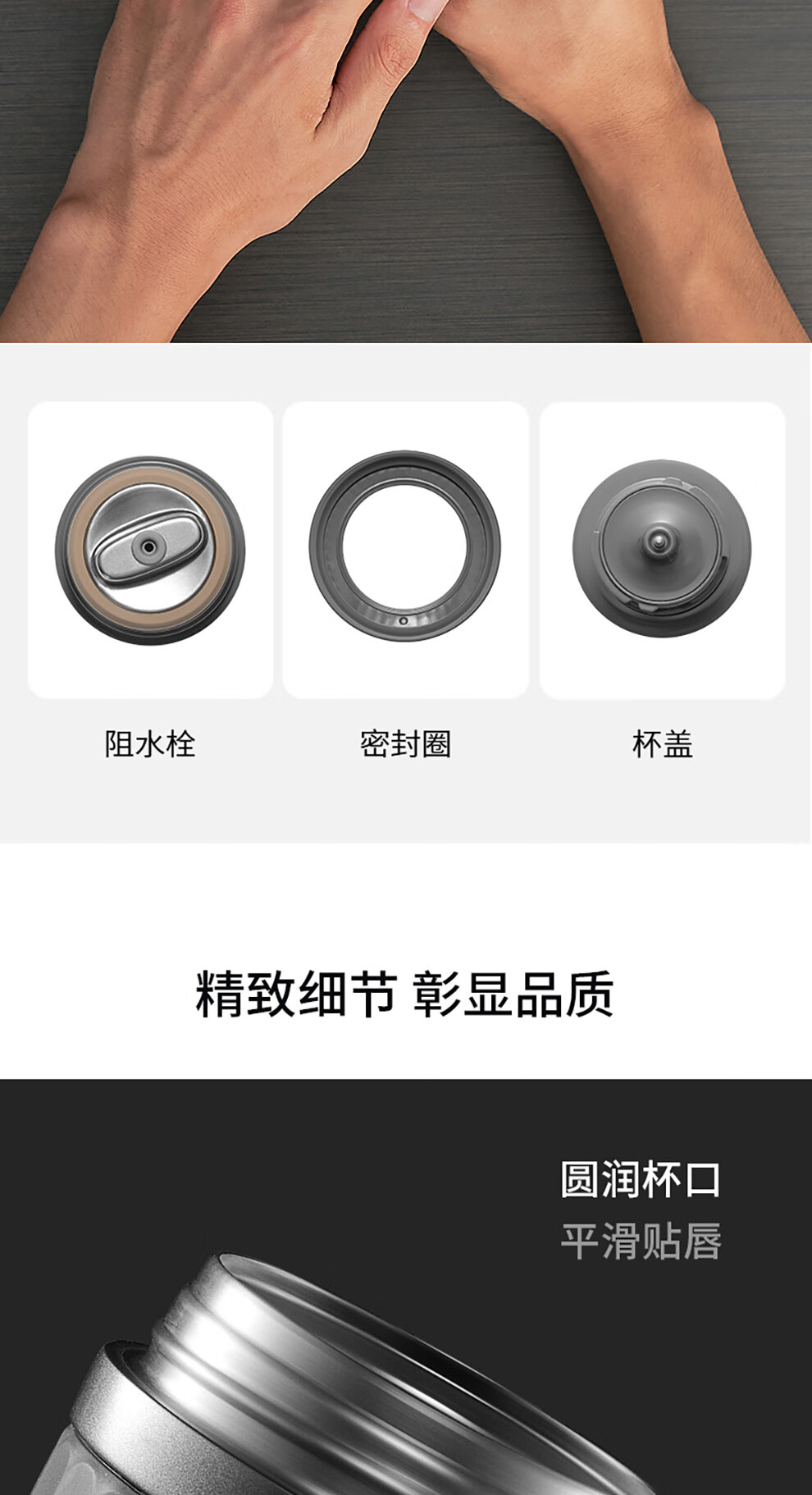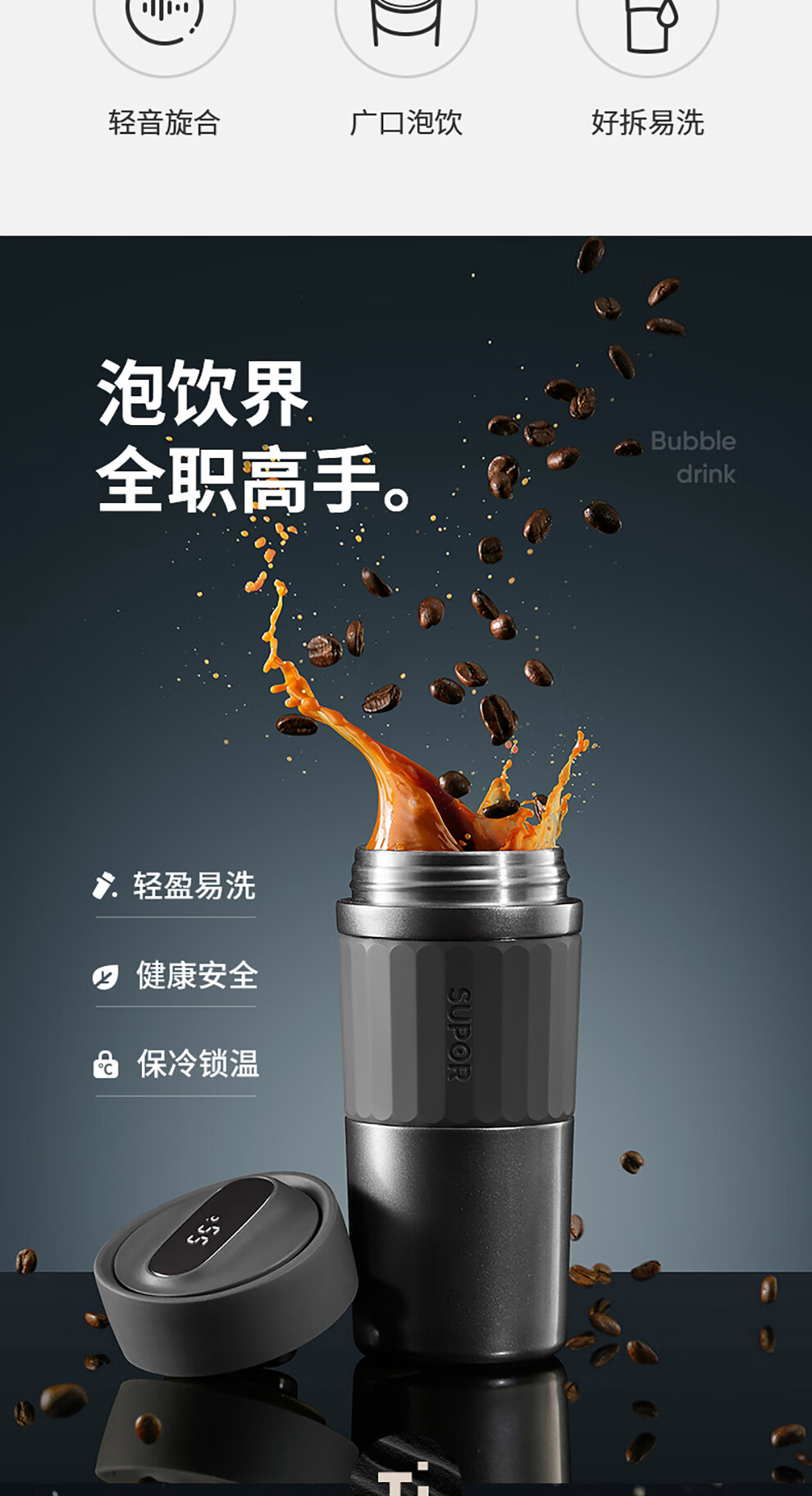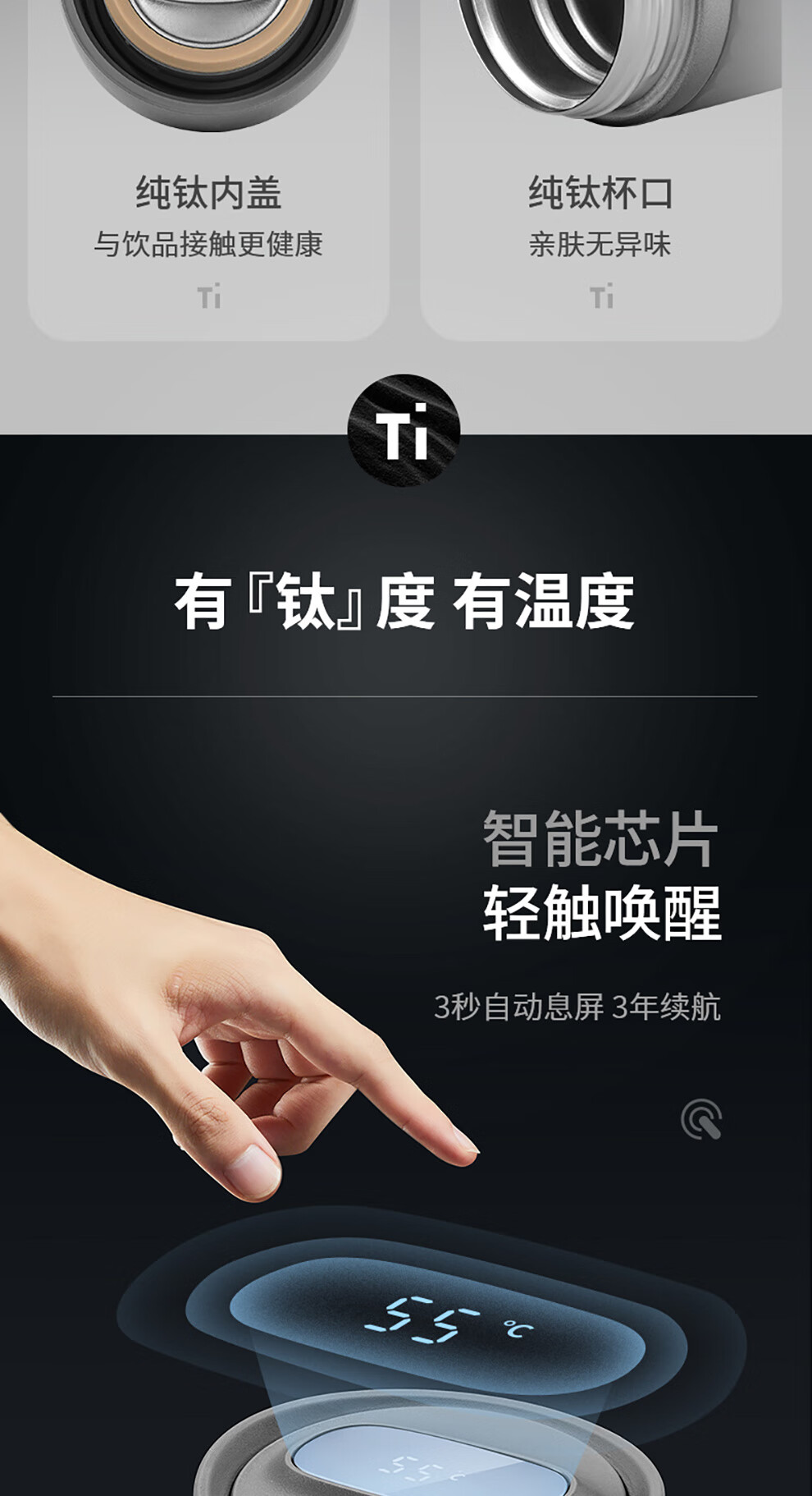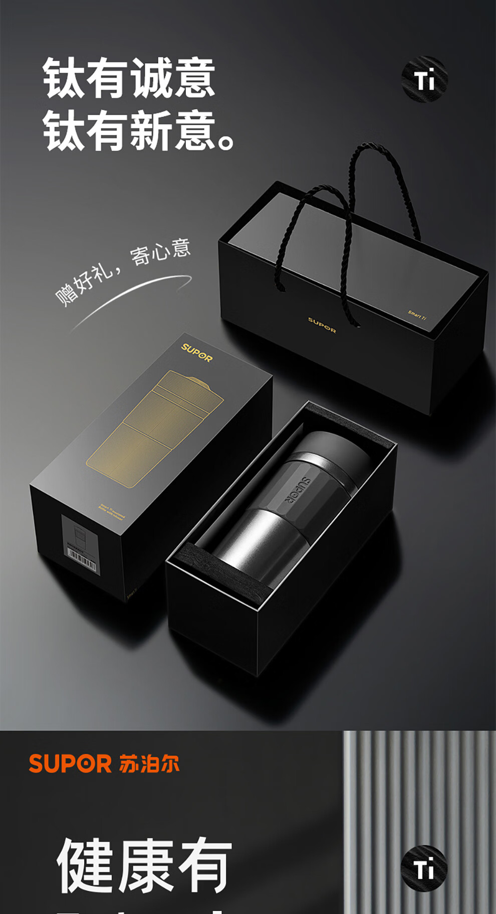 苏泊尔(SUPOR)纯钛保温杯智能显温水杯大容量商务茶杯男士女士高档杯子2026新款 星河灰【智能显温+礼盒装】420ml