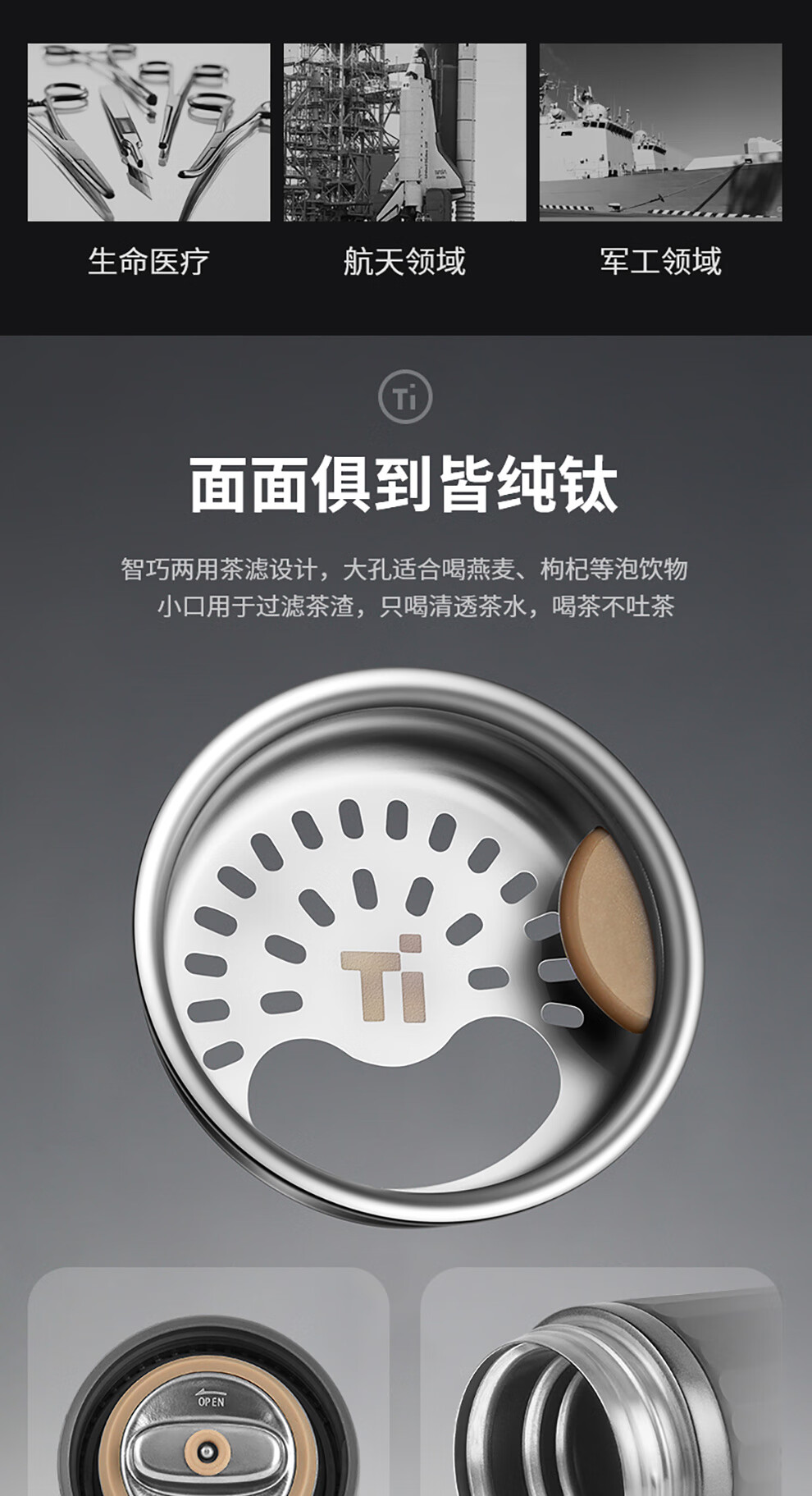 富光内外纯钛保温杯女生高颜值钛杯吸管便携咖啡水杯子泡茶送礼礼物