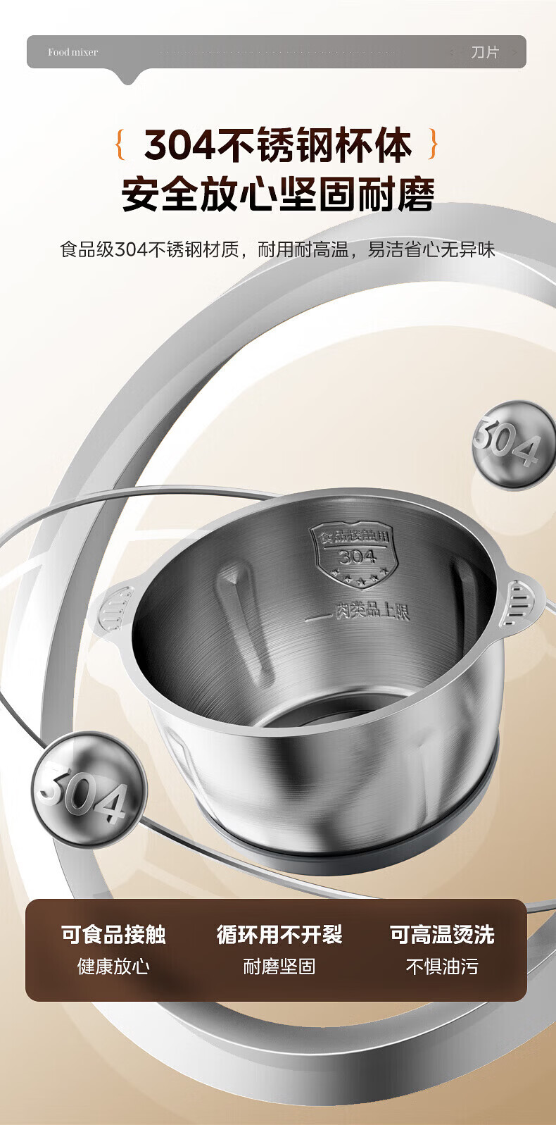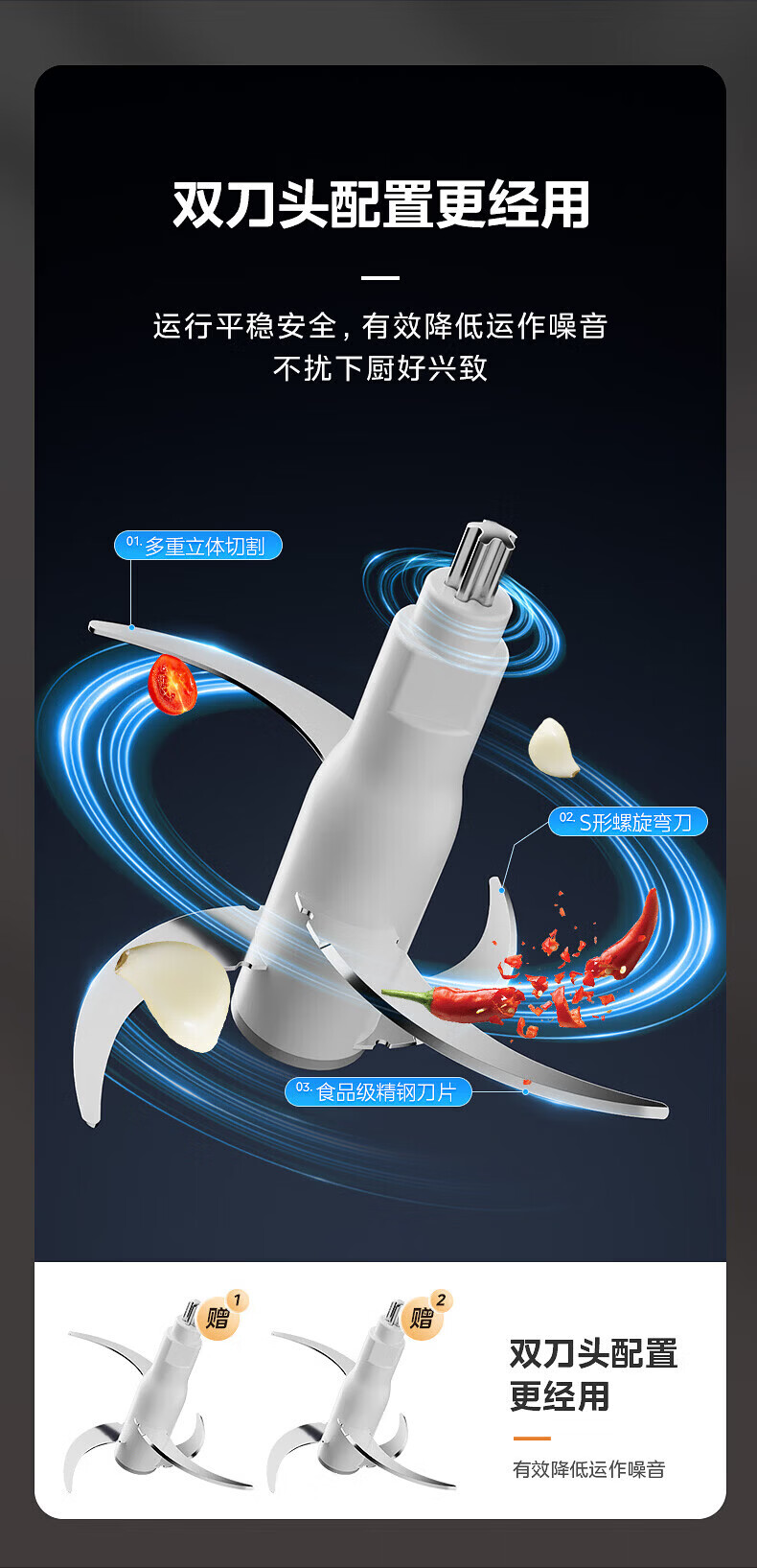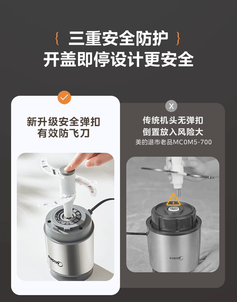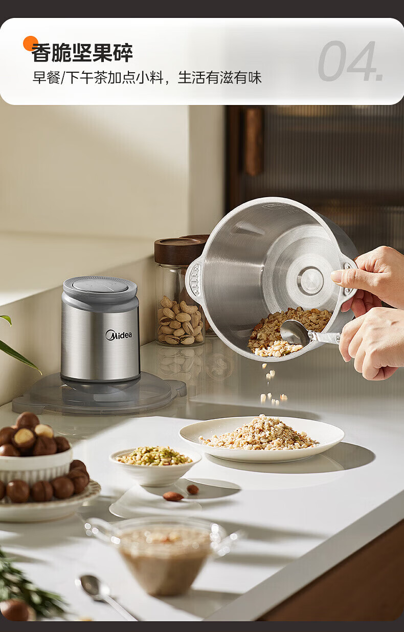 美的(Midea)绞肉机家用包钢机头不锈钢搅拌碗 绞肉馅多功能料理机绞馅机小型打蒜器 磁吸易洁刀头 【磁吸无孔精钢刀】 1.8L