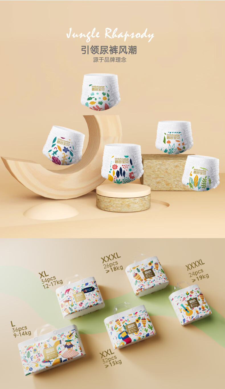 碧芭宝贝丛林狂想曲拉拉裤 婴儿成长裤宝贝训练裤透气大号尿不湿 拉拉裤XXL32片*2包(15kg以上)