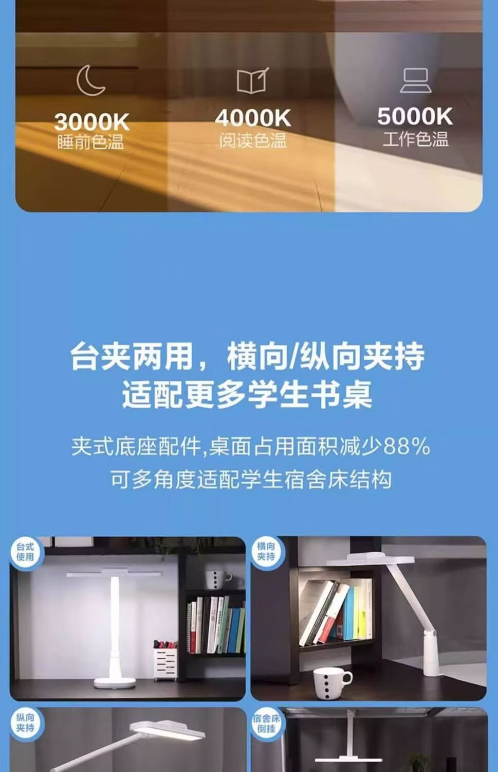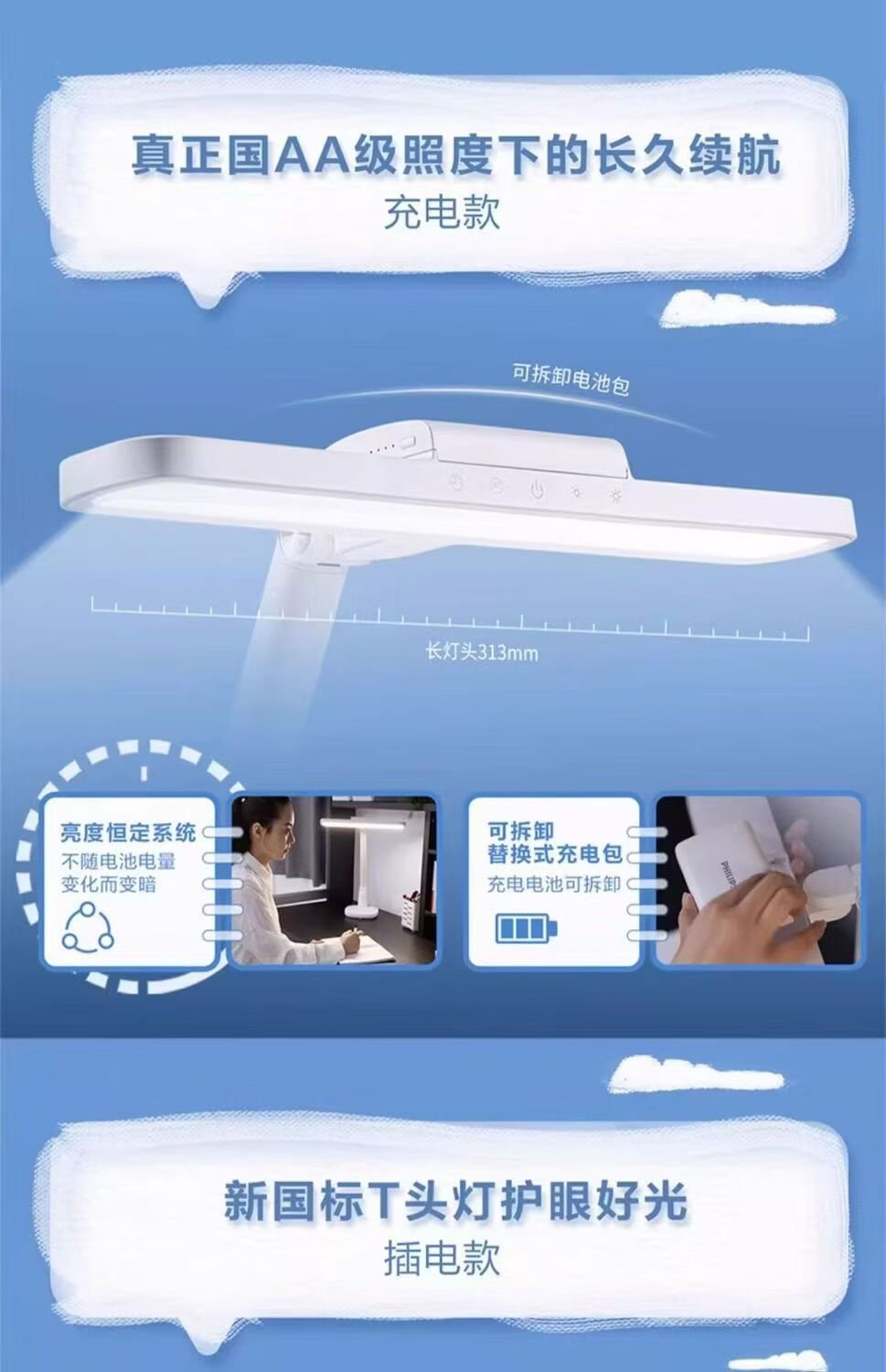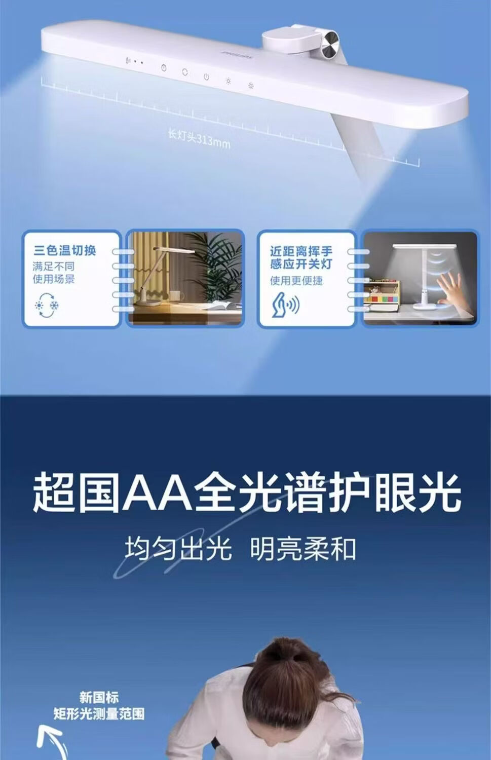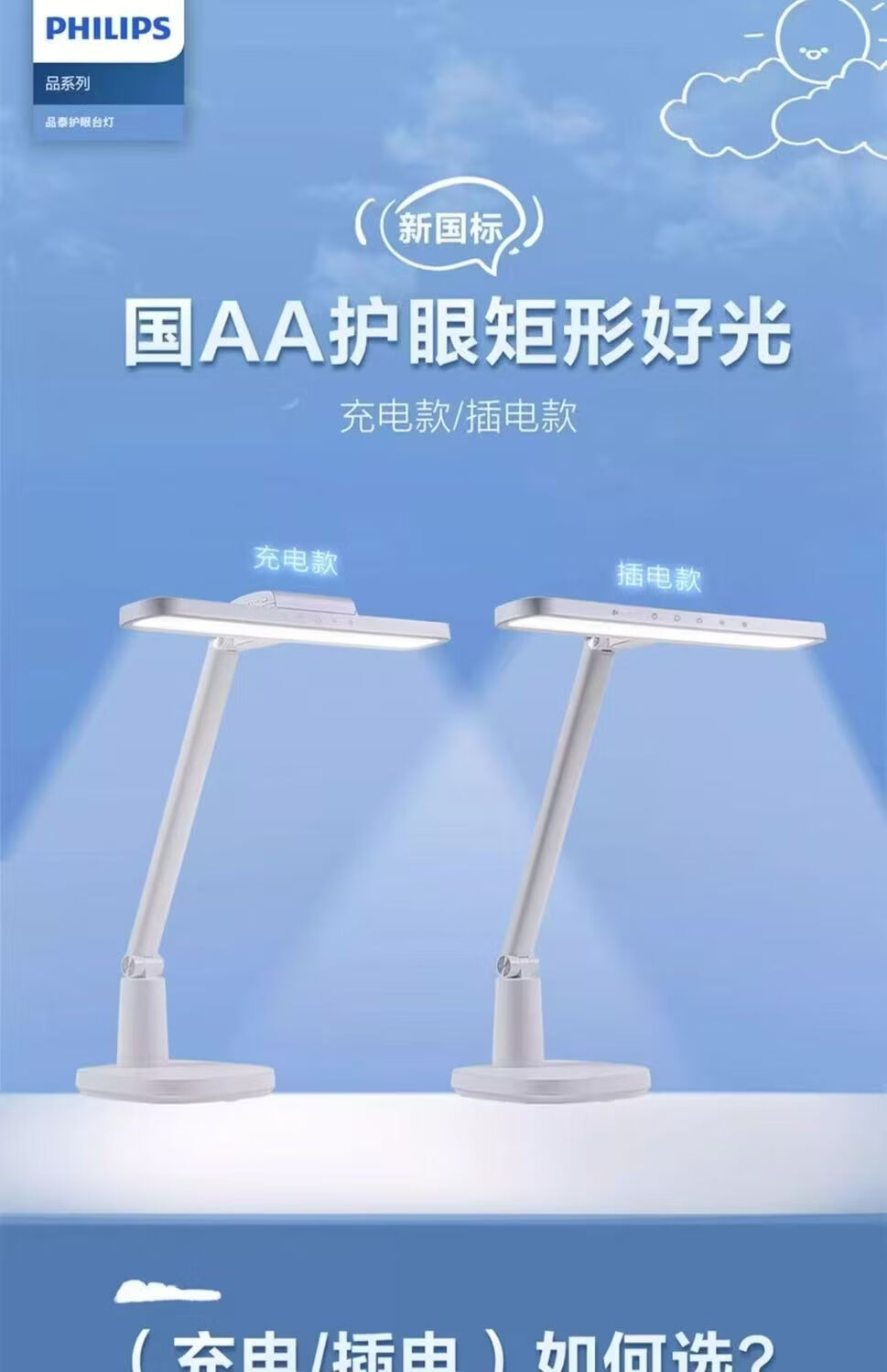 飞利浦(PHILIPS)儿童近视防控国AA级台灯充电灯护眼床头灯学习台灯 品泰 66195充插两用/10W/2*5000毫安/桌夹