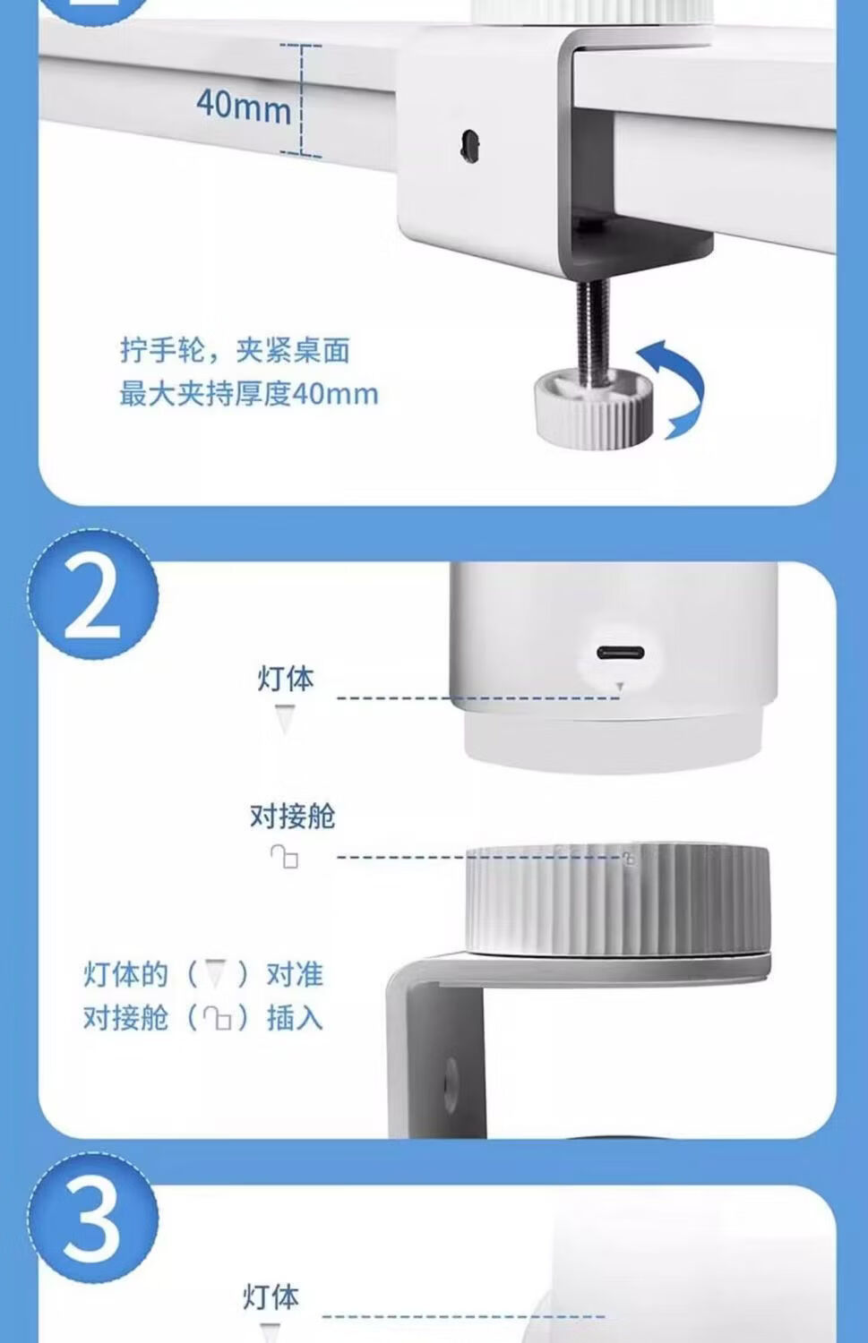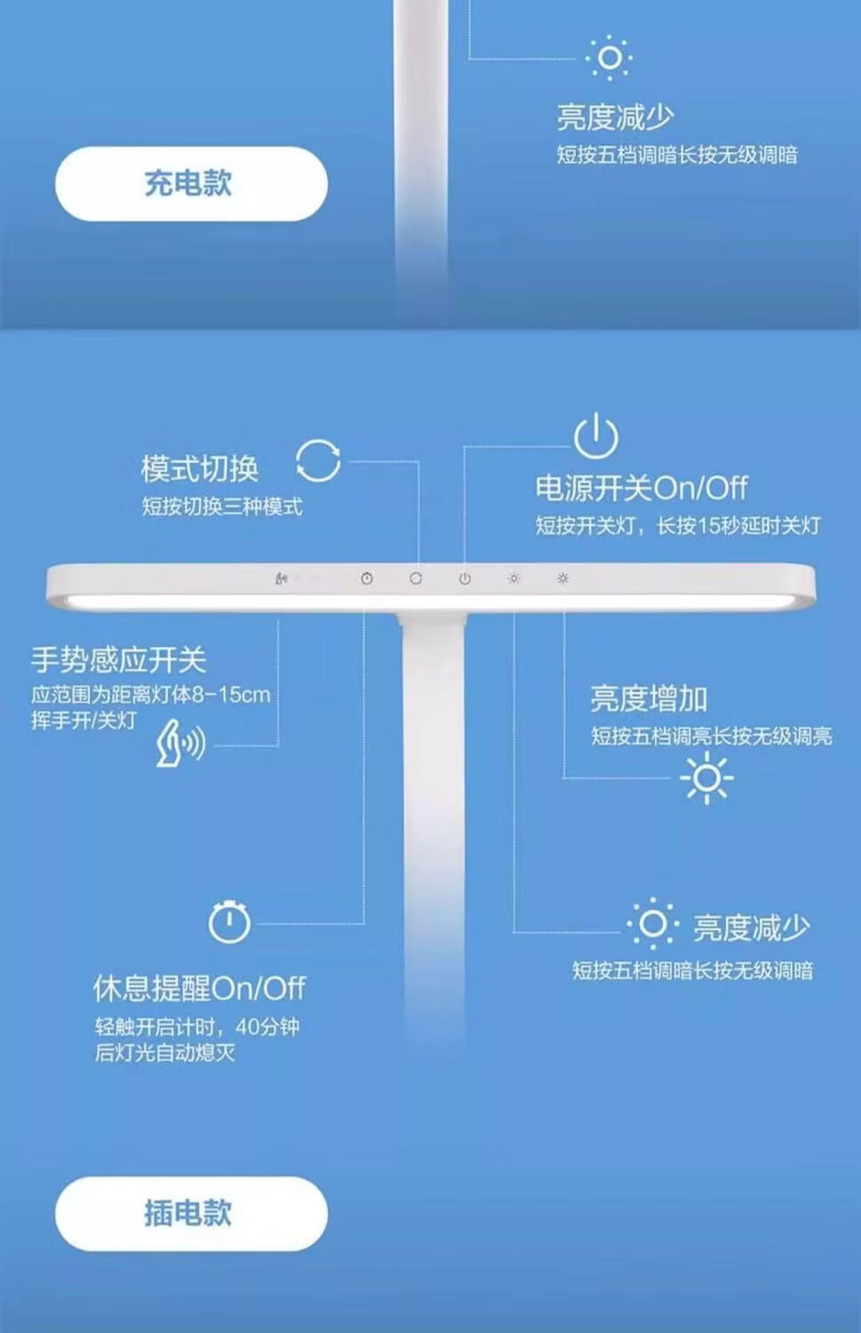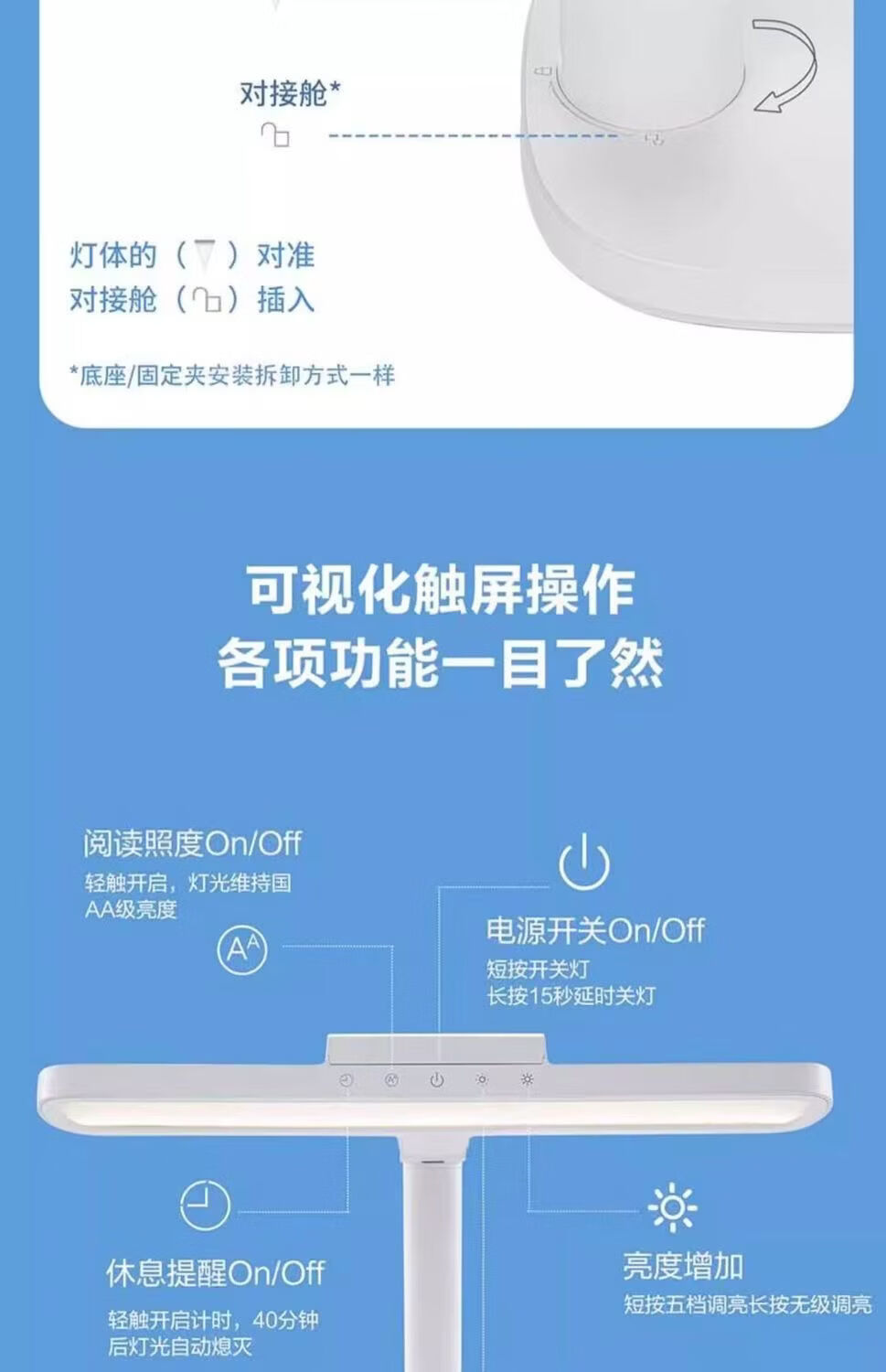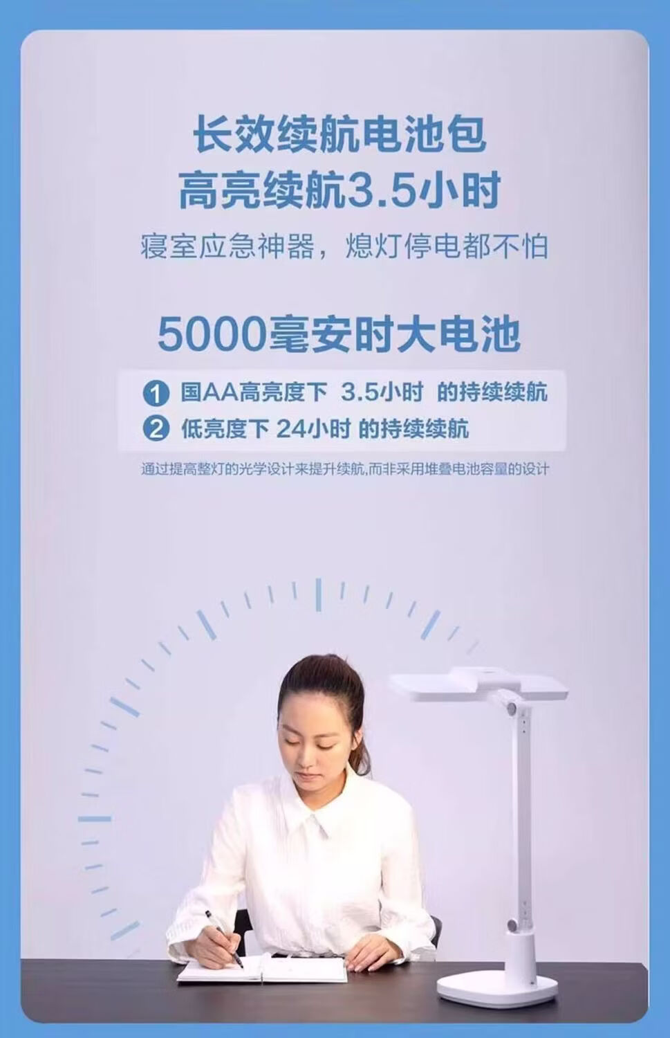 飞利浦(PHILIPS)儿童近视防控国AA级台灯充电灯护眼床头灯学习台灯 品泰 66195充插两用/10W/2*5000毫安/桌夹