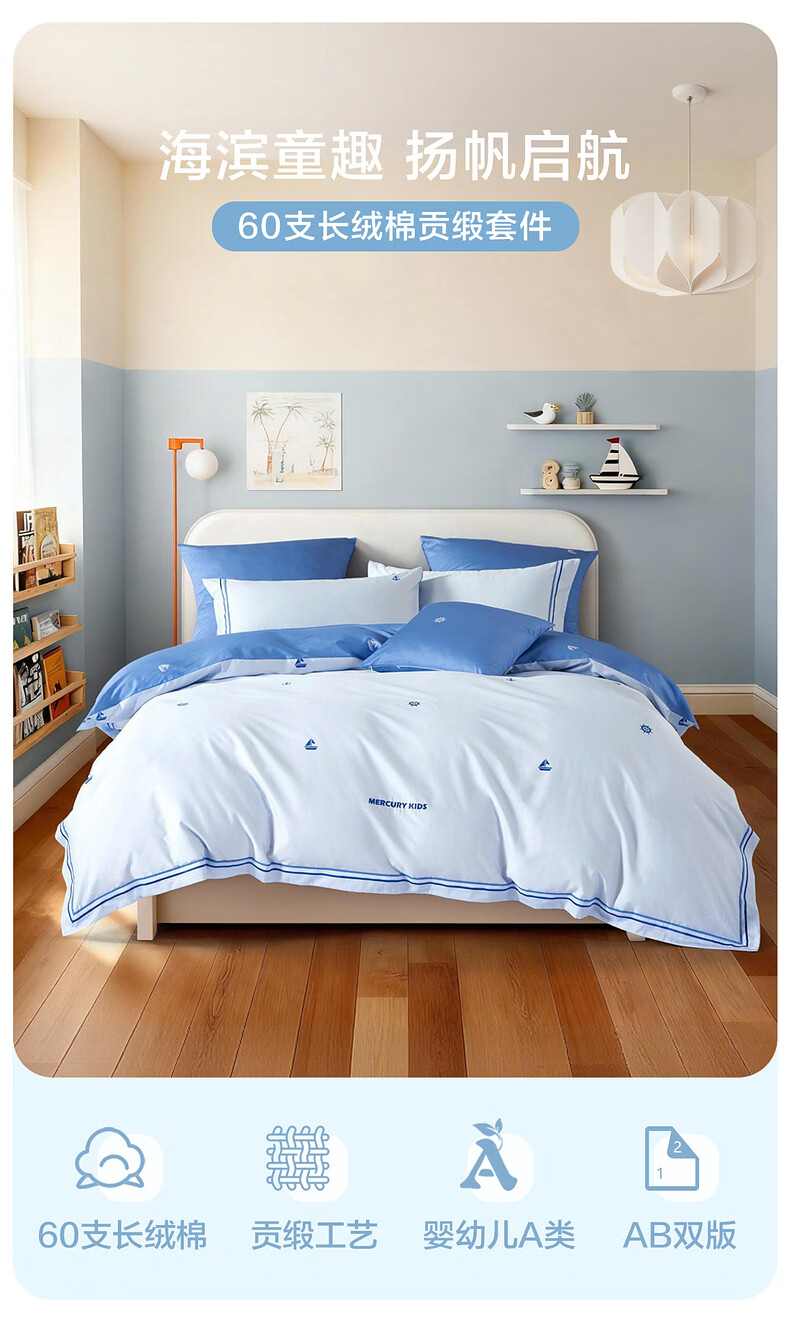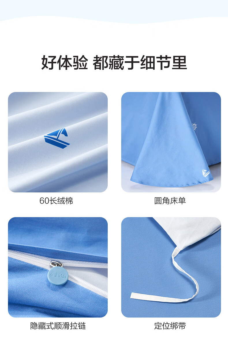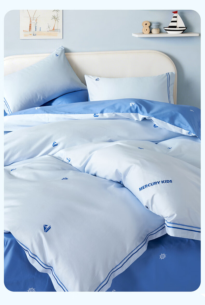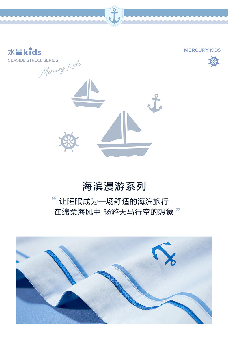水星家纺儿童三件套60支长绒棉套件A类纯棉100%纯棉裸睡高级感26新款套件 海滨旅行 床单款 (被套150*210cm)