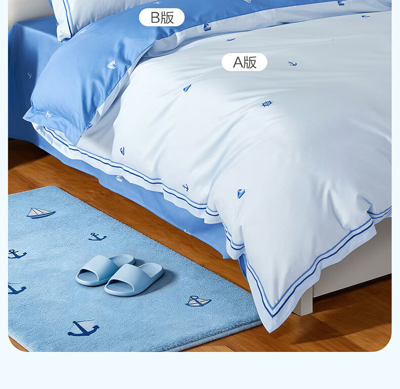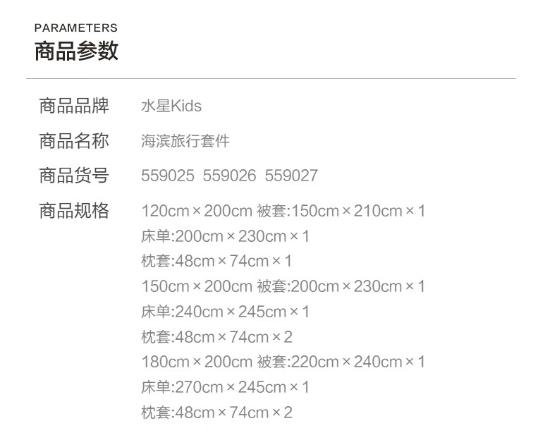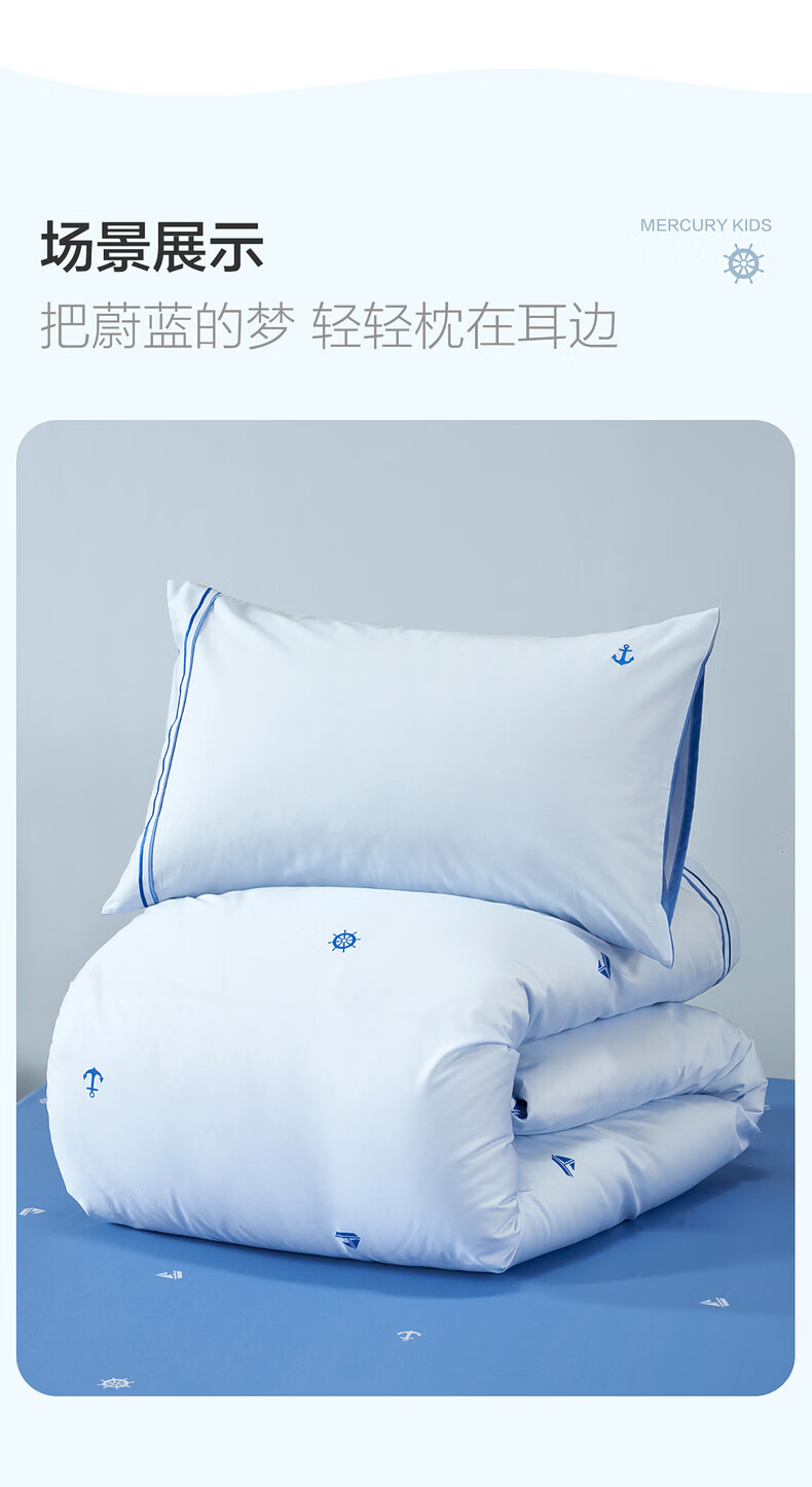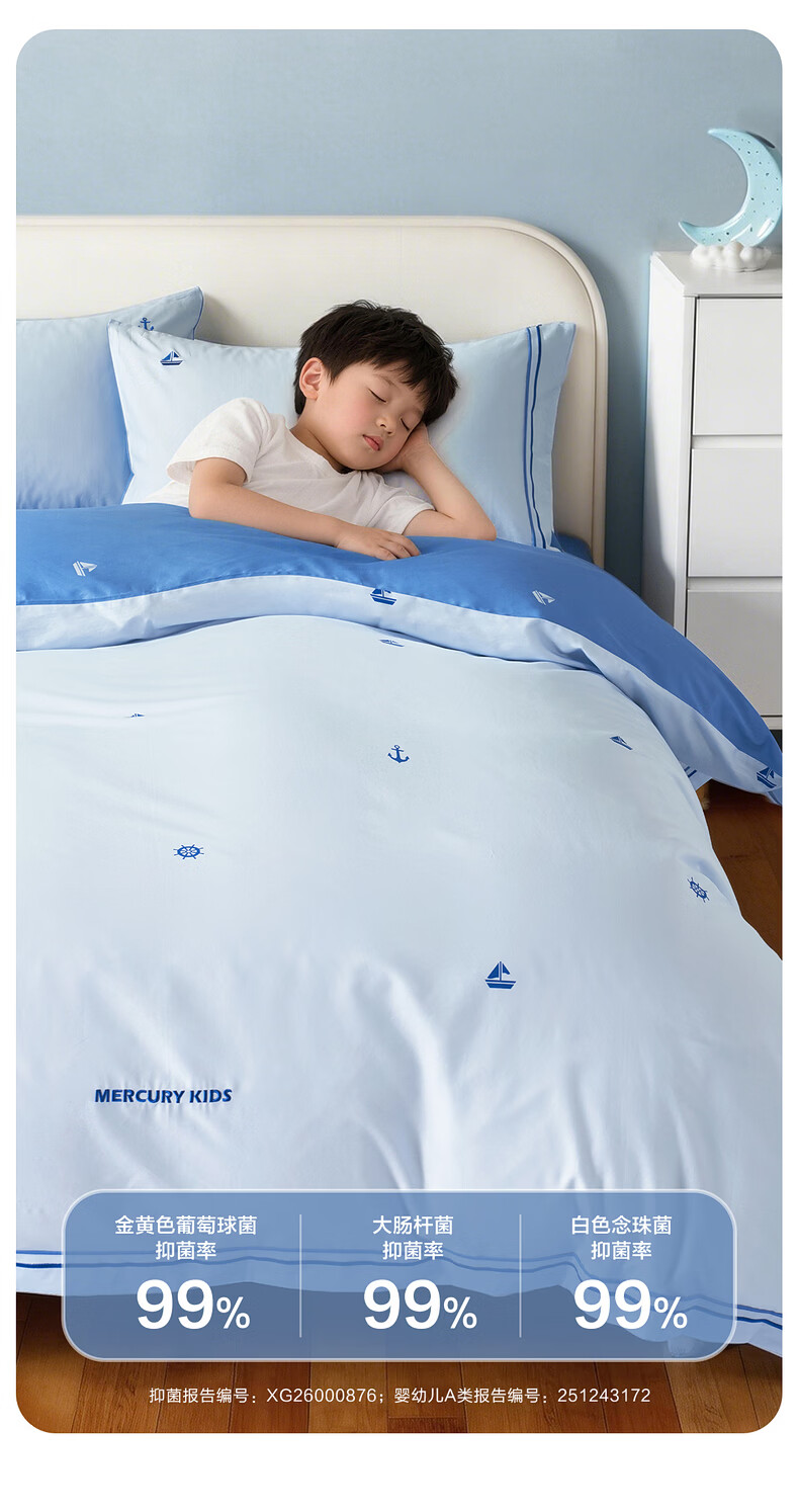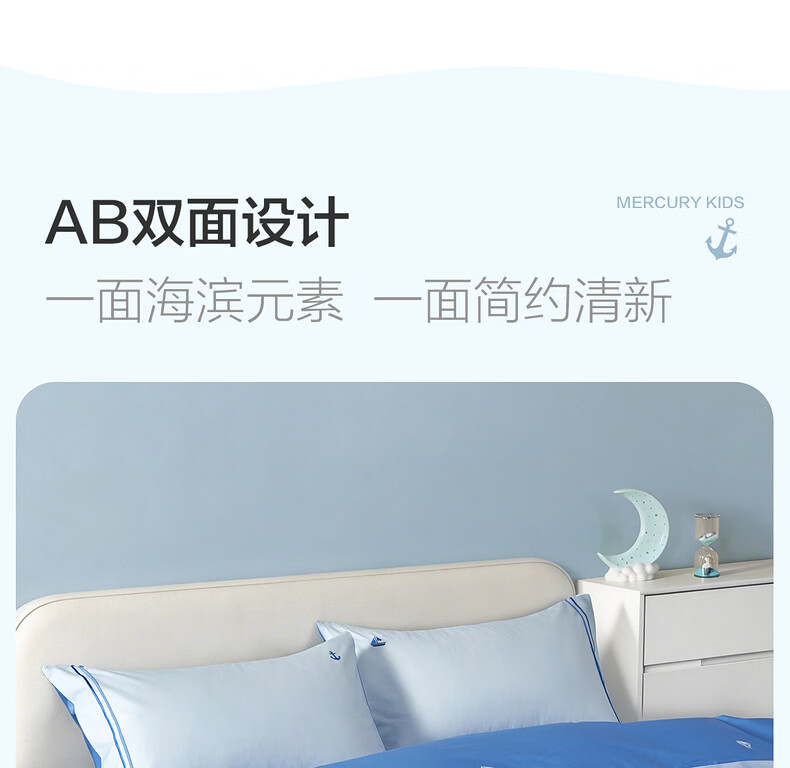 水星家纺儿童三件套60支长绒棉套件A类纯棉100%纯棉裸睡高级感26新款套件 海滨旅行 床单款 (被套150*210cm)